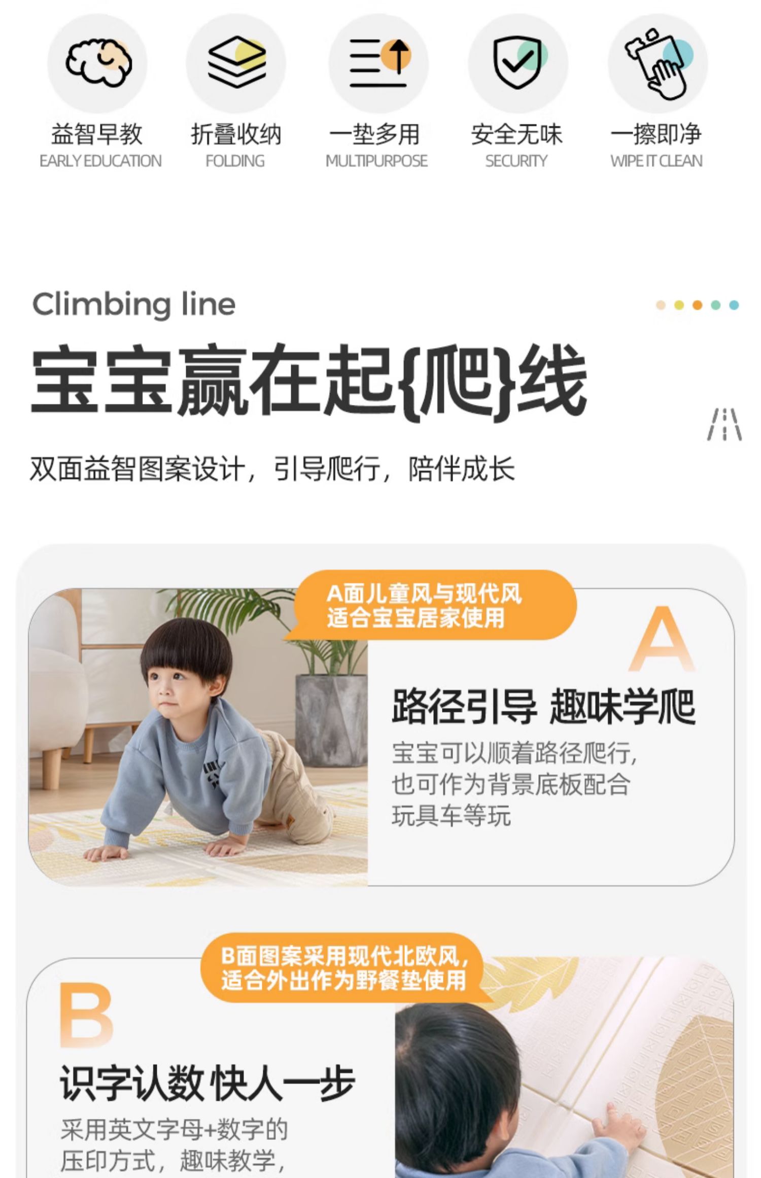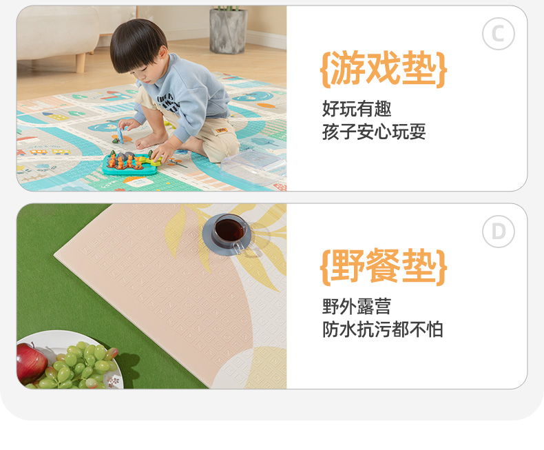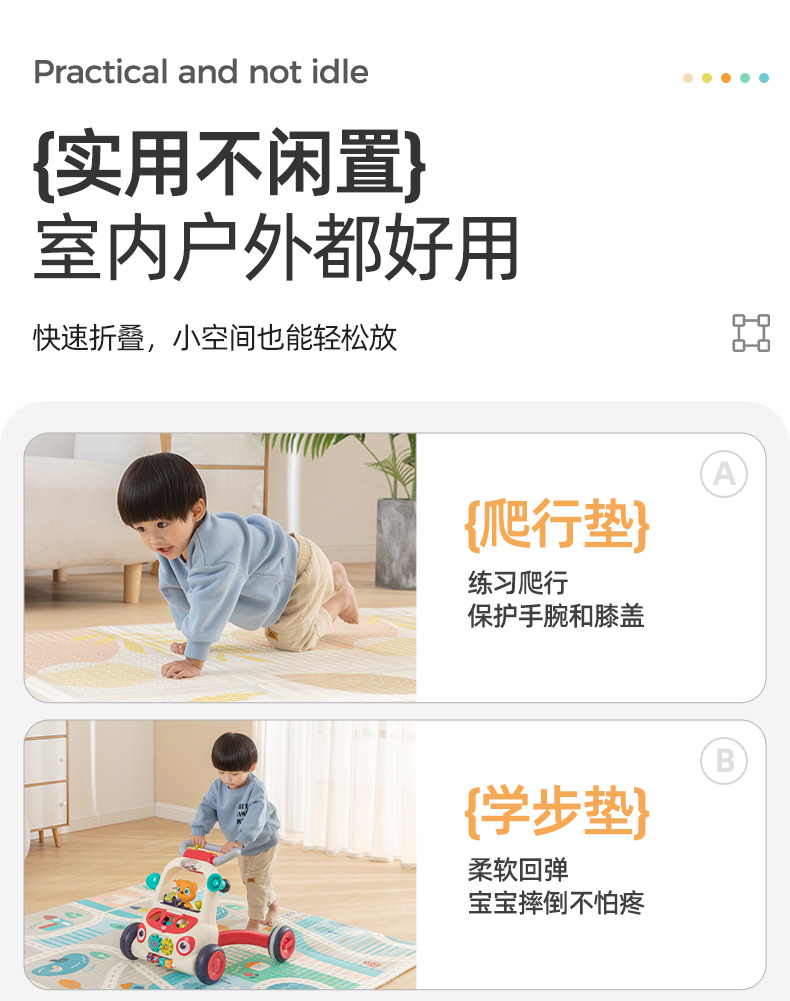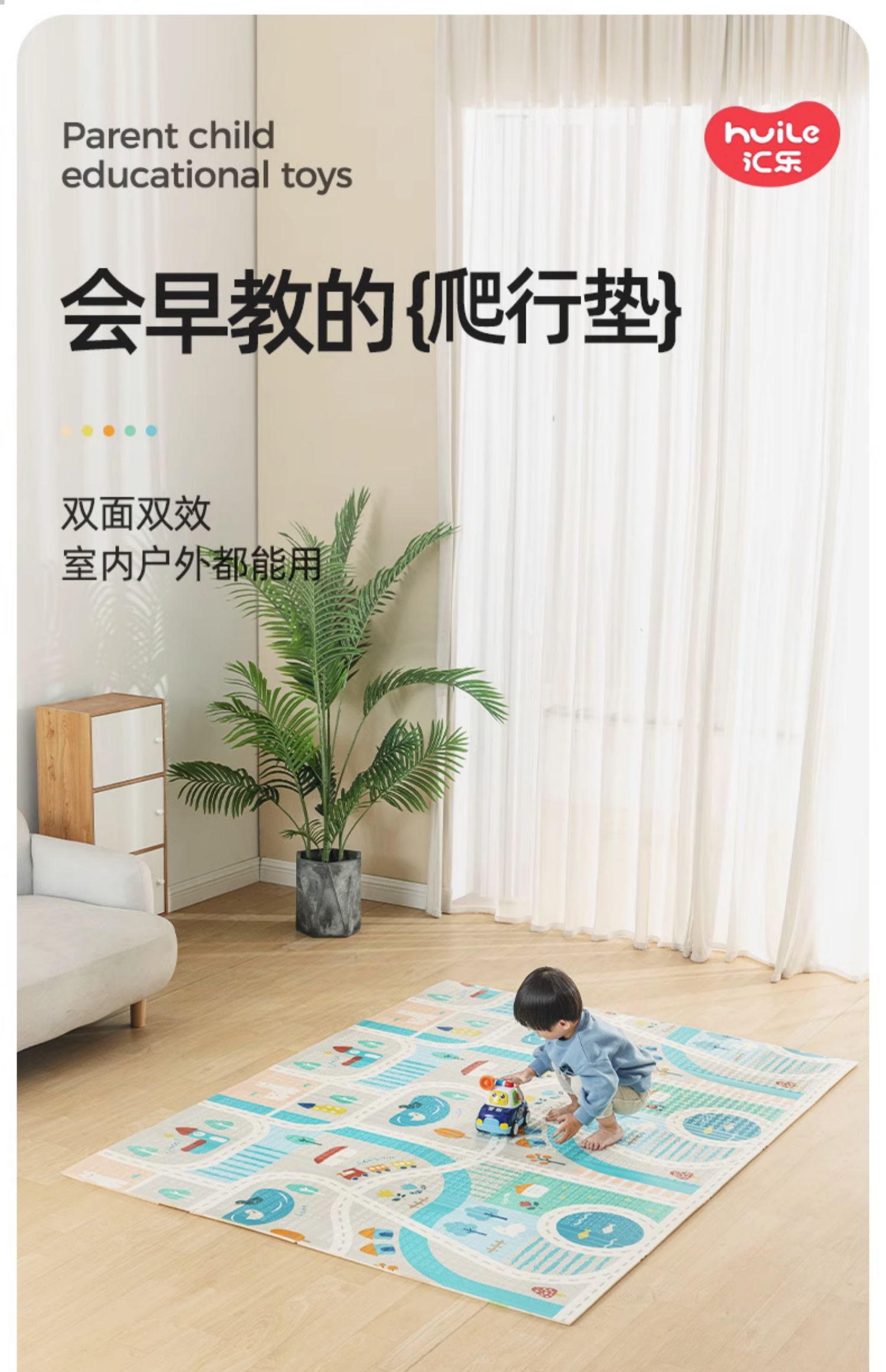 汇乐爬行垫加厚2XPE无毒无味宝宝爬爬垫可折叠儿童家用婴儿客厅垫