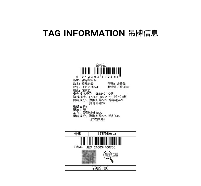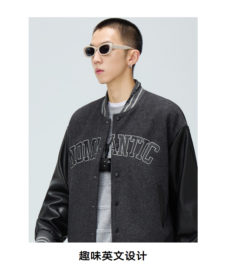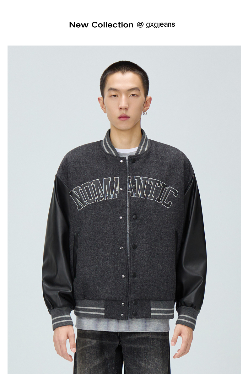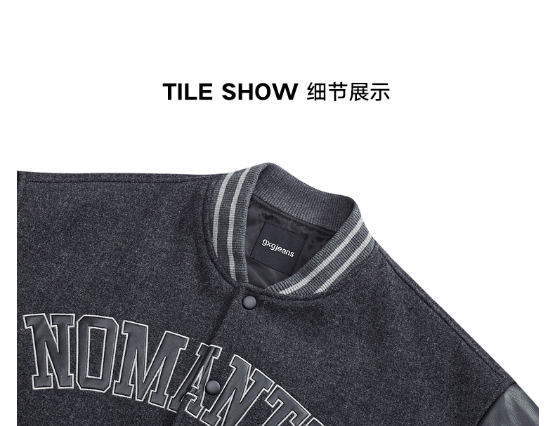 gxg.jeans男装冬季深灰夹克色趣味英文设计棒球夹克JEX12100344