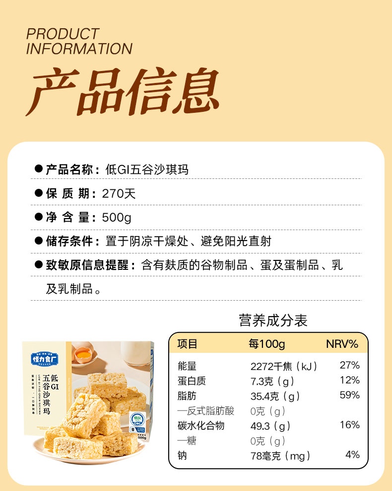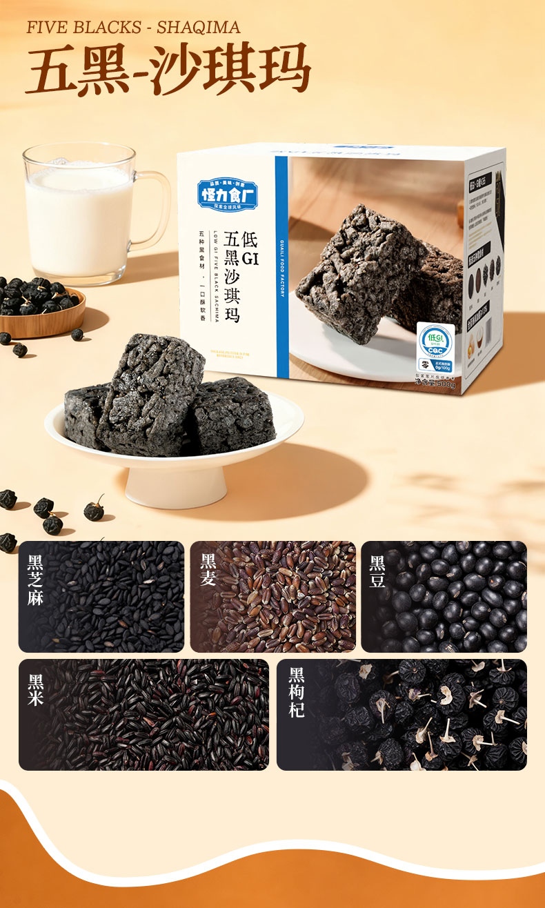 怪力食厂 低GI五谷/五黑沙琪玛500g/箱