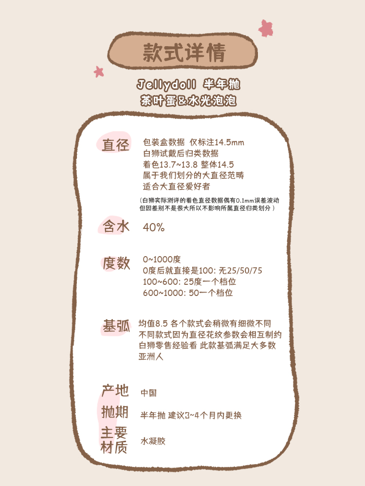 Jellydoll旗下· 茶叶蛋 14.5mm白狮参考着色大直径 半年抛 2片装