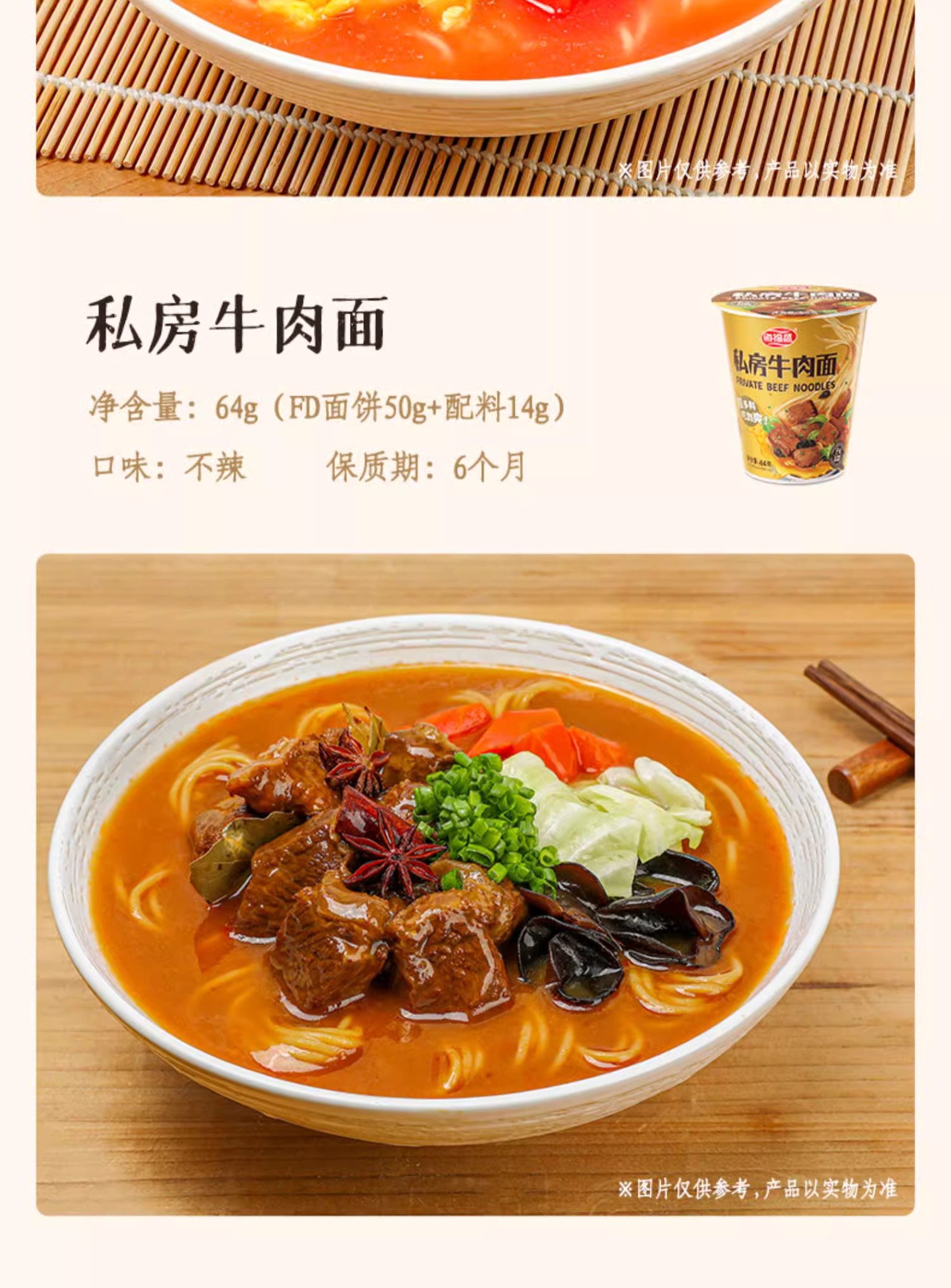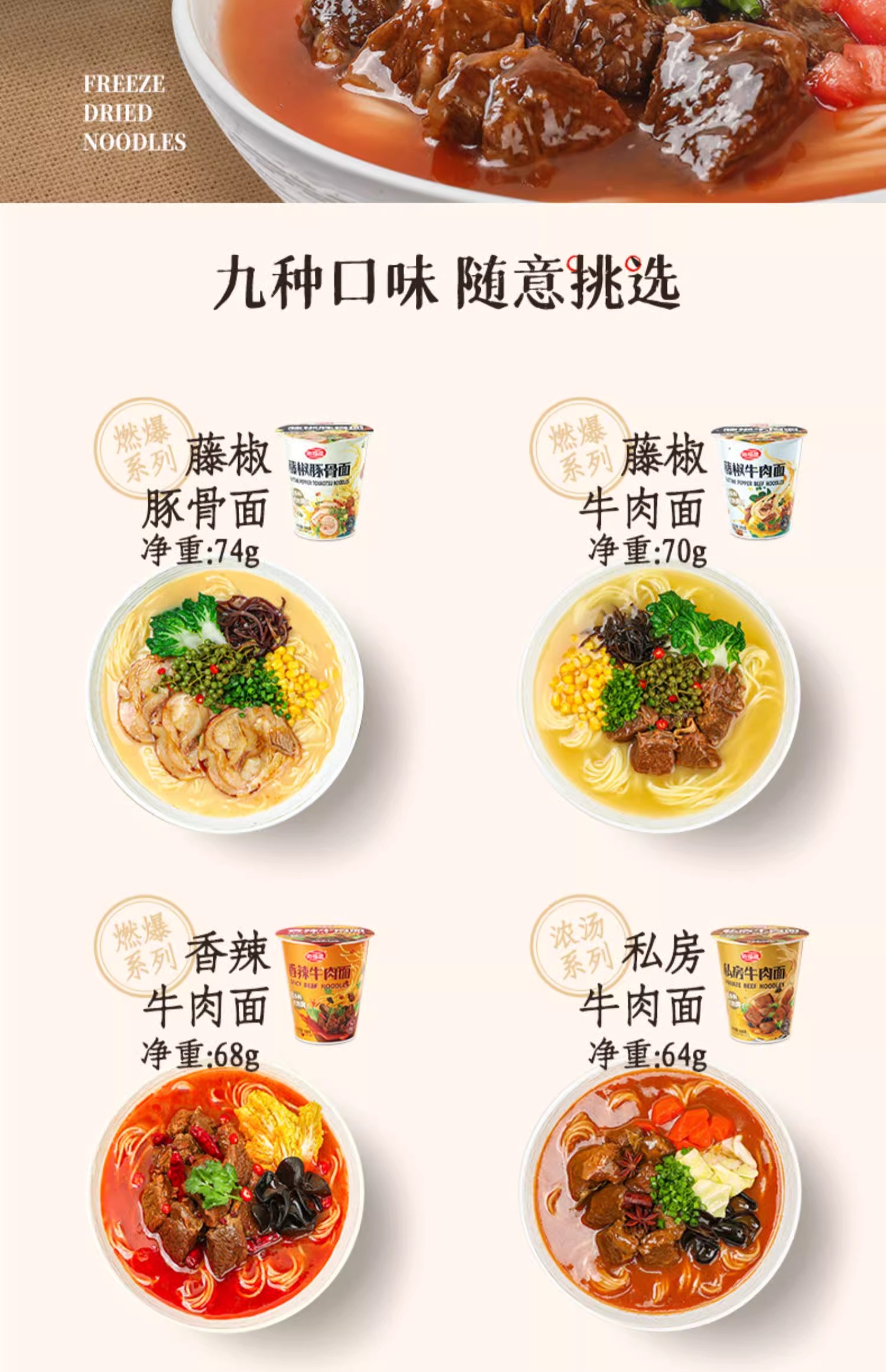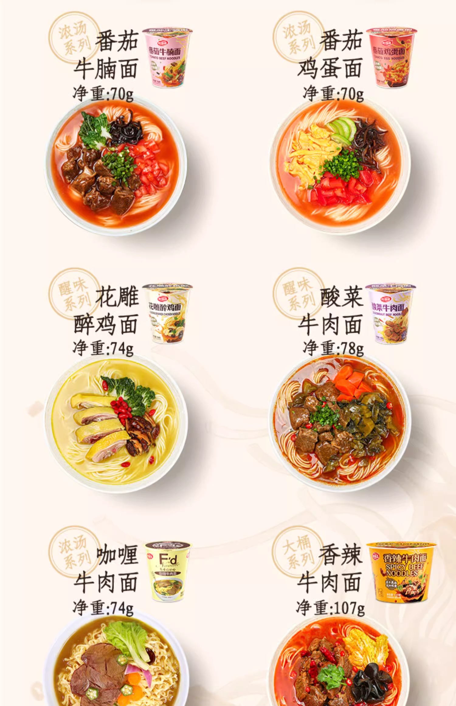 海福盛冻干面/非油炸真材实料/夜宵搭档/6杯6口味组合