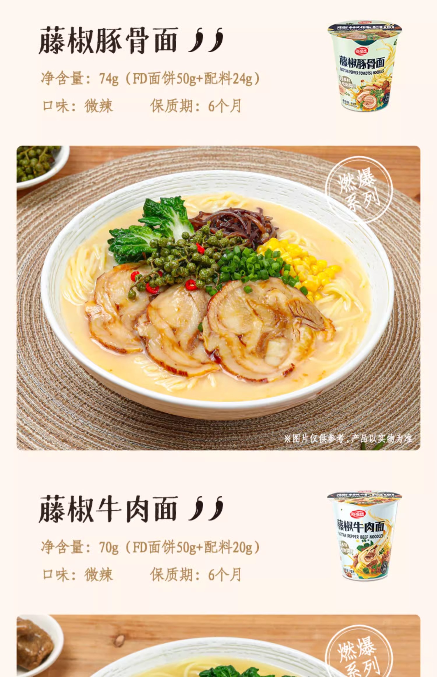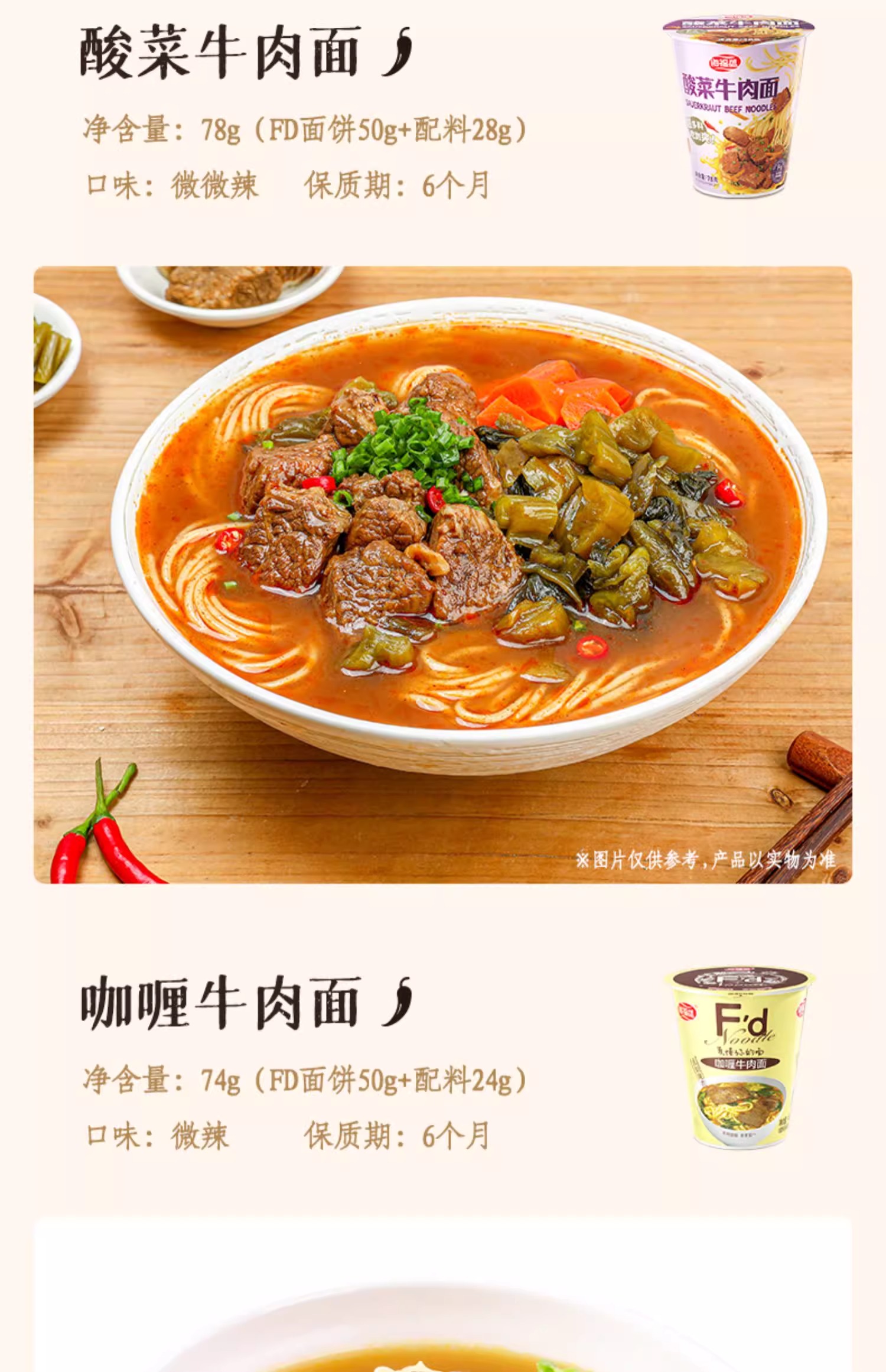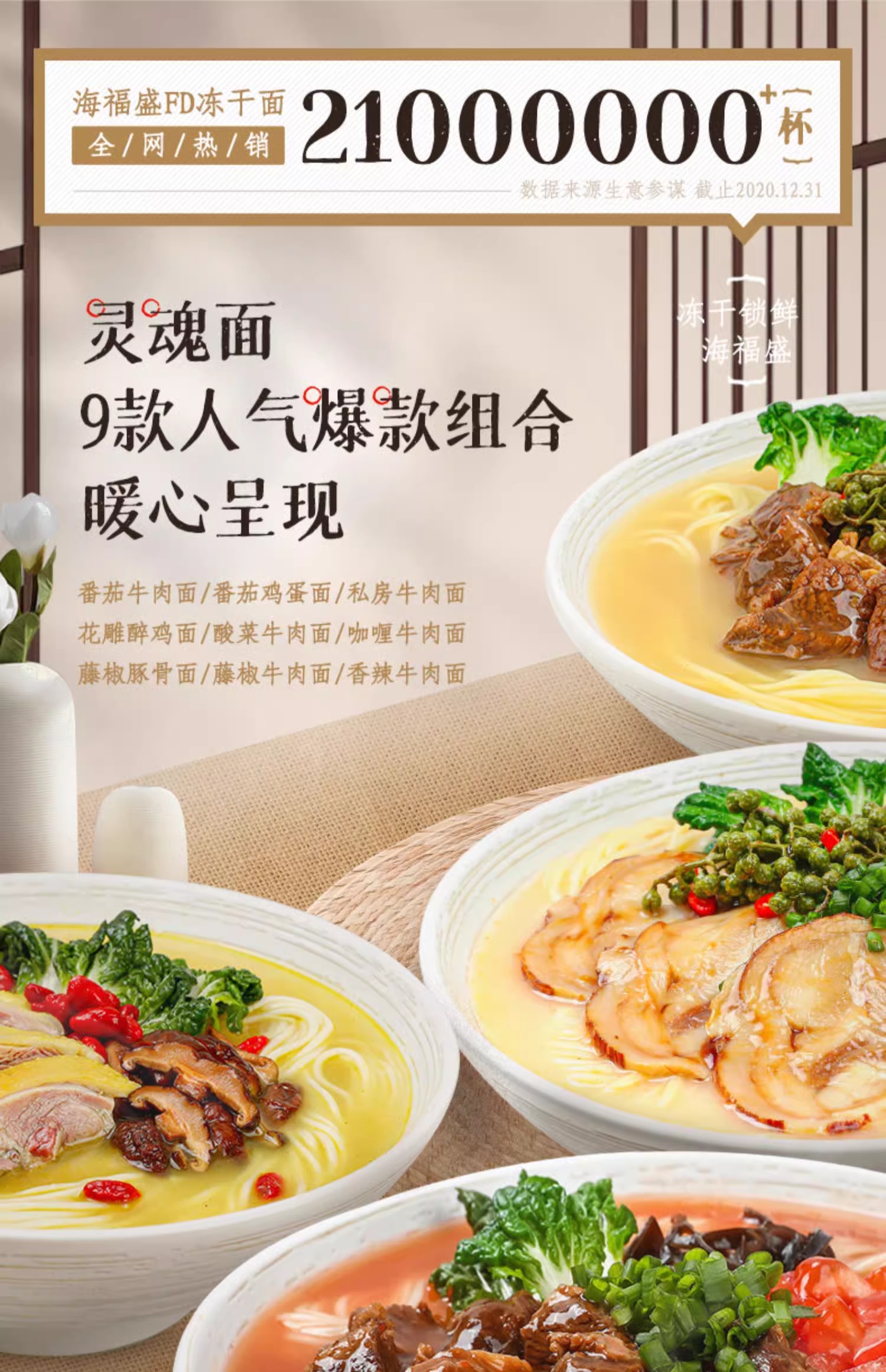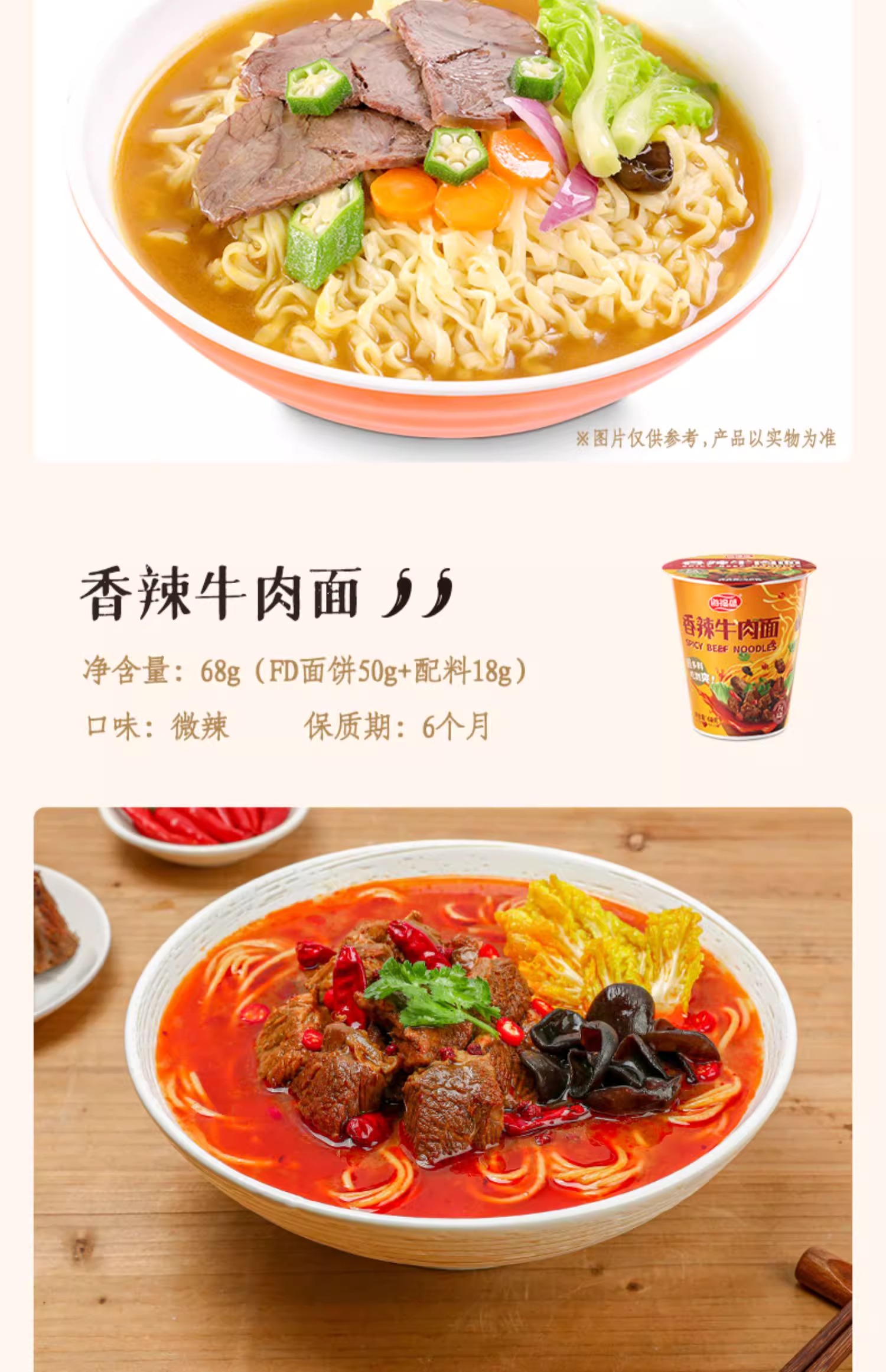 海福盛冻干面/非油炸真材实料/夜宵搭档/6杯6口味组合
