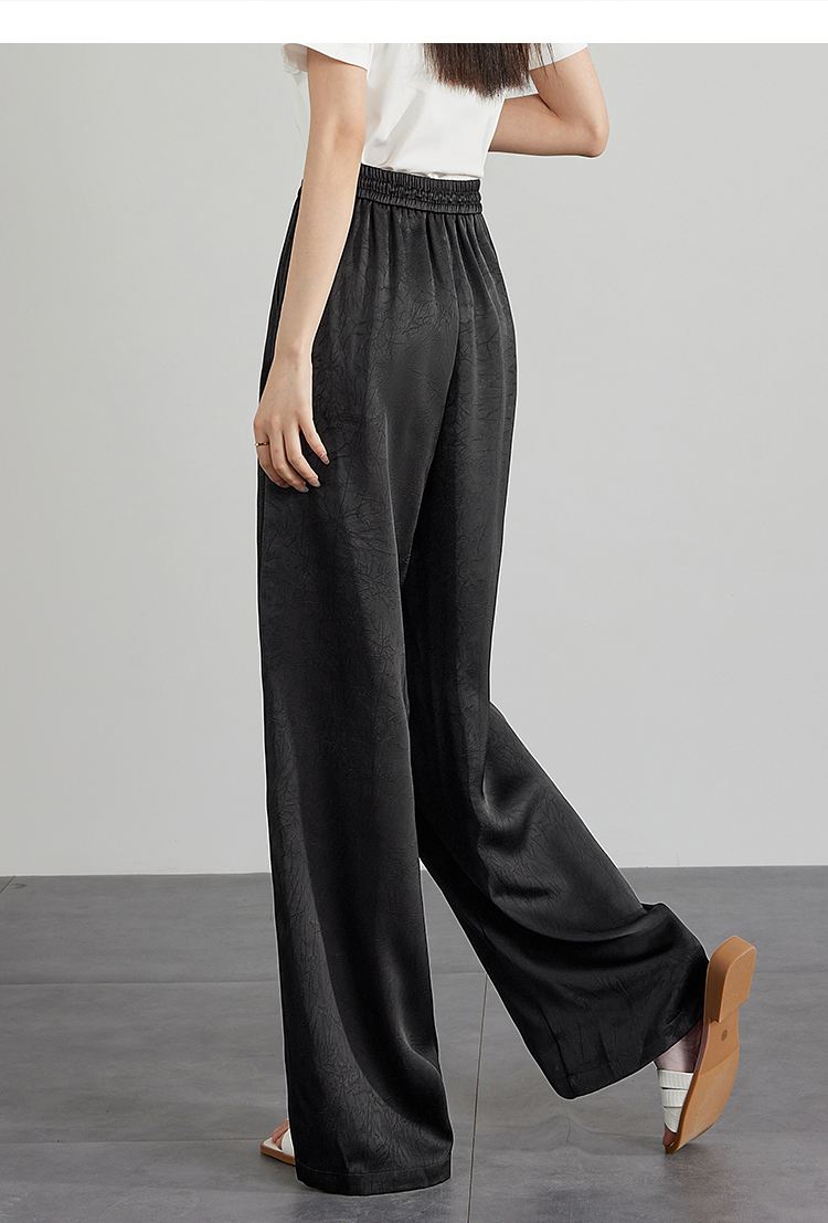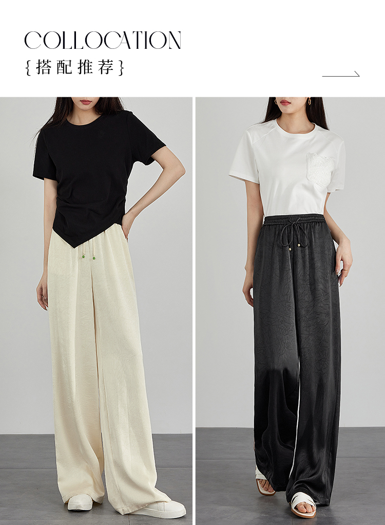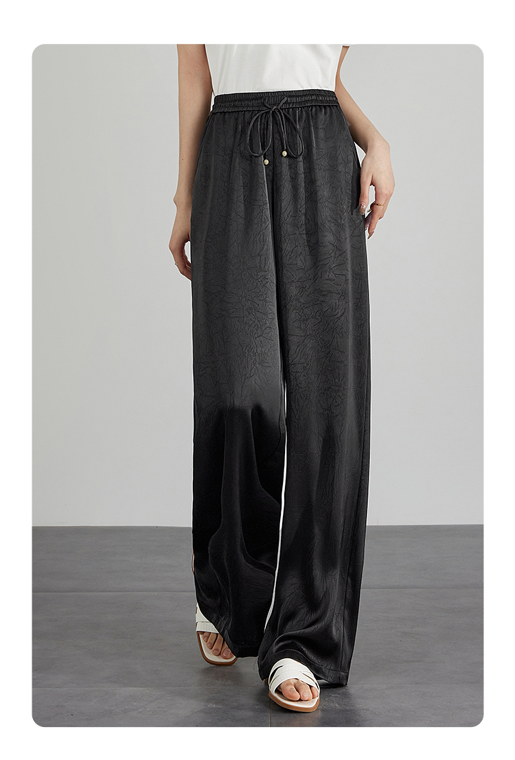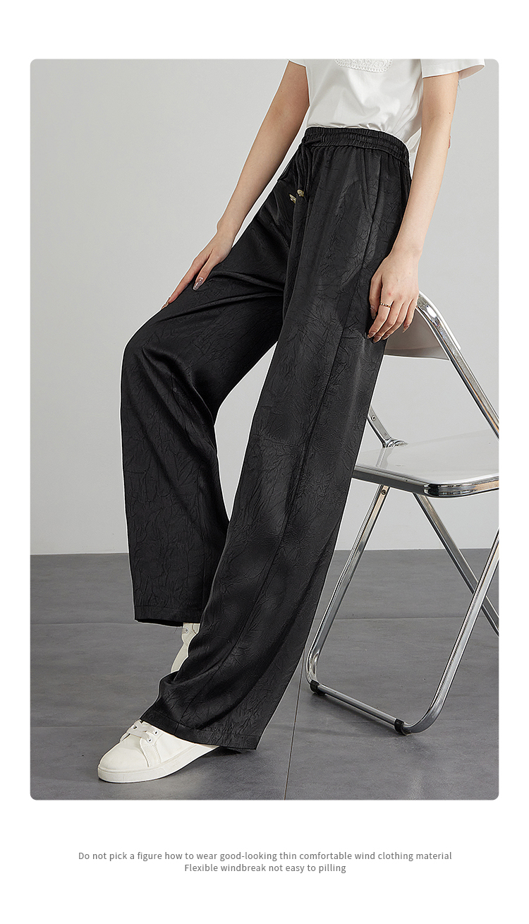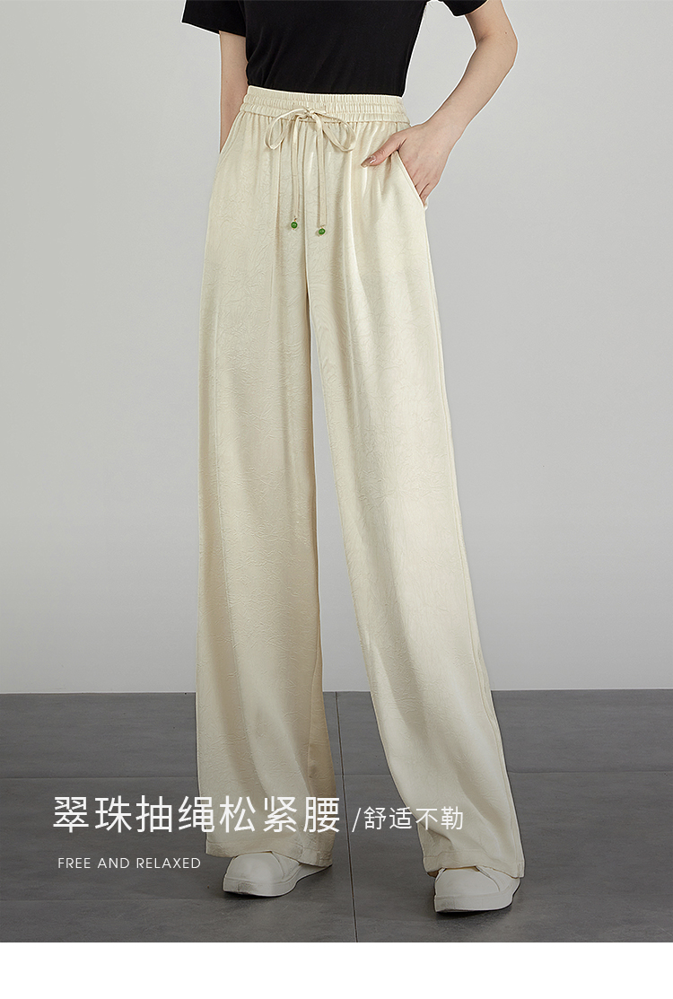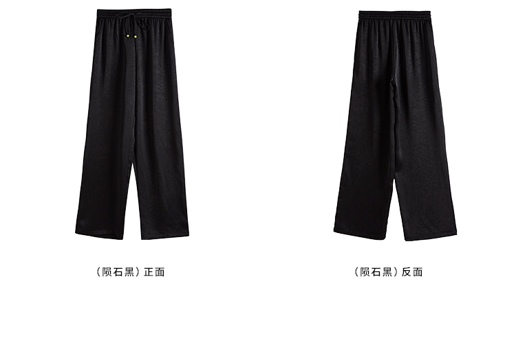 【专属特价】熙世界仿醋酸新中式暗纹阔腿裤夏季凉感高腰垂感宽松直筒长裤子