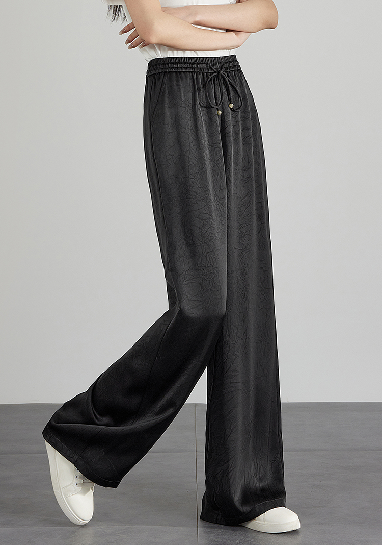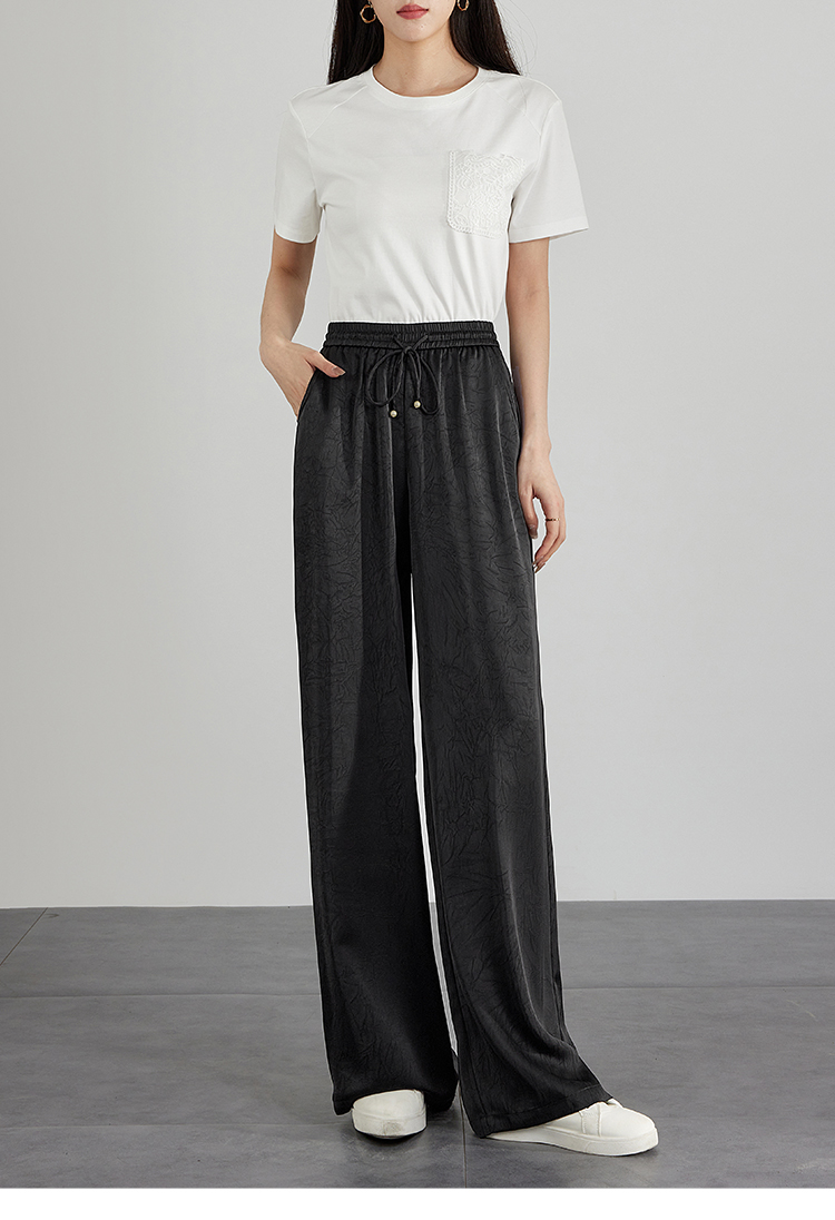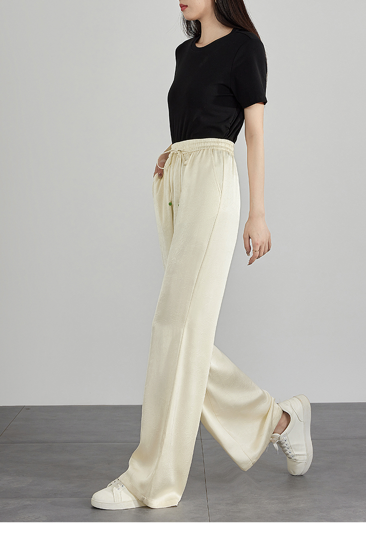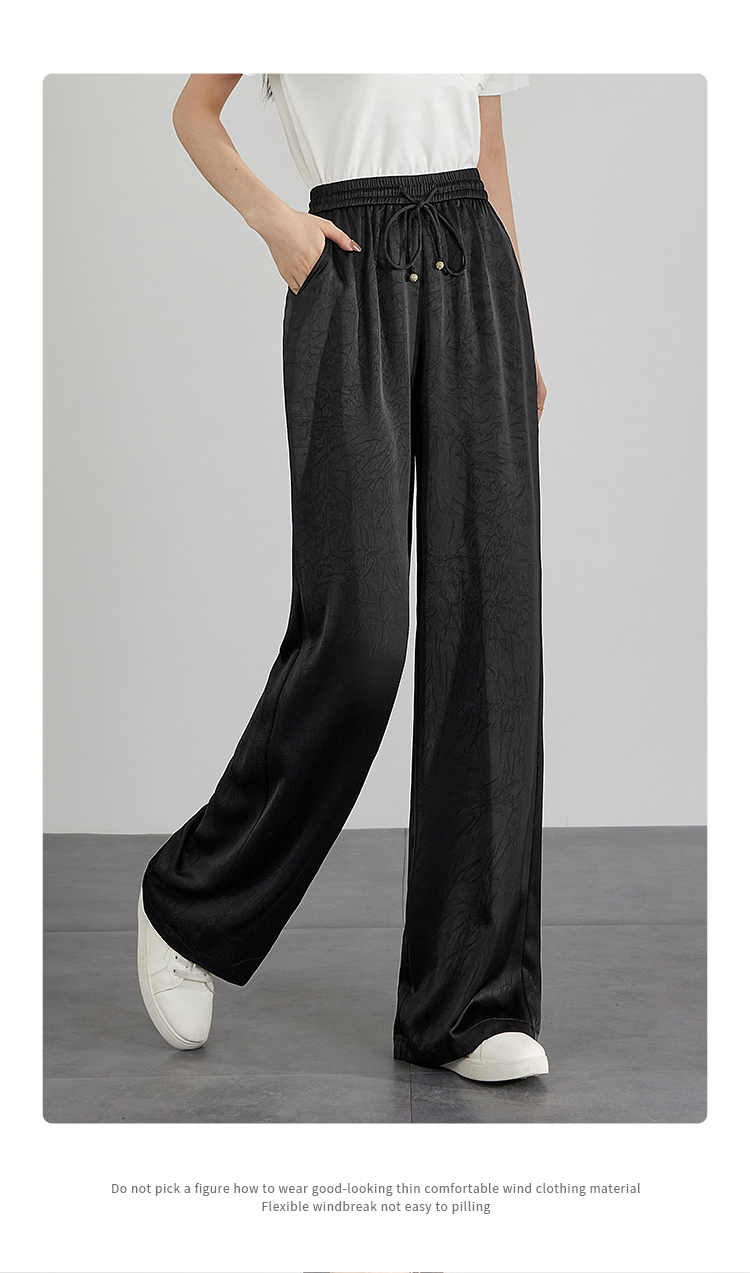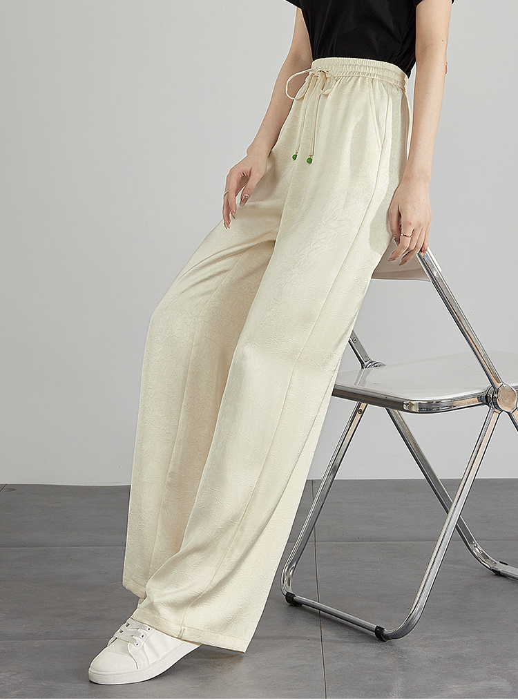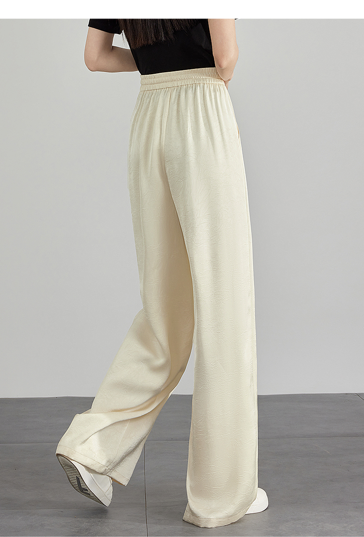 【专属特价】熙世界仿醋酸新中式暗纹阔腿裤夏季凉感高腰垂感宽松直筒长裤子