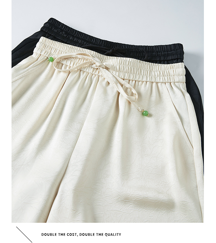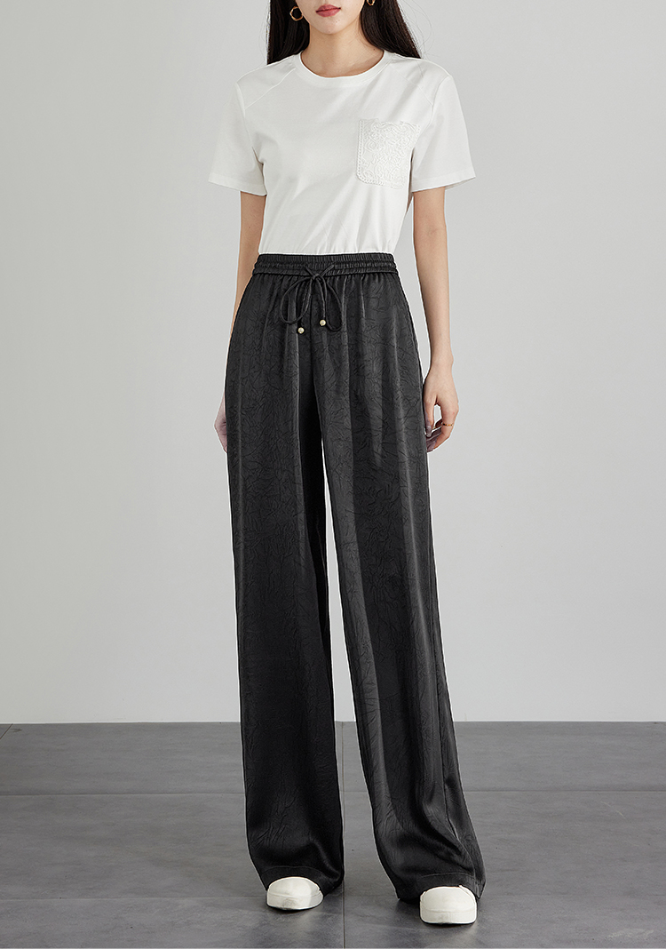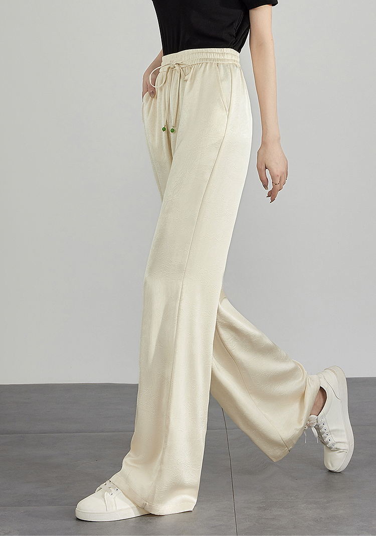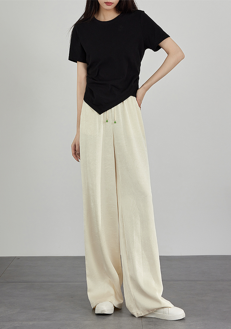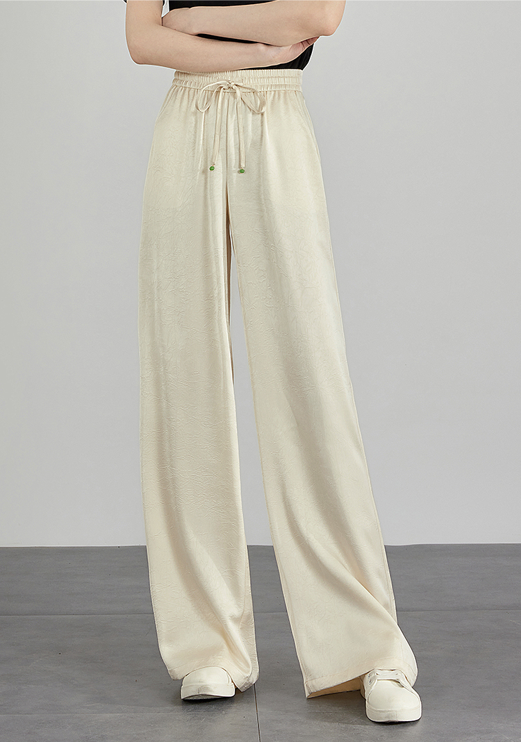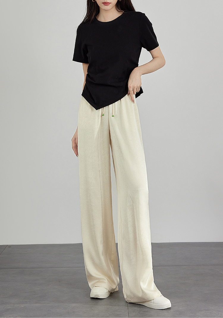 【专属特价】熙世界仿醋酸新中式暗纹阔腿裤夏季凉感高腰垂感宽松直筒长裤子