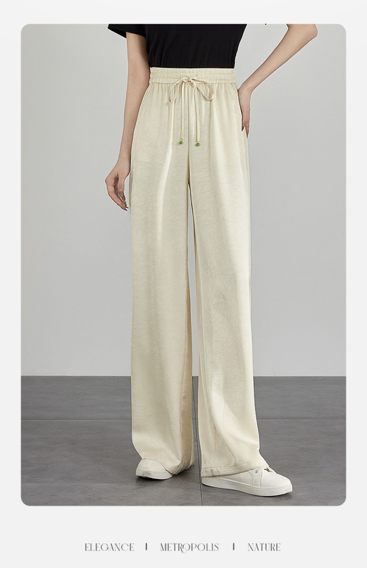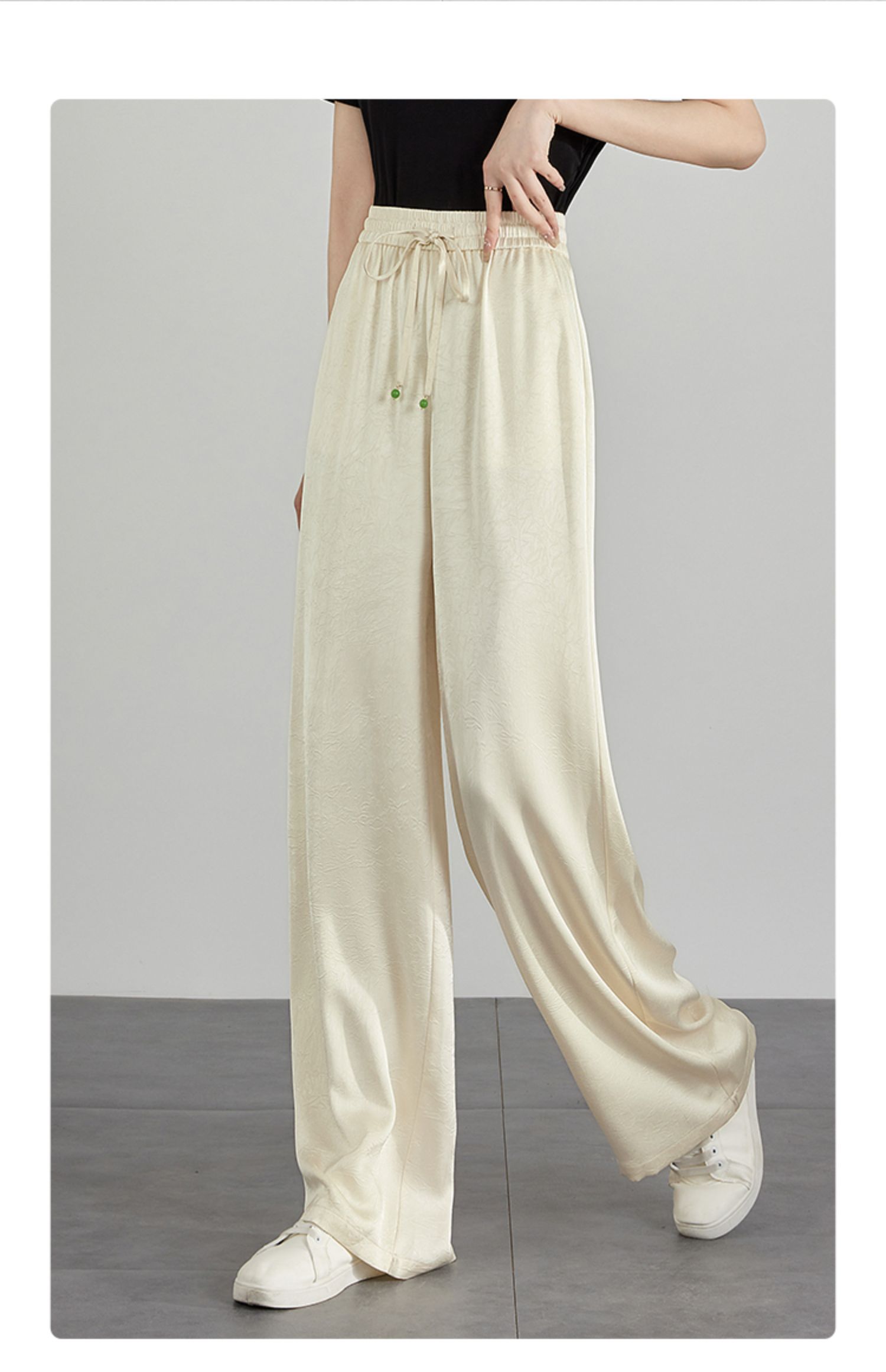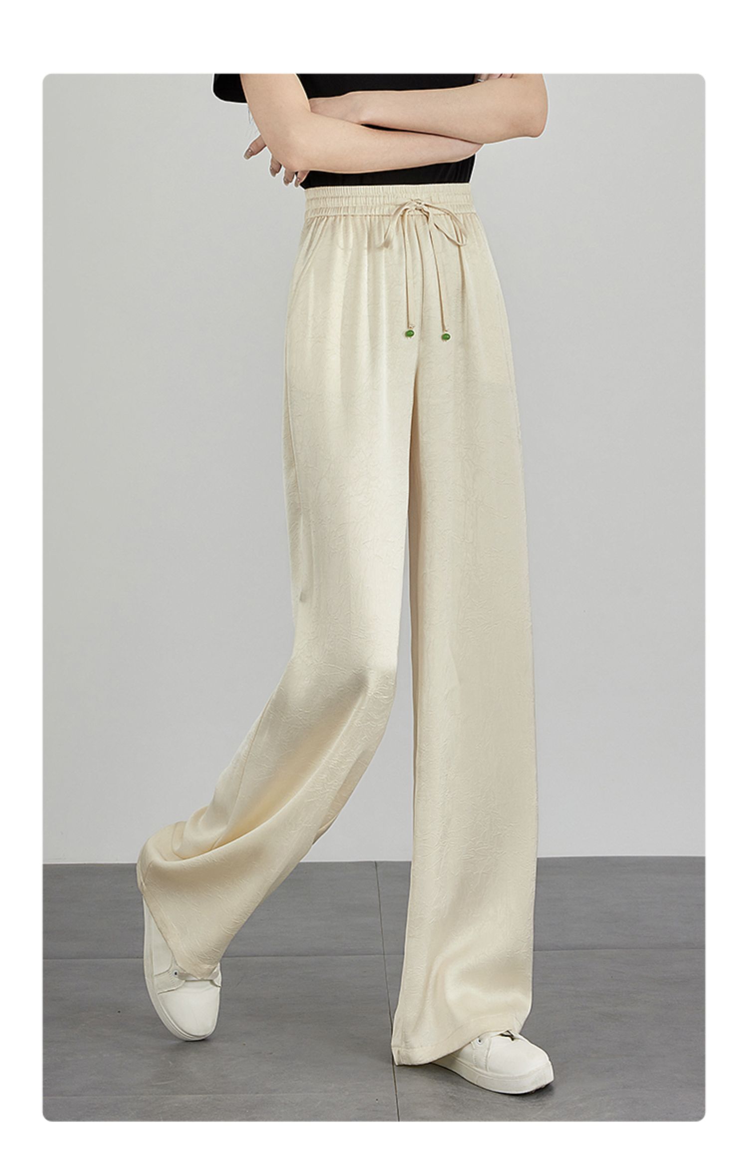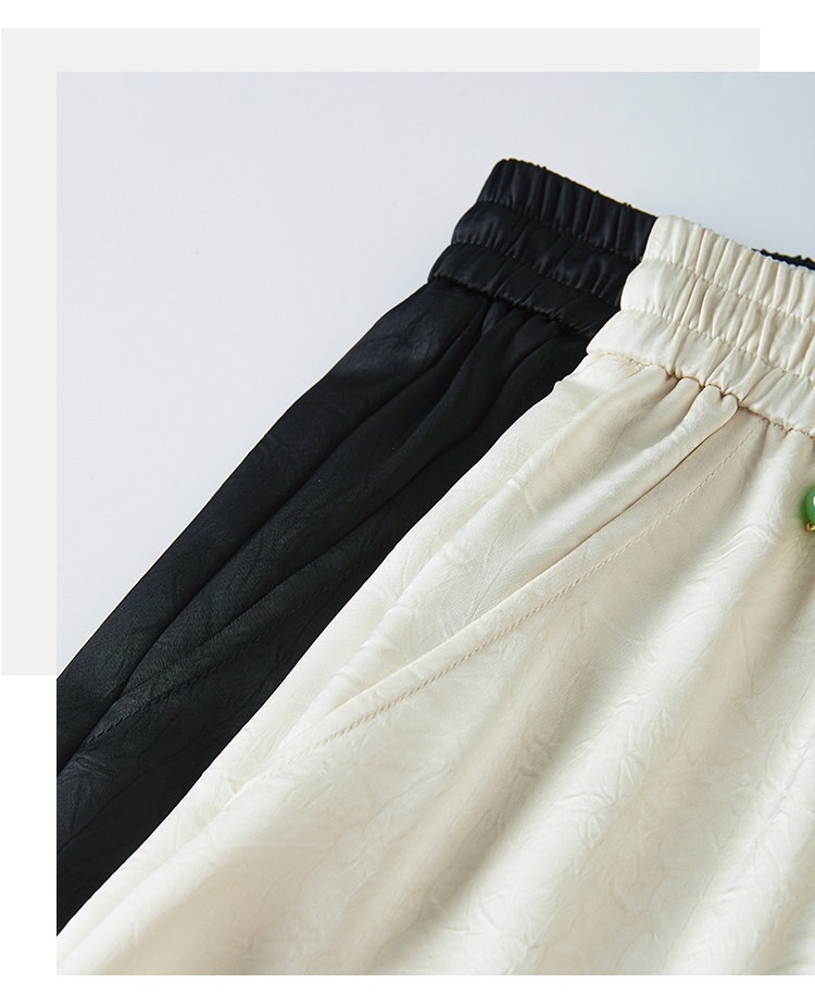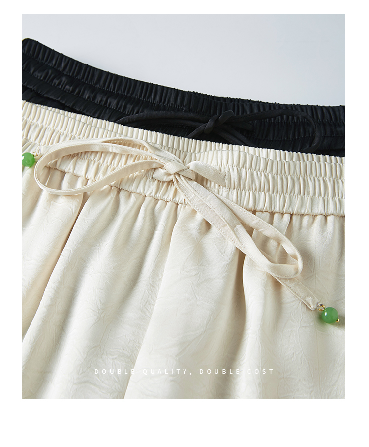 【专属特价】熙世界仿醋酸新中式暗纹阔腿裤夏季凉感高腰垂感宽松直筒长裤子