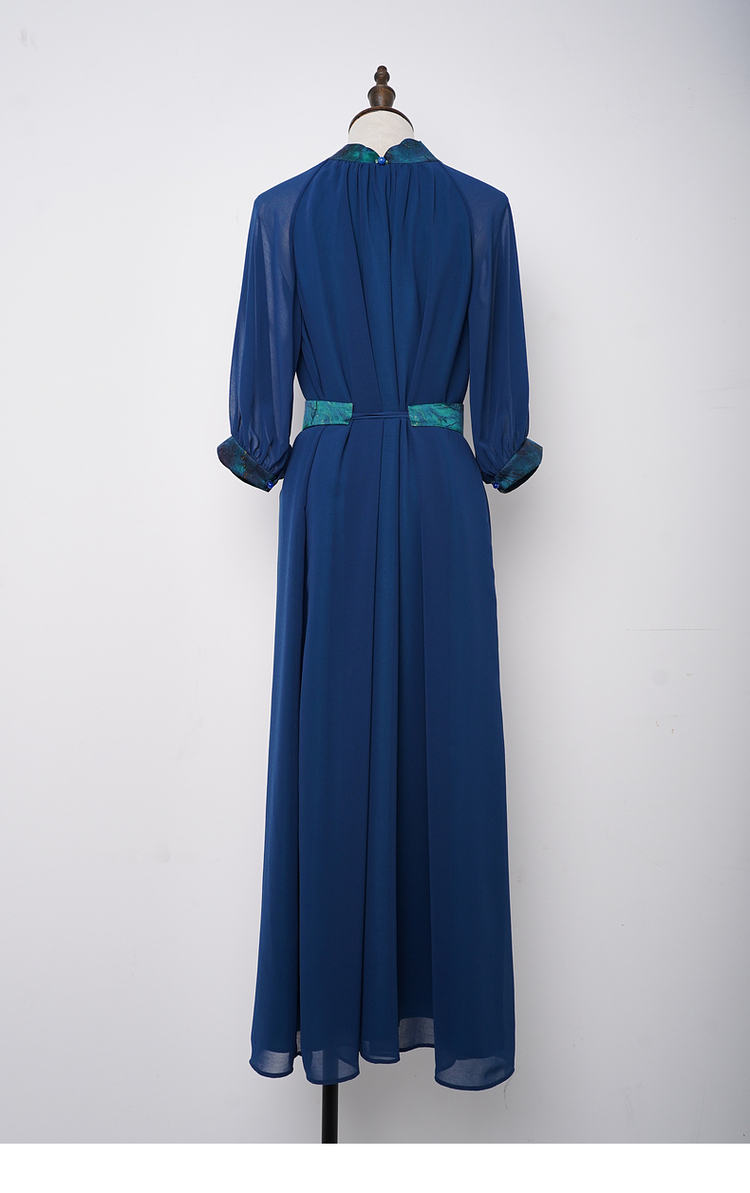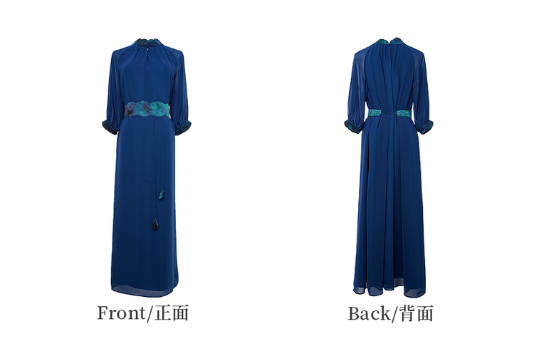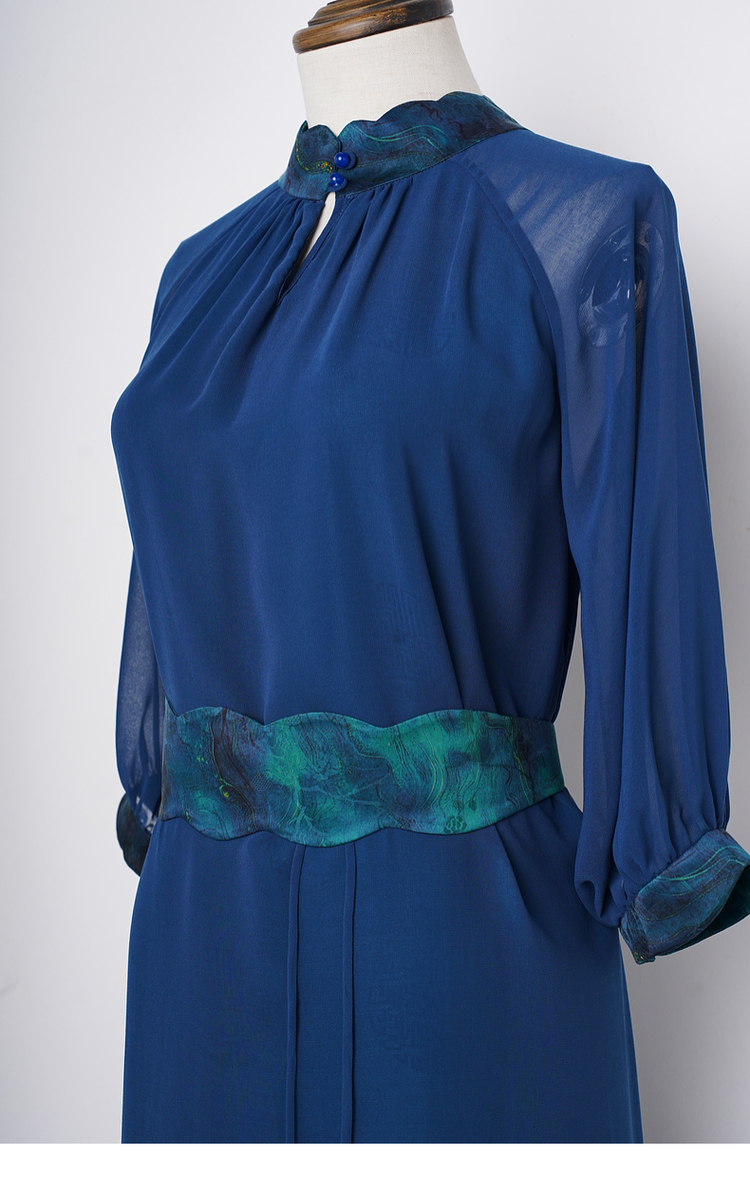 吉祥衣家新中式国风蚕桑丝裙子气质修身女装沧浪穹辉真丝连衣裙