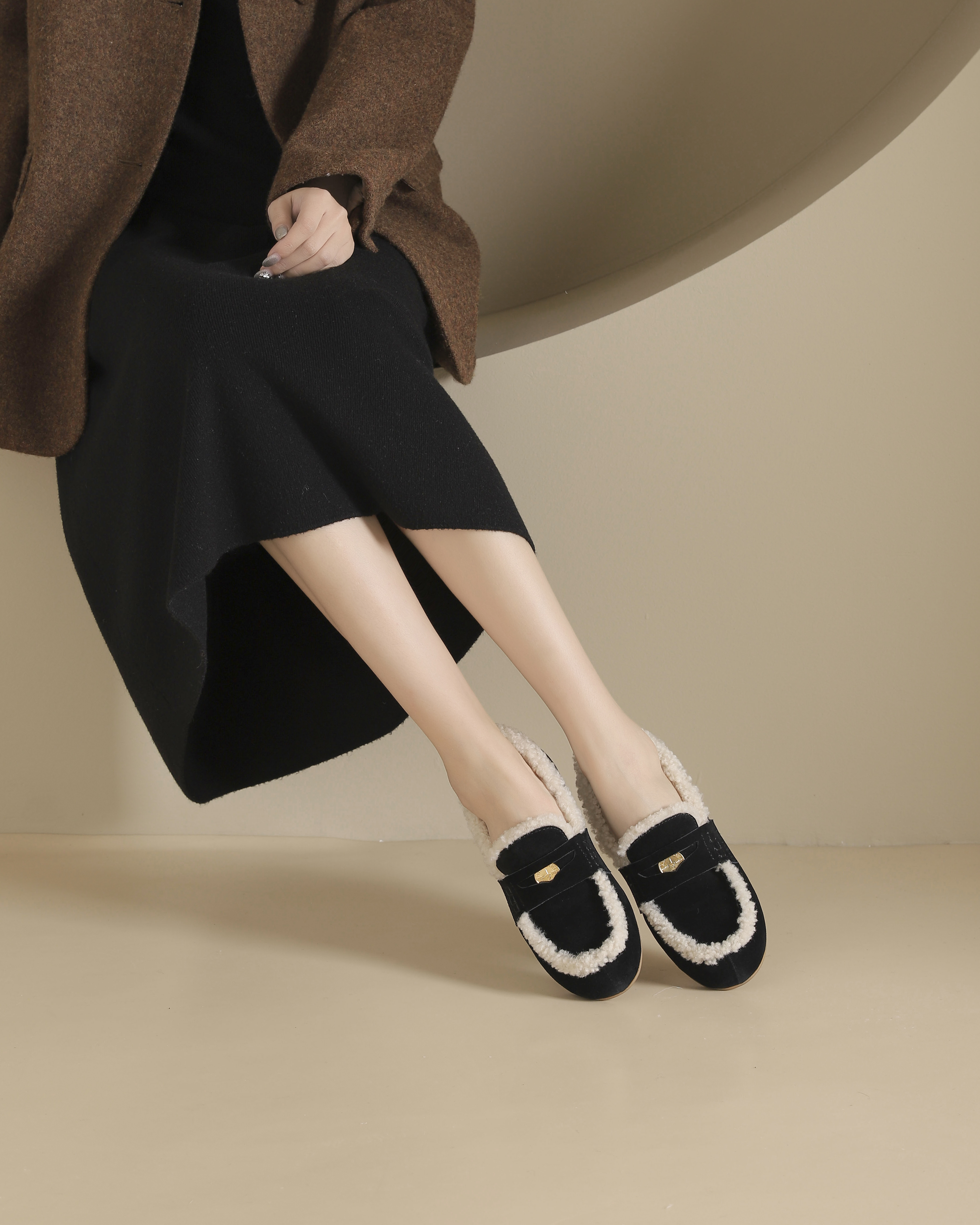 westory2024年秋冬新款休闲风厚底平跟舒适百搭毛毛鞋S24DM85111