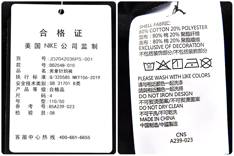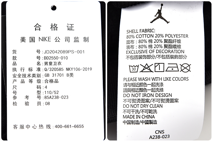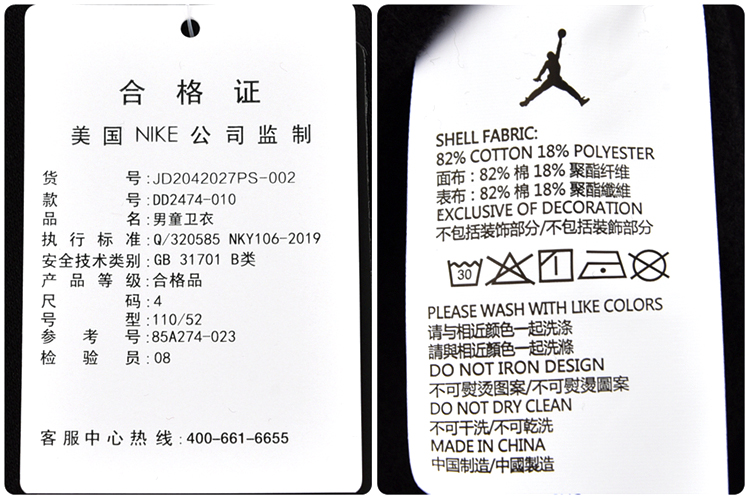 JORDAN乔丹AJ男童装冬金银标抓绒连帽卫衣JD2042027/JD2042089/JD2042036/JD2042046