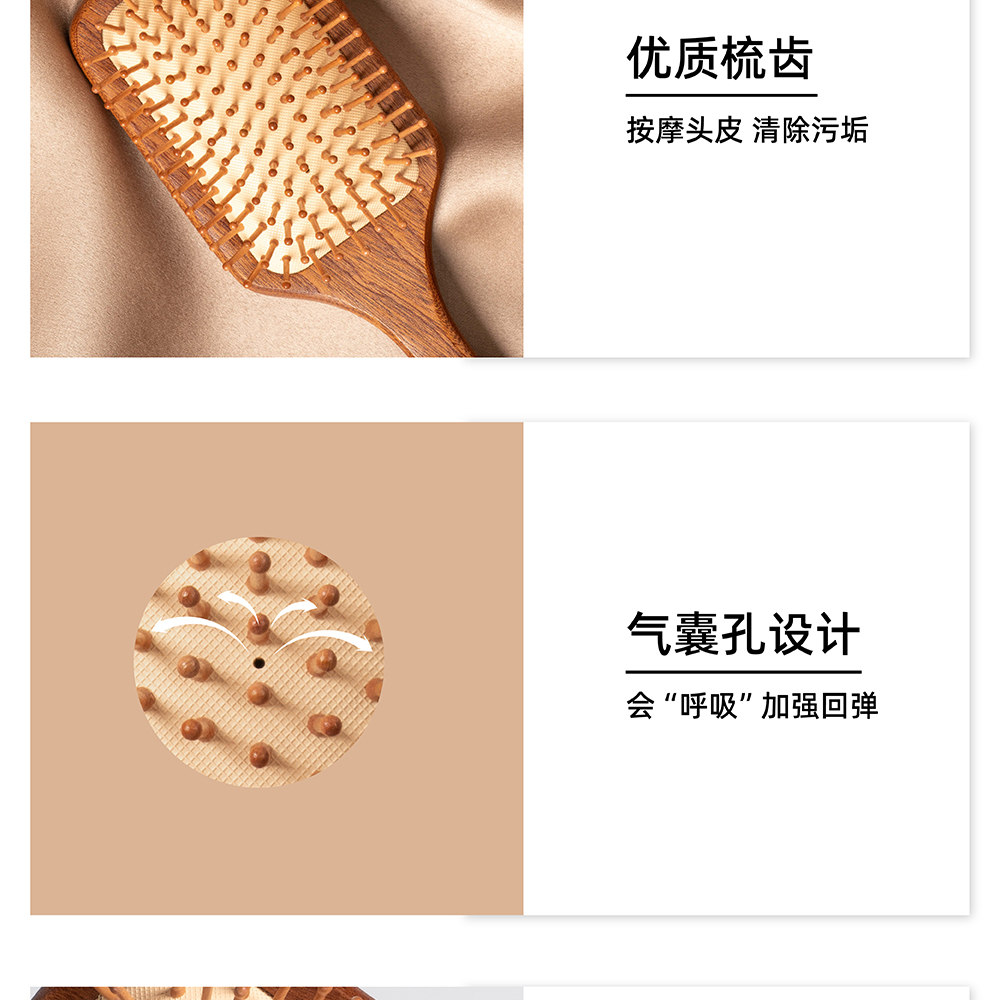 头部护理 | 佐科拉乌檀木大板按摩梳 头皮按摩柔顺发丝 不起静电奢护耐用