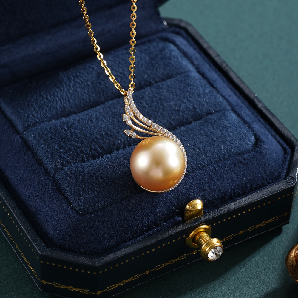 子佩集【福尾轨迹】G14K珍珠惜王妃吊坠【PS08250】12.8mm珠海水珠金色羽翅镀金(不含链)2601