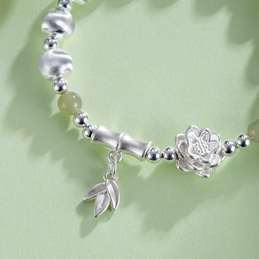 【寓意】:经典圆珠手串,巧妙融合了莲花元素,通过抛光打磨,精致细腻。整体清新雅致,寓意好运莲莲。