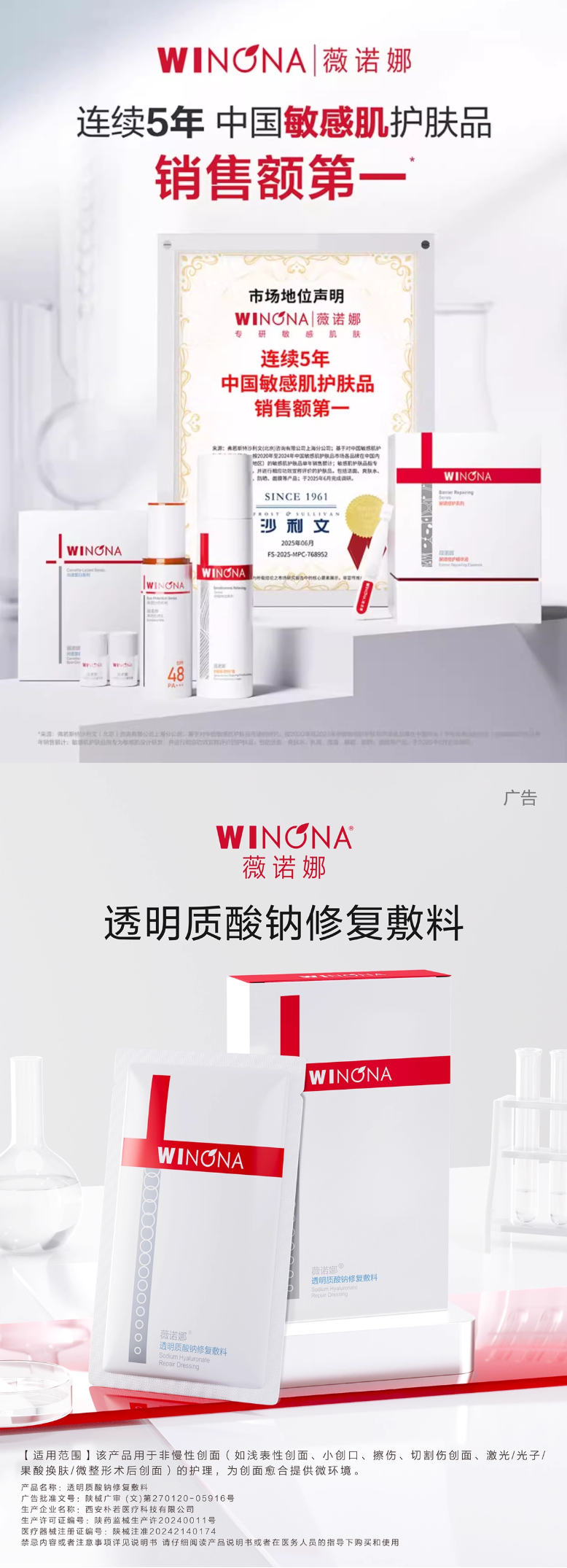 【180元会员福利】薇诺娜 透明质酸钠修复敷料25g*6片 舒敏保湿修护面膜