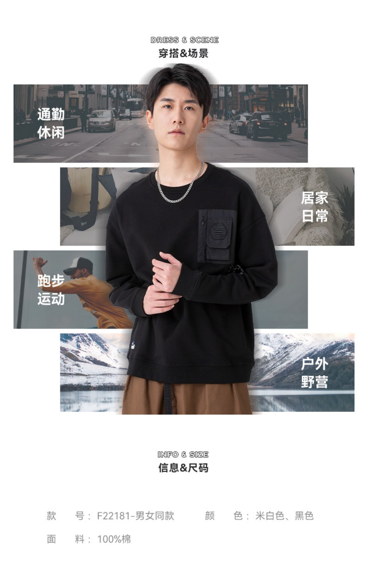 【129秒杀】天石秋冬圆领长袖卫衣薄款黑白色套头打底衫无帽基础百搭宽松上衣