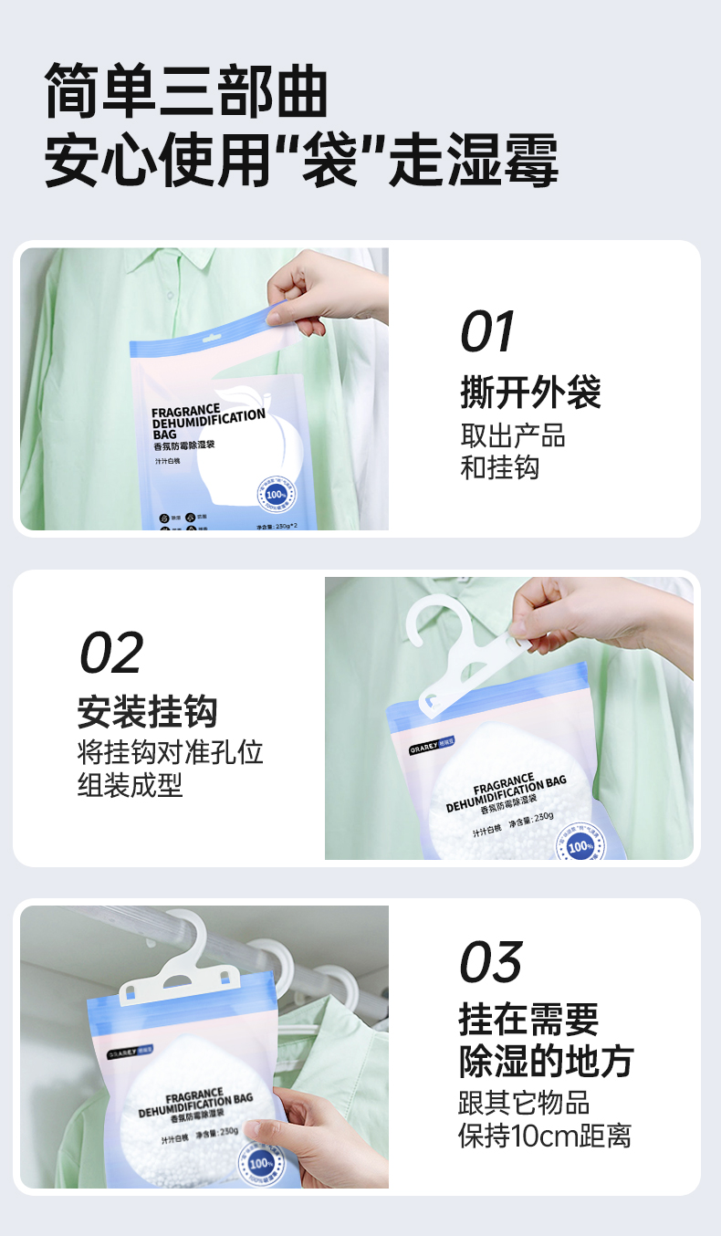 GRAREY格瑞亚香氛防霉除湿袋-栀子花香*4袋(230g*2包/袋)