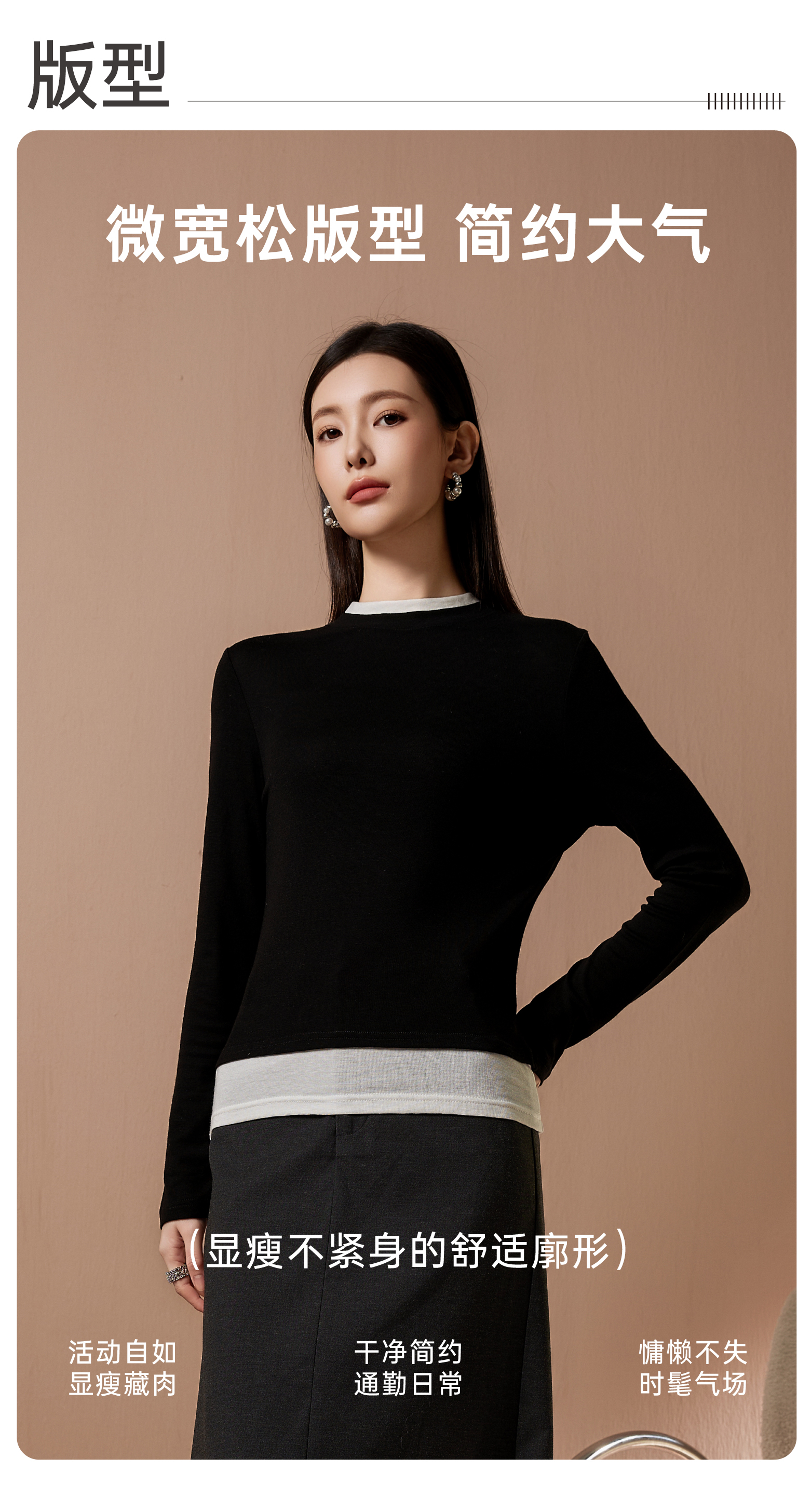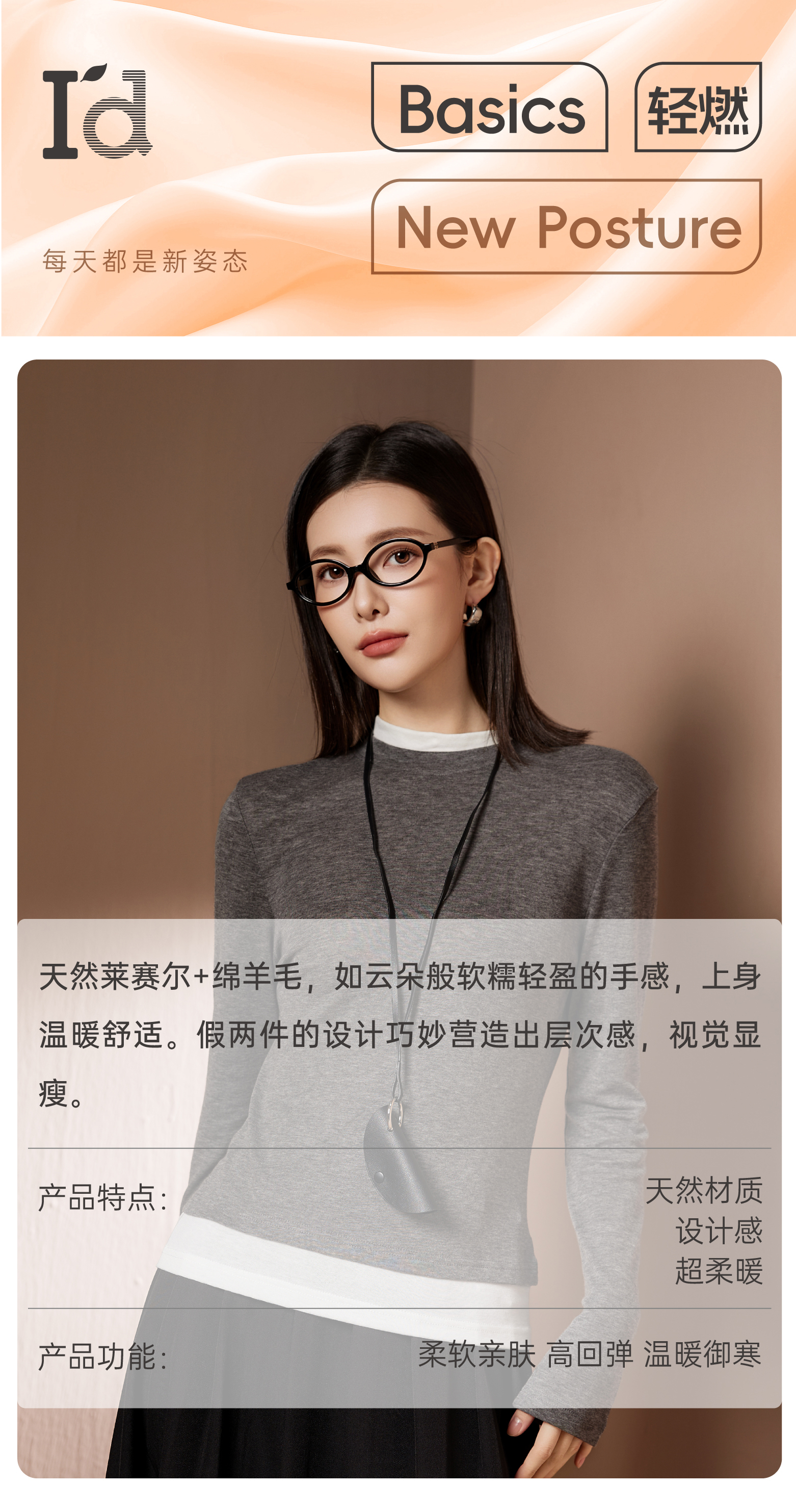 I'd爱帝莱赛尔绵羊毛时尚撞色假两件针织打底衫
