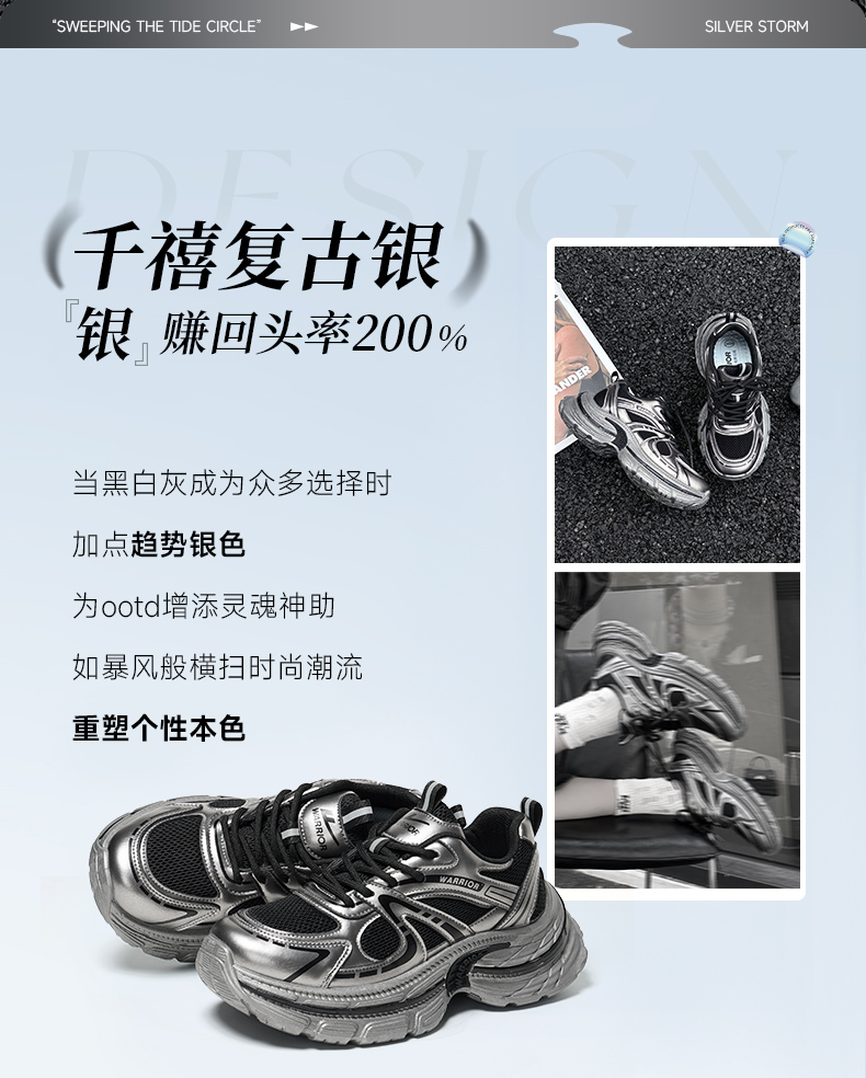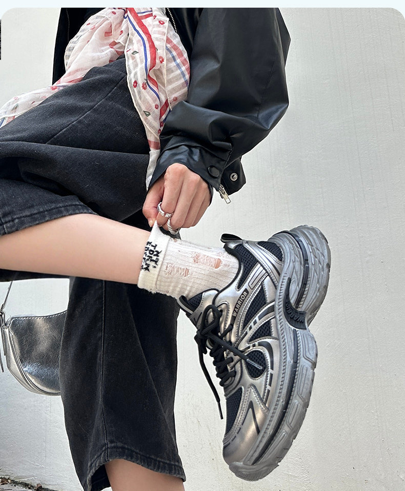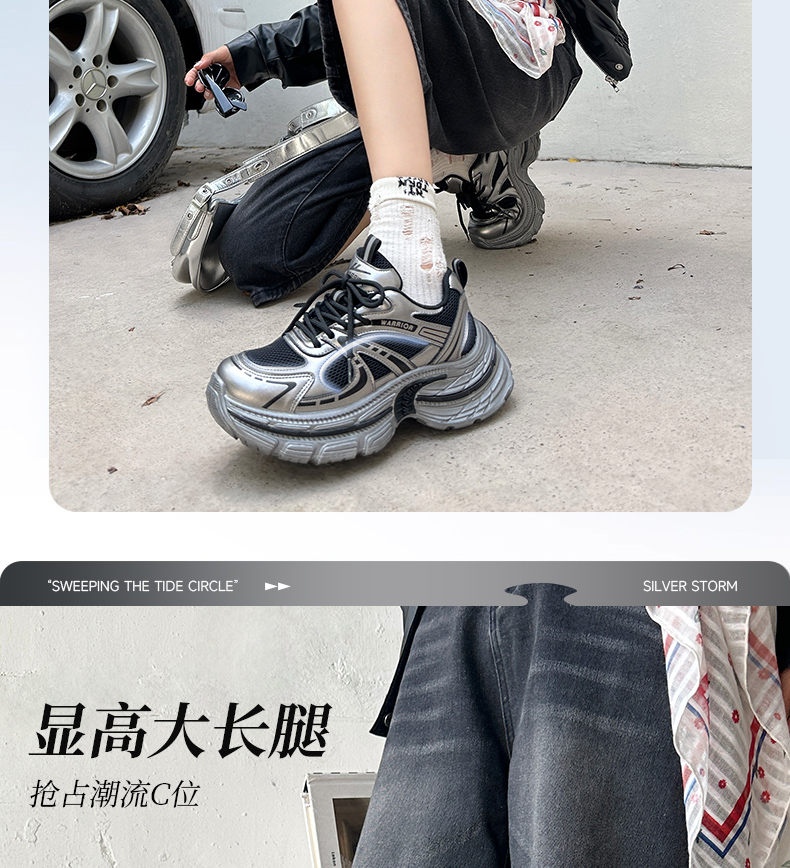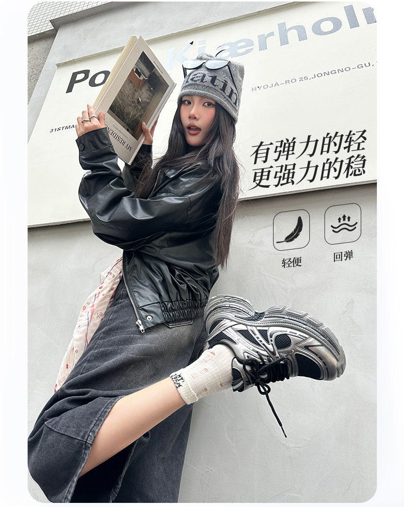 回力银色老爹鞋女鞋2025新款冬季厚底百搭鞋子复古户外运动休闲鞋