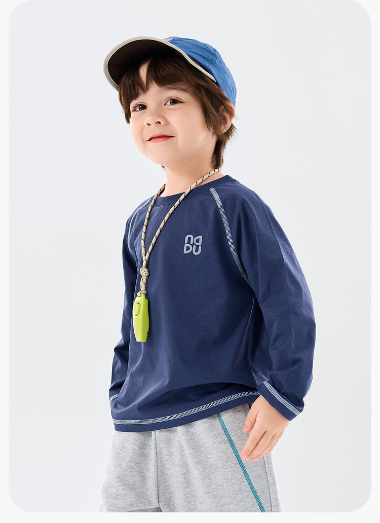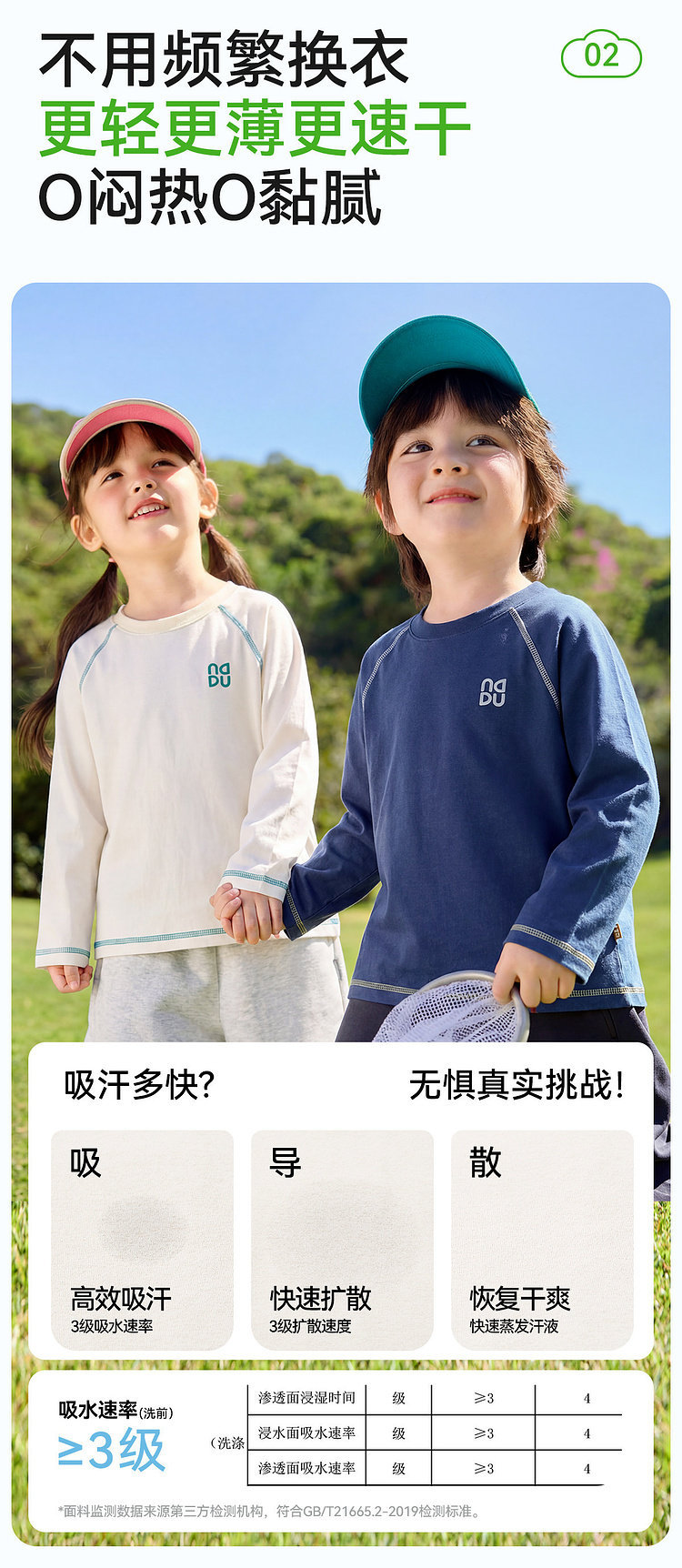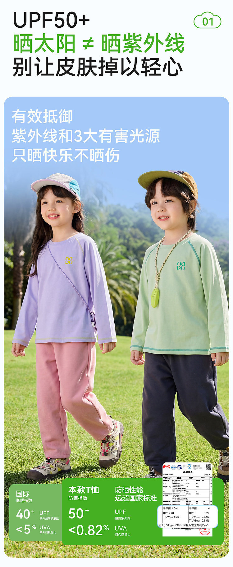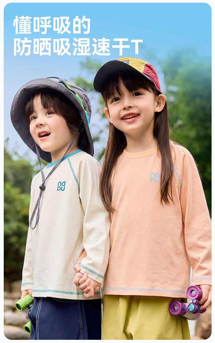 【速干防晒]嘟嘟家童装儿童长袖t恤春季新款男童上衣女童衣服春装F6ATX151★
