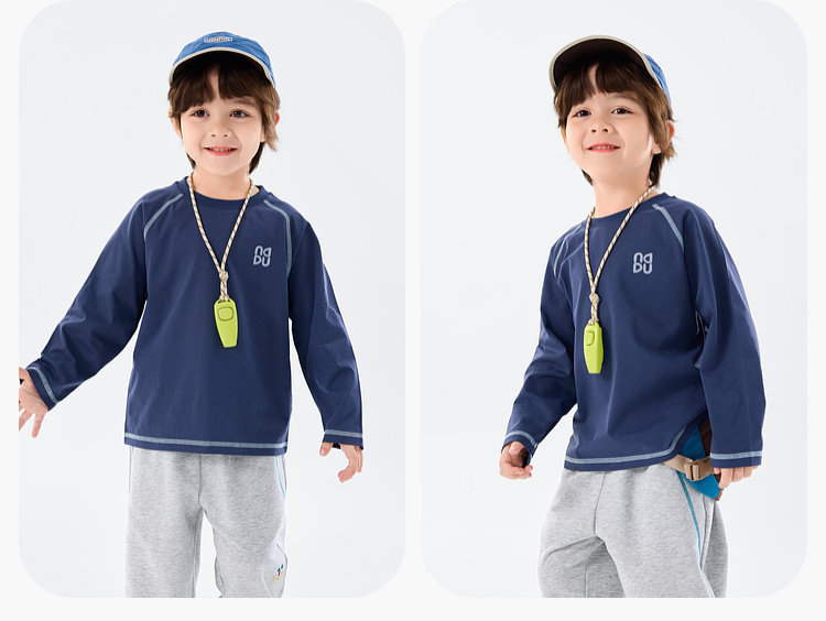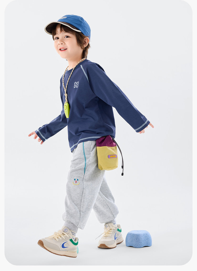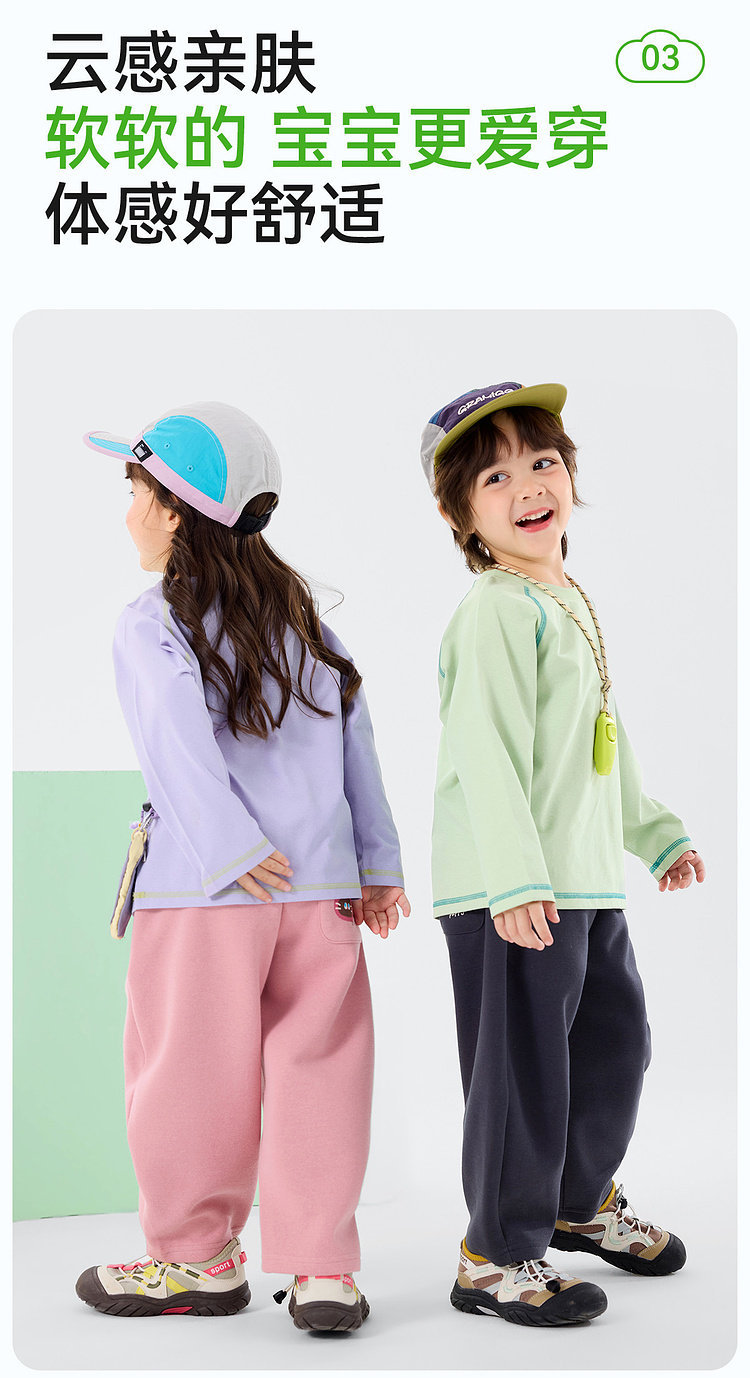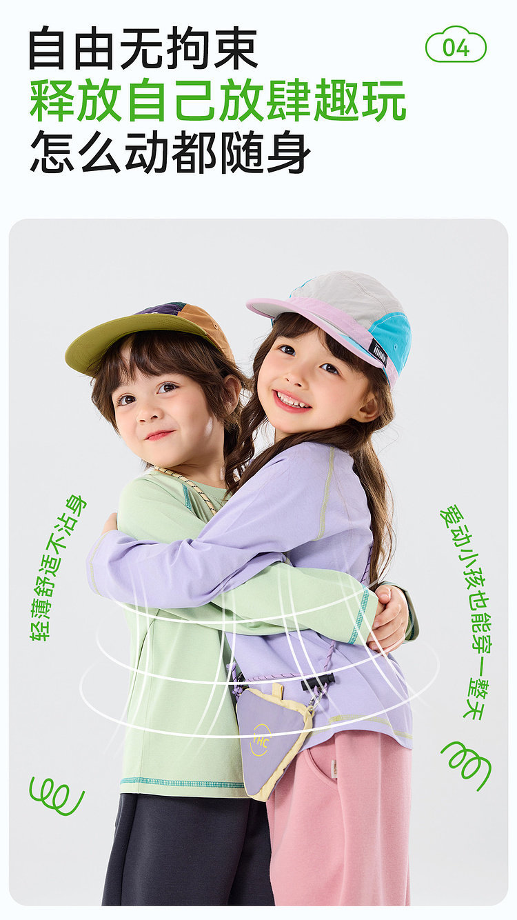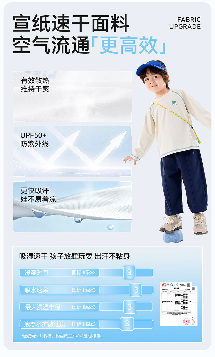 【速干防晒]嘟嘟家童装儿童长袖t恤春季新款男童上衣女童衣服春装F6ATX151★