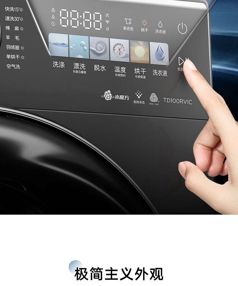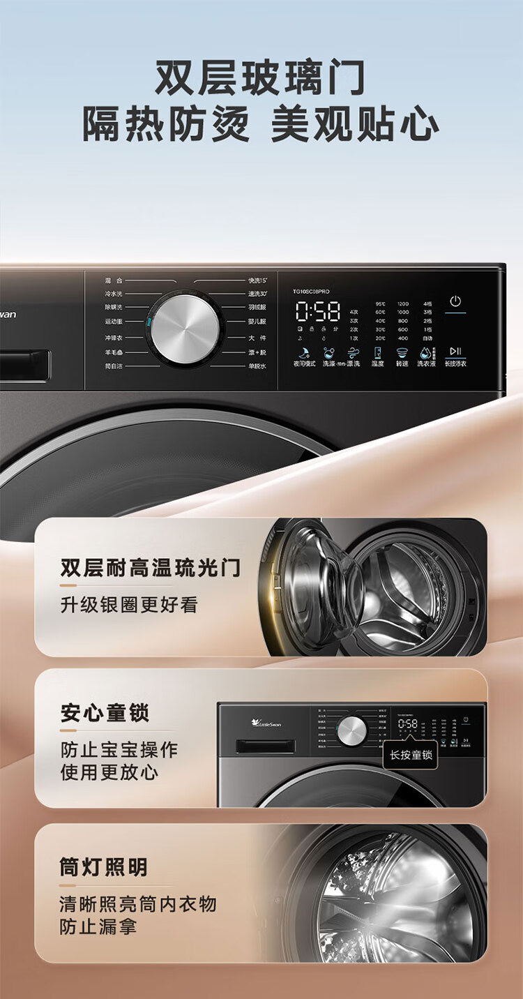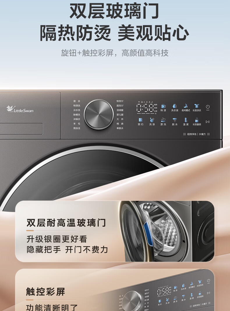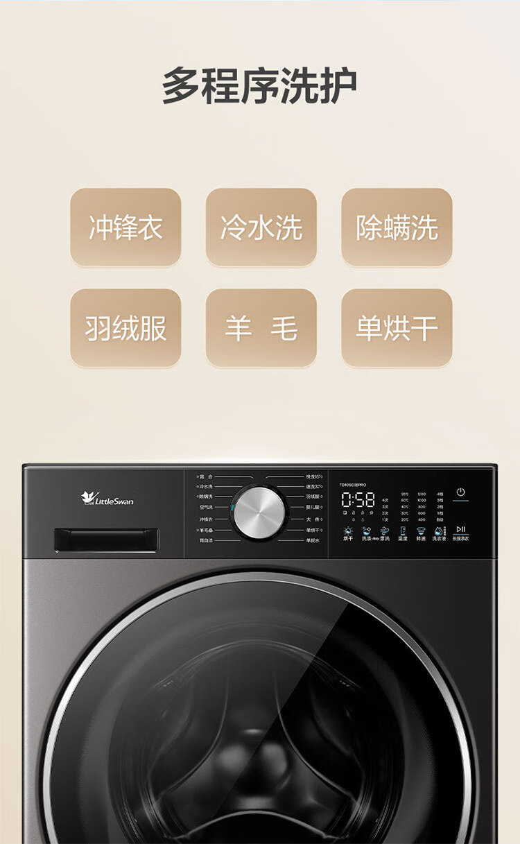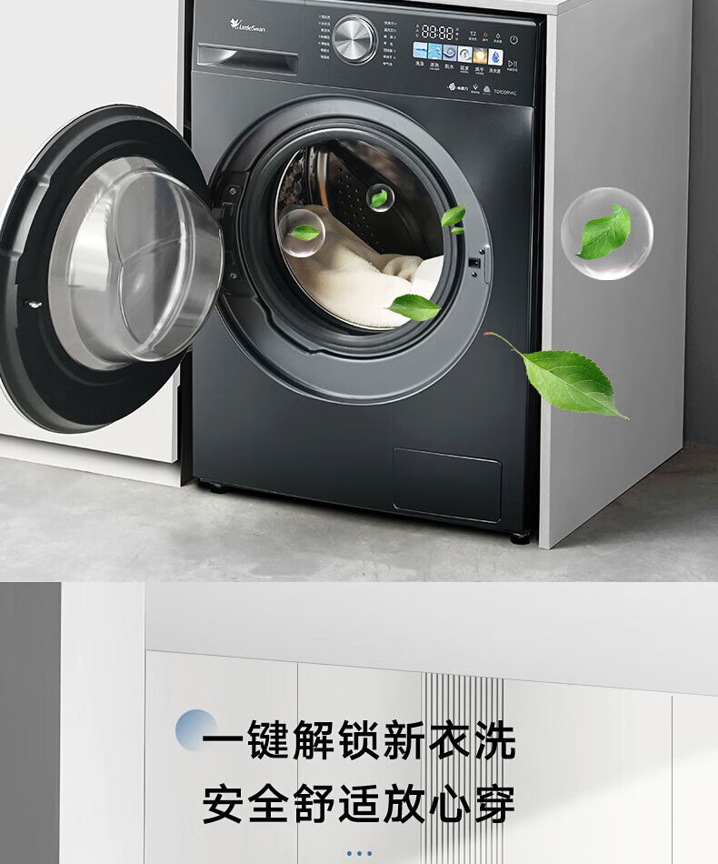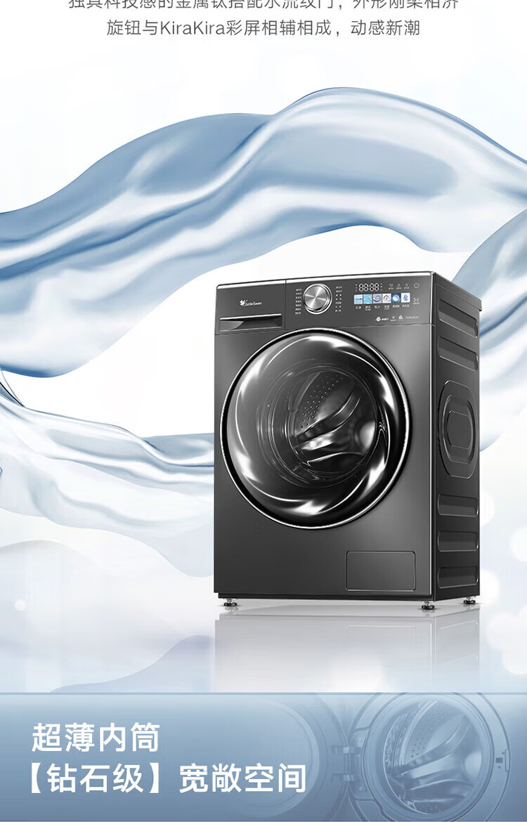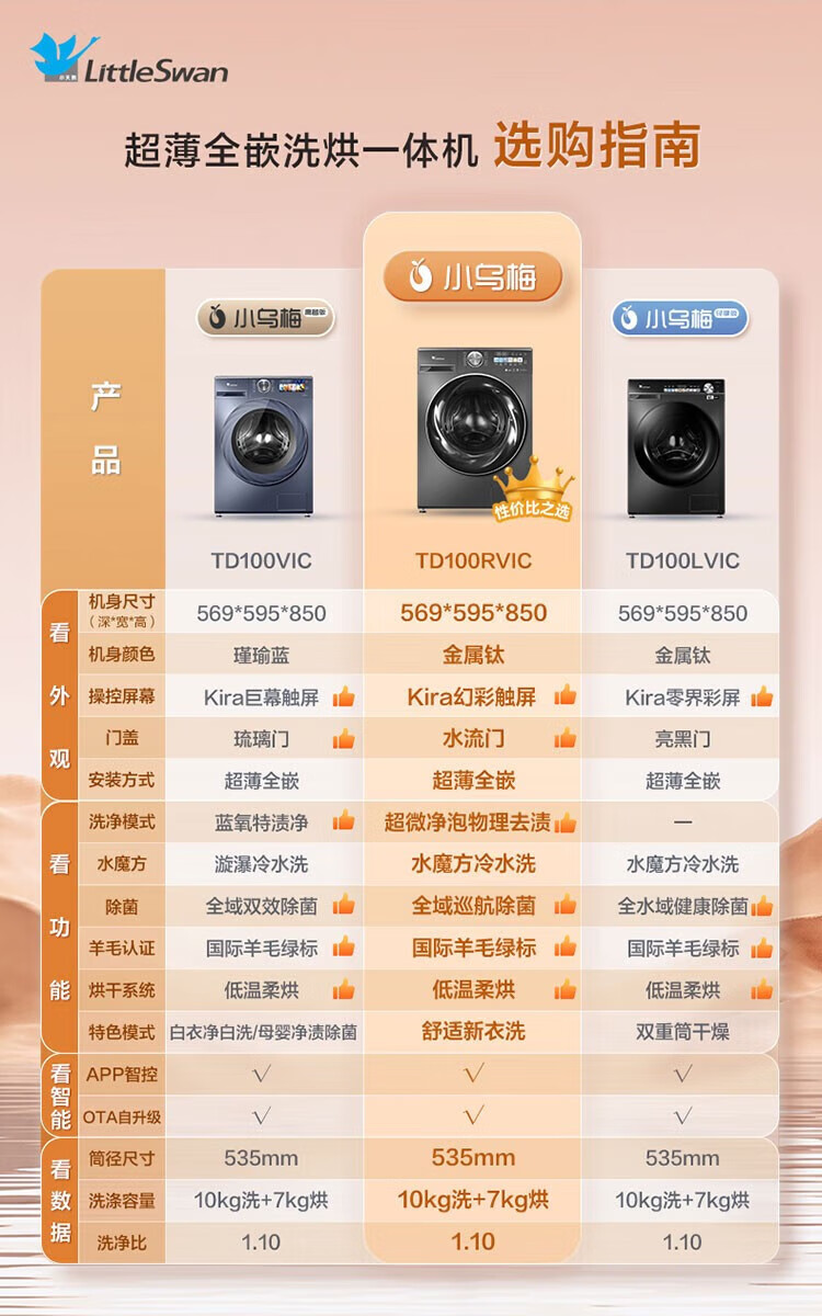 小天鹅(LittleSwan)滚筒洗衣机全自动_小乌梅2.0/小乌梅3.0_10公斤滚筒单洗/带烘干洗烘一体机_洗衣机_TD100RVIC带烘干低温柔烘超微净泡
