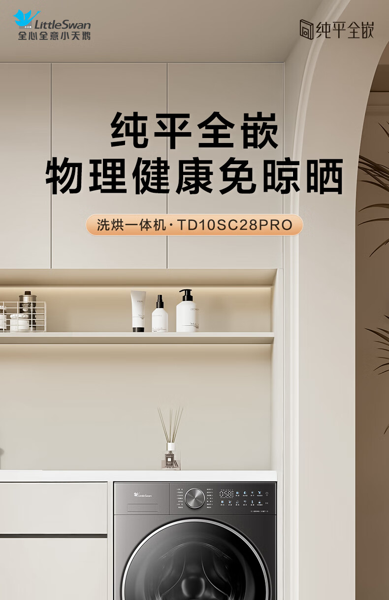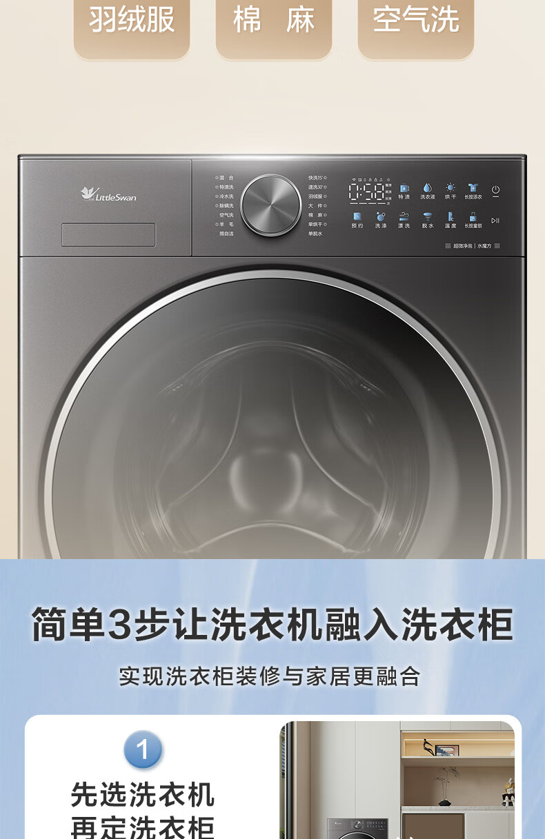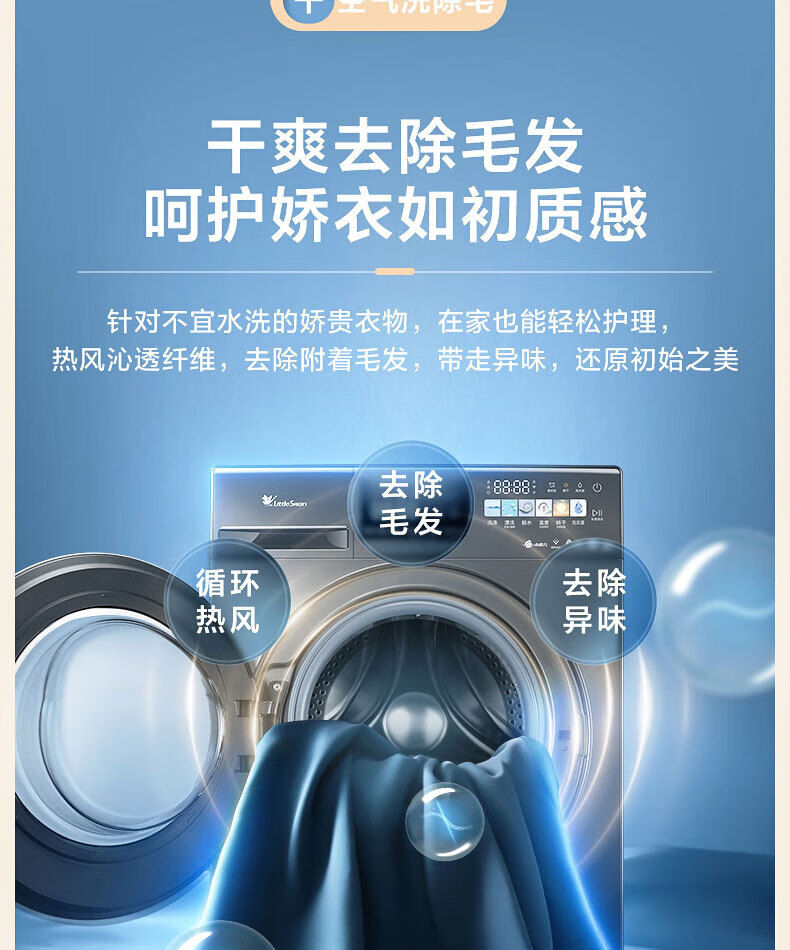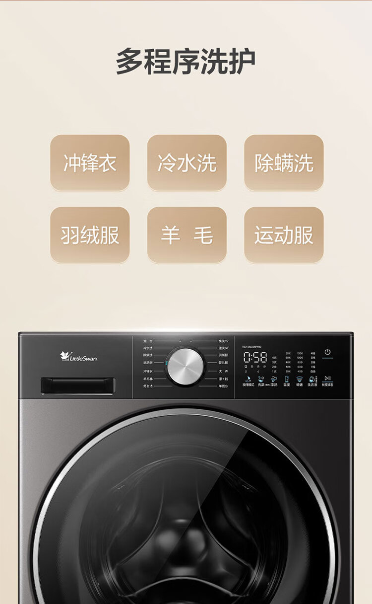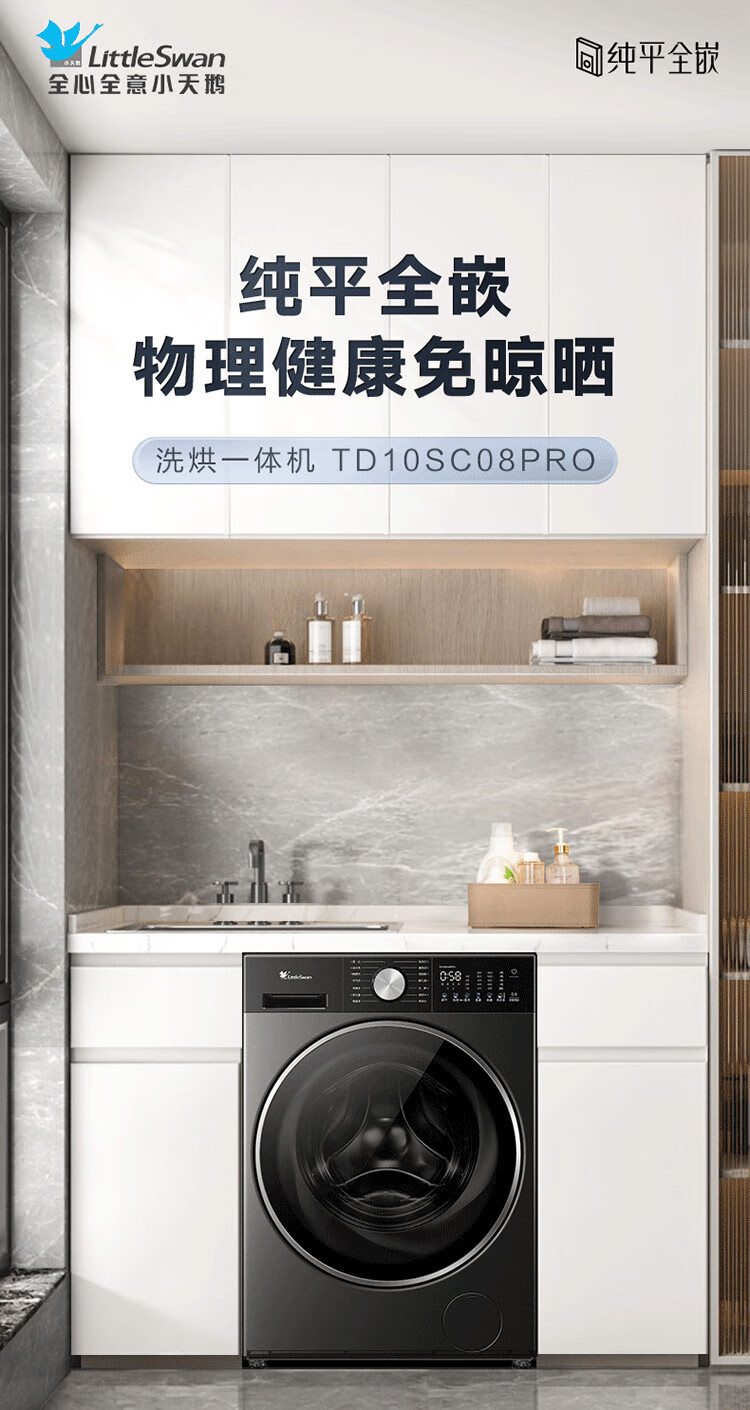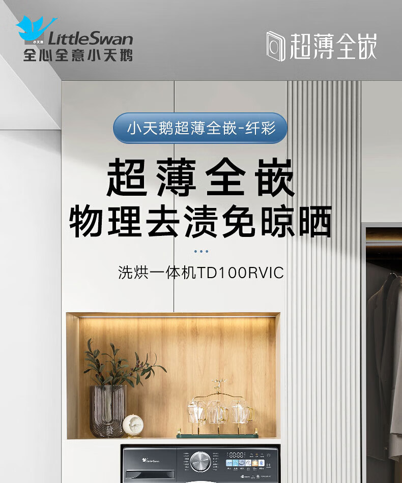 小天鹅(LittleSwan)滚筒洗衣机全自动_小乌梅2.0/小乌梅3.0_10公斤滚筒单洗/带烘干洗烘一体机_洗衣机_TD100RVIC带烘干低温柔烘超微净泡