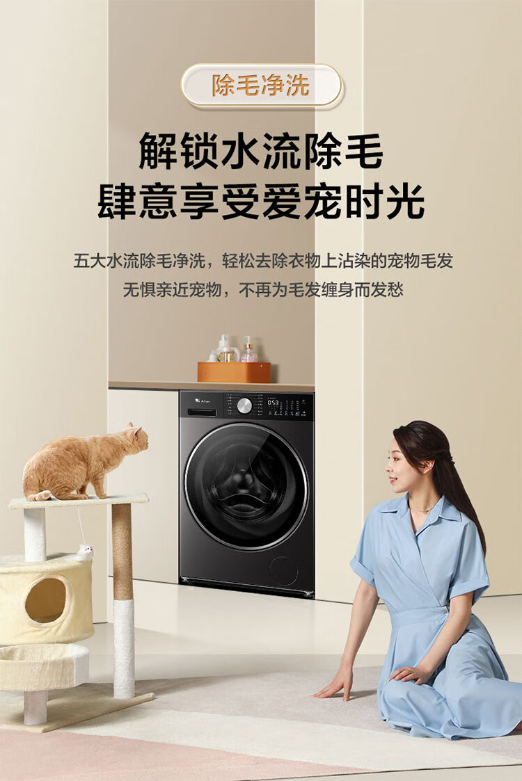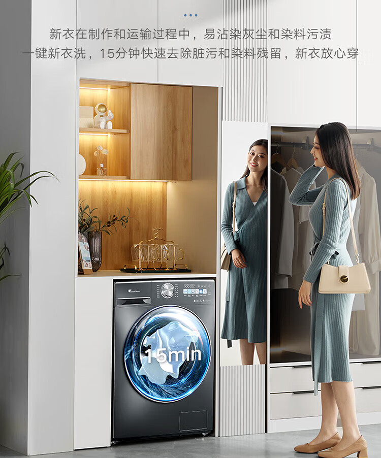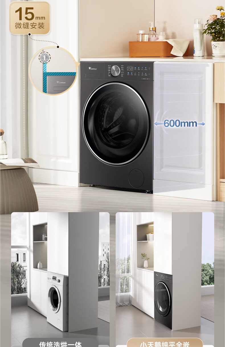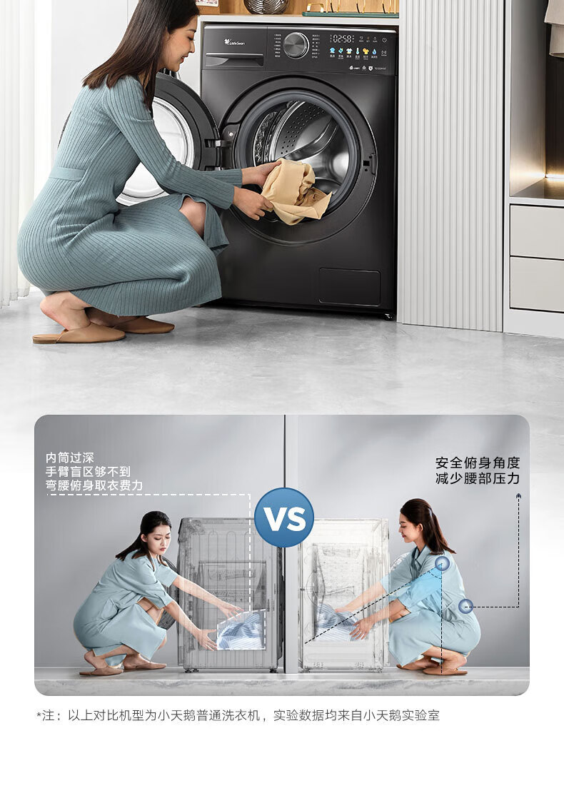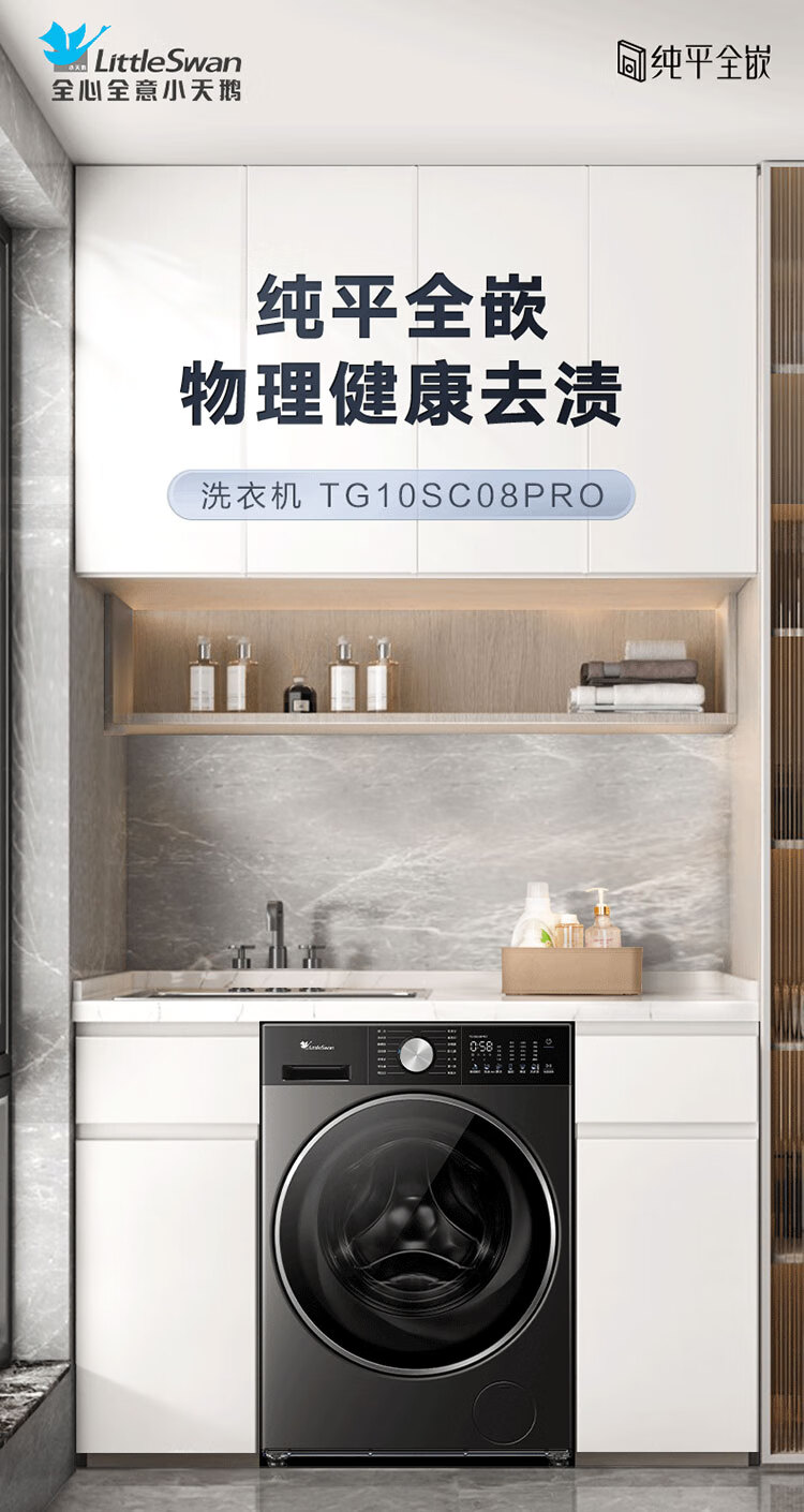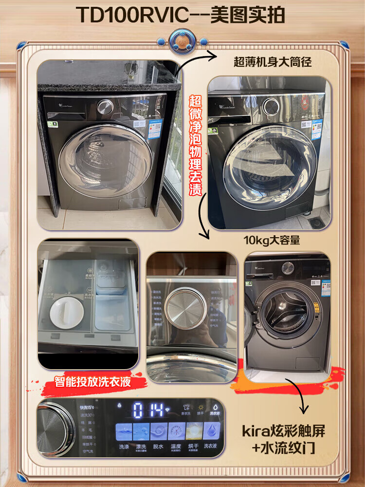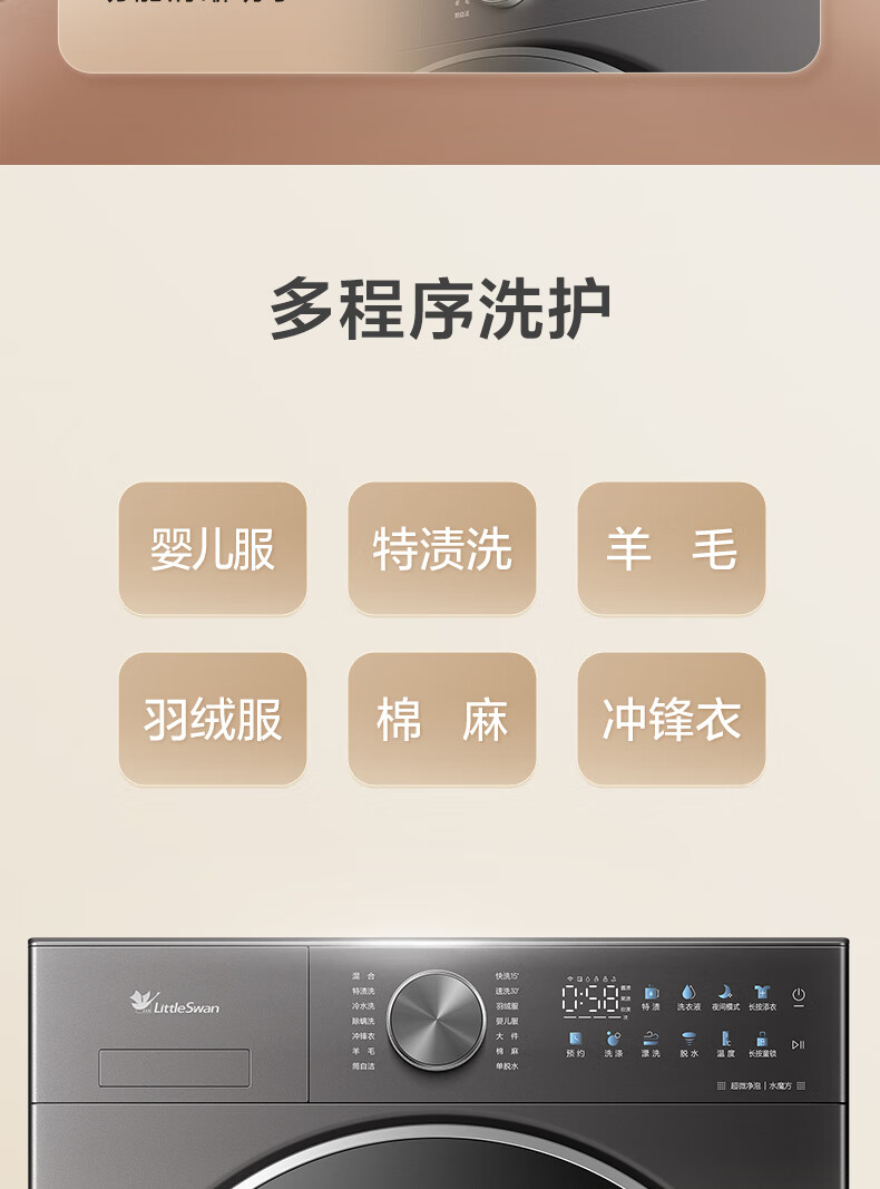 小天鹅(LittleSwan)滚筒洗衣机全自动_小乌梅2.0/小乌梅3.0_10公斤滚筒单洗/带烘干洗烘一体机_洗衣机_TD100RVIC带烘干低温柔烘超微净泡