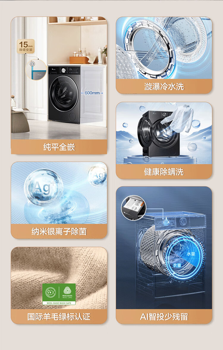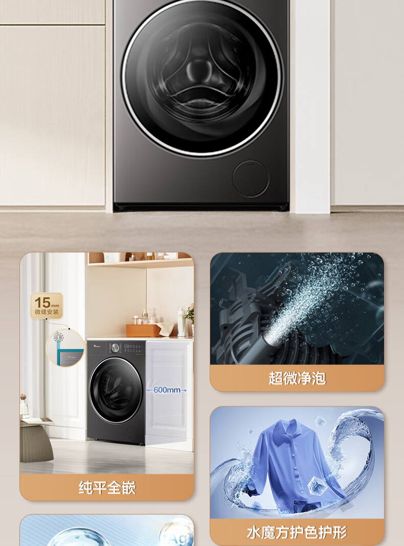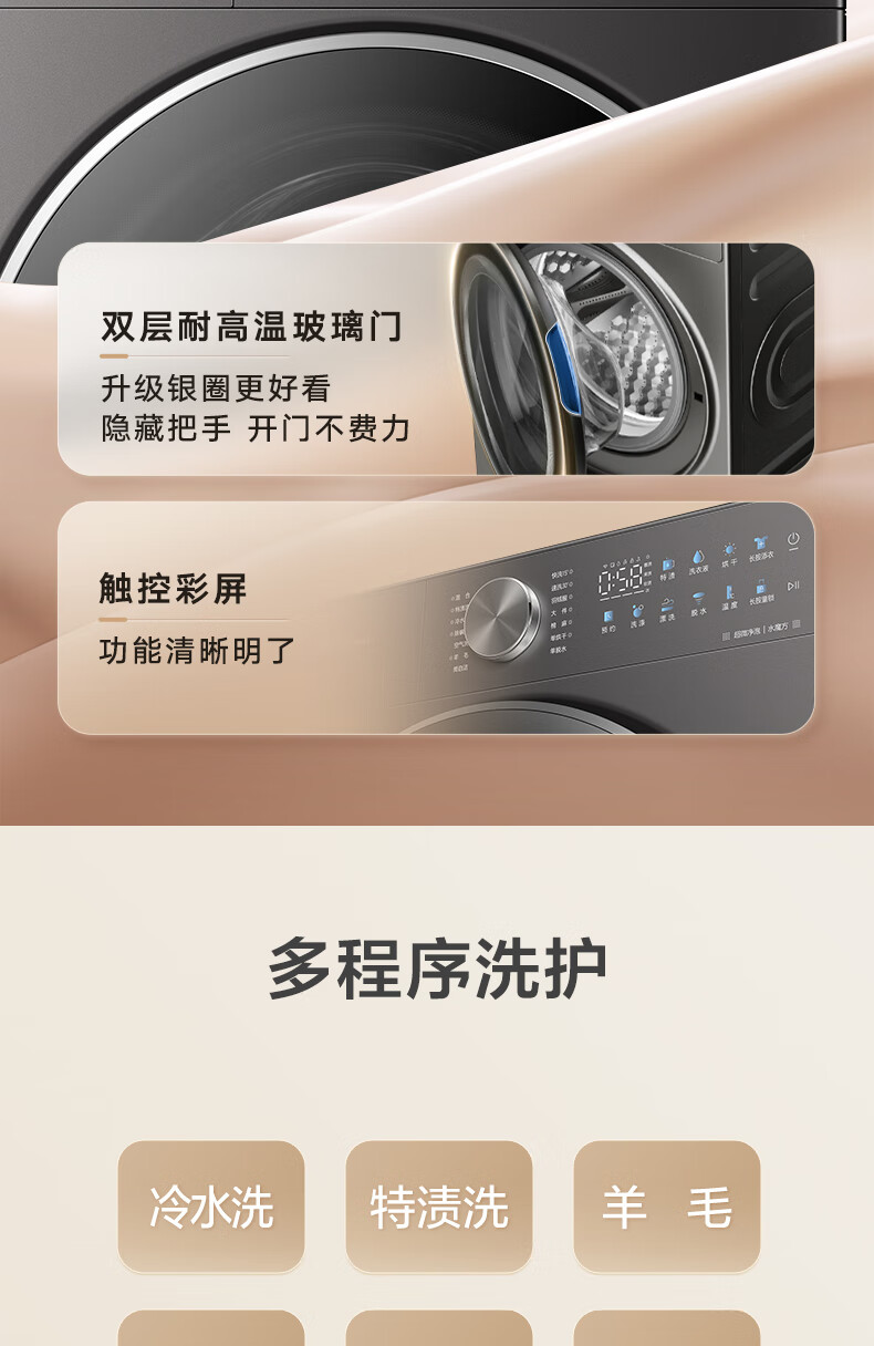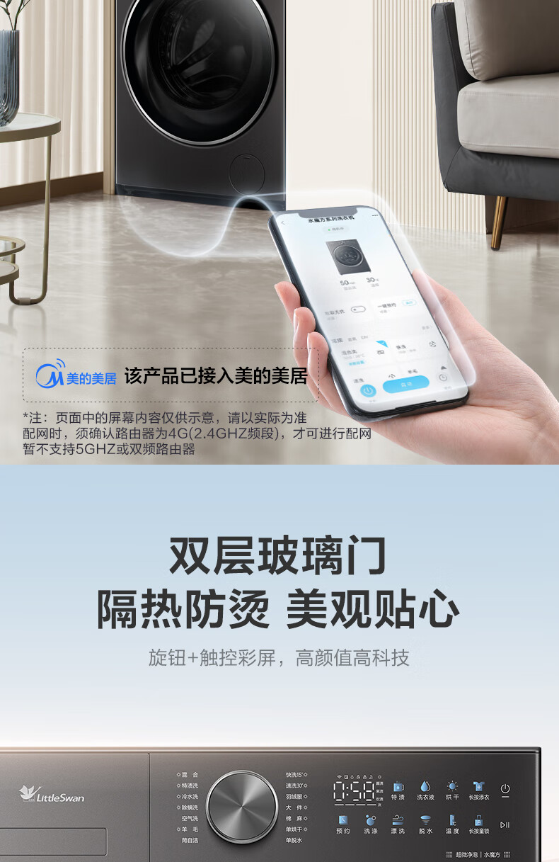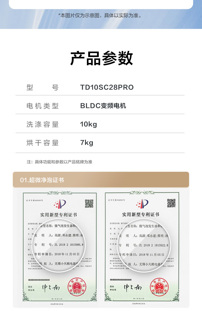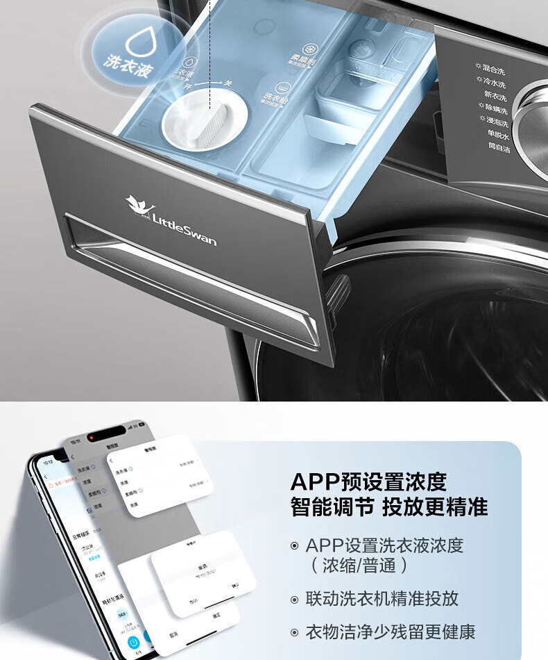 小天鹅(LittleSwan)滚筒洗衣机全自动_小乌梅2.0/小乌梅3.0_10公斤滚筒单洗/带烘干洗烘一体机_洗衣机_TD100RVIC带烘干低温柔烘超微净泡