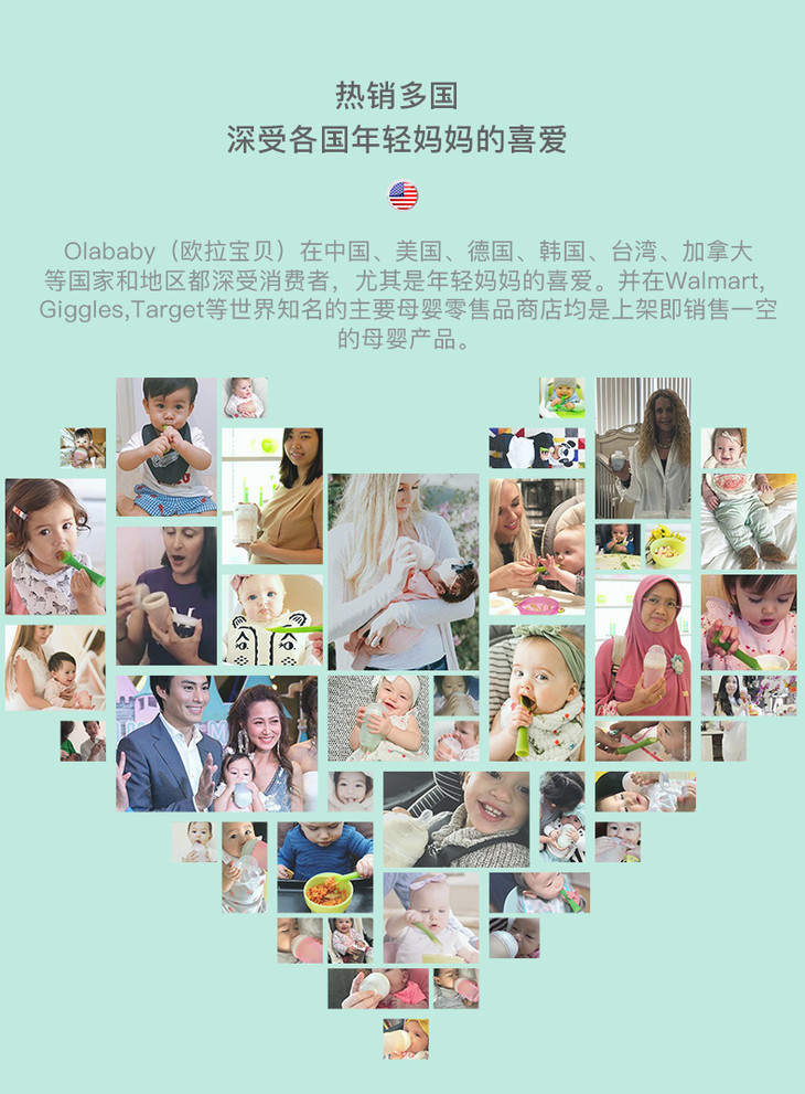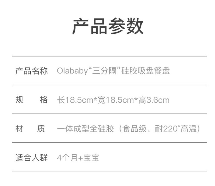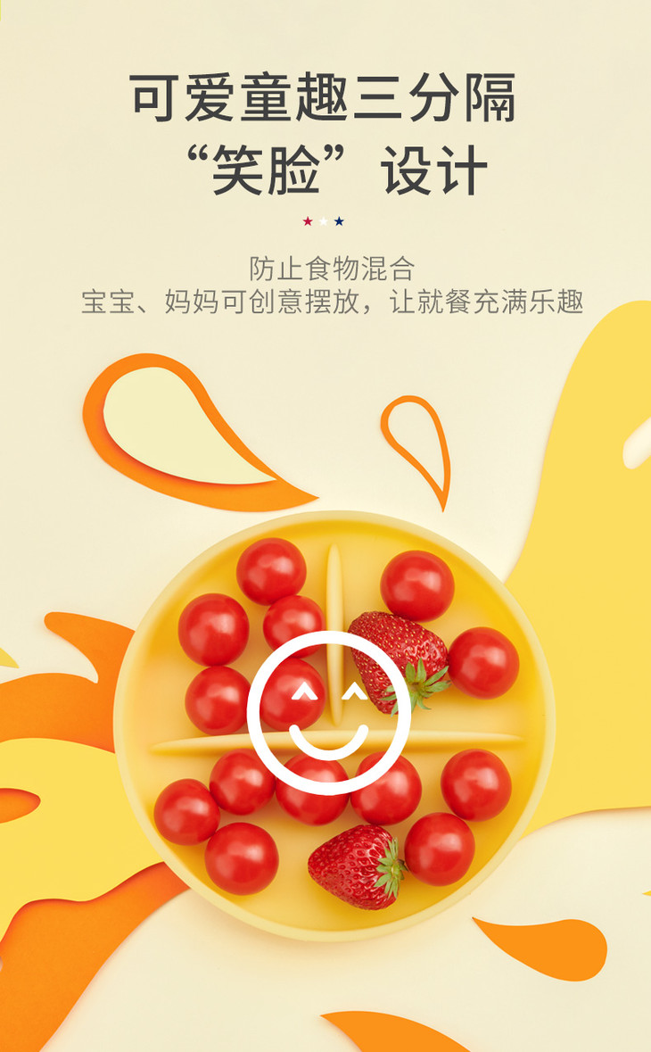 美国欧拉宝贝/OLABABY三分格宝宝笑脸硅胶餐盘吸盘式辅食碗