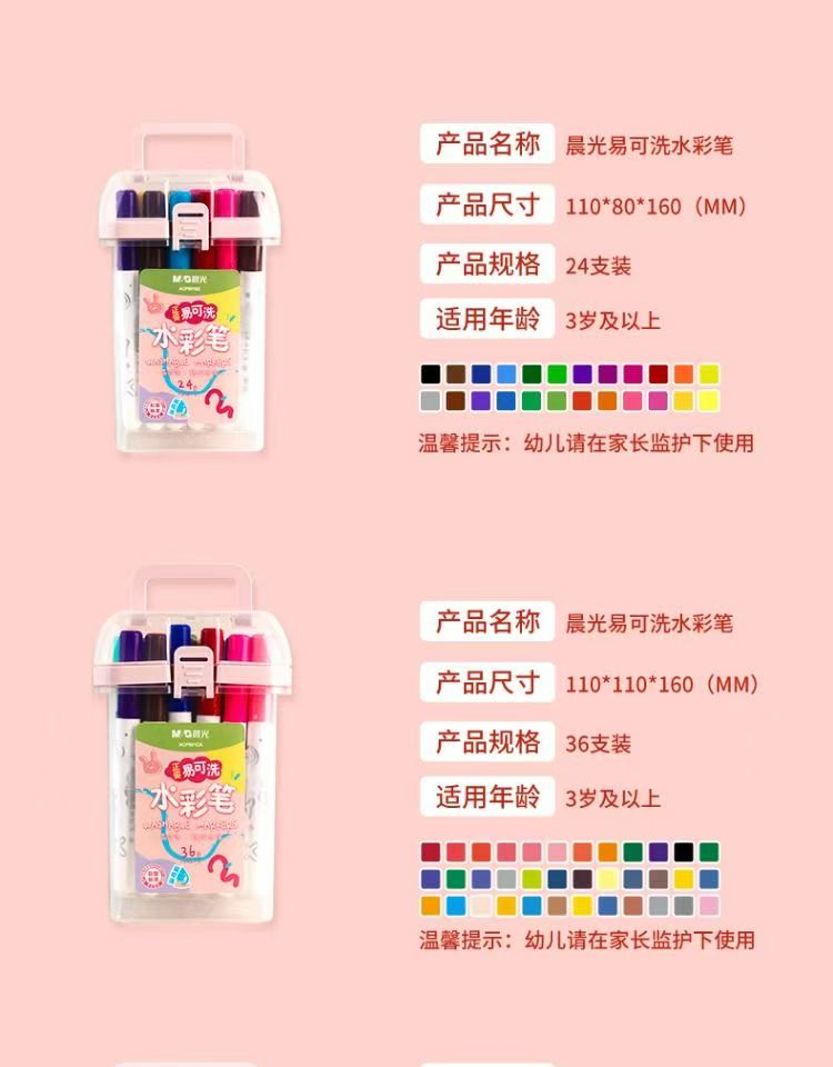 晨光正姿可水洗水彩笔儿童幼儿园小学生24/36/48色