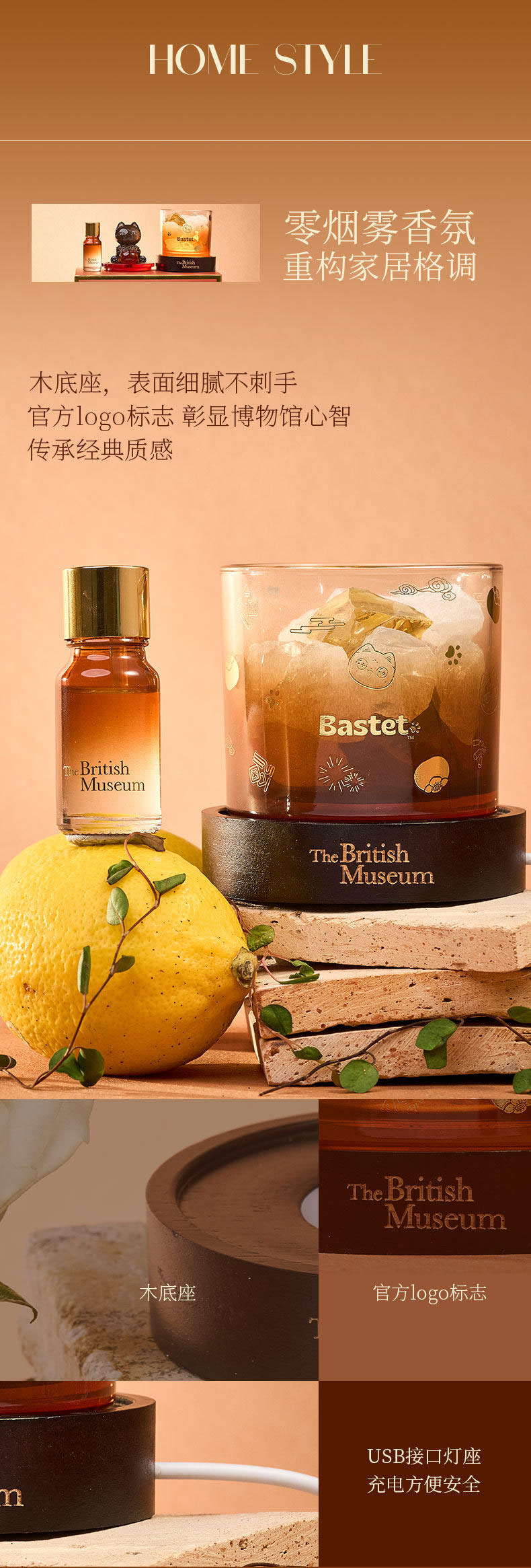 大英博物馆巴斯特系列柿柿如意晶石香薰灯礼盒