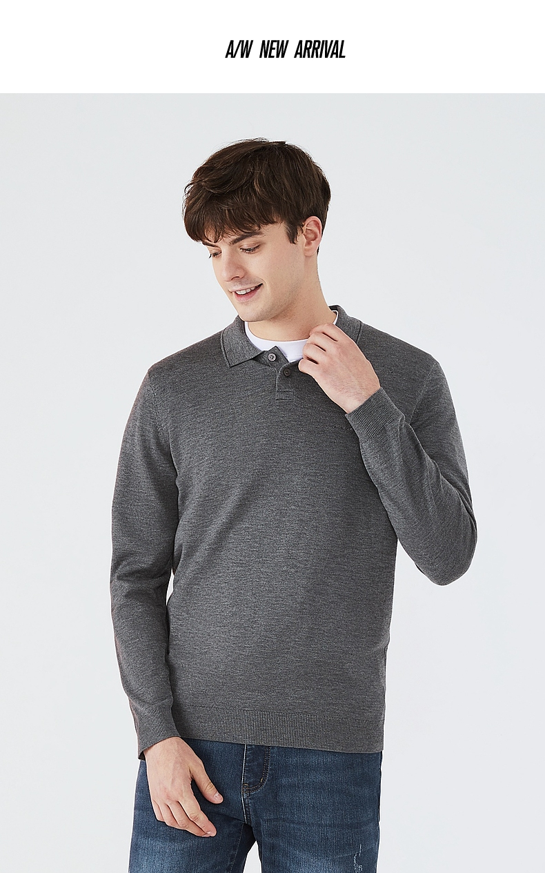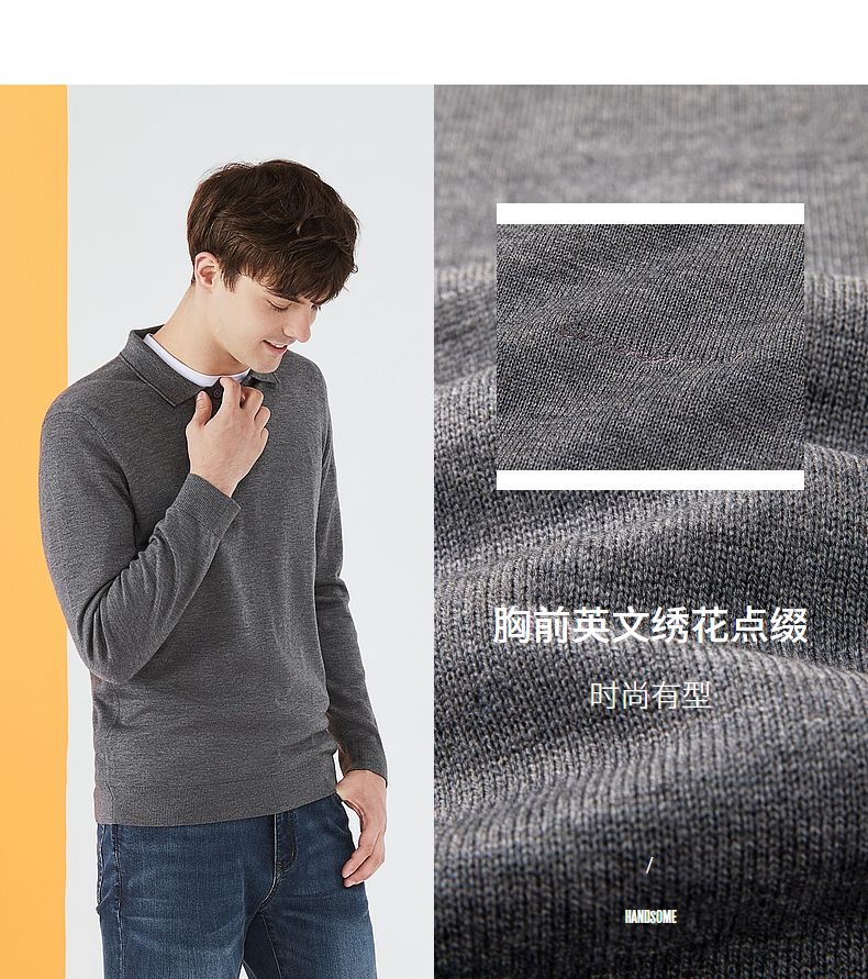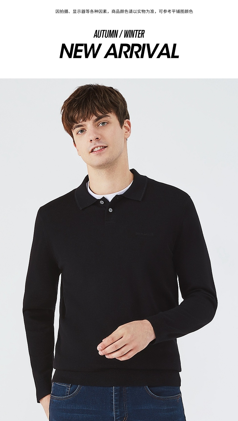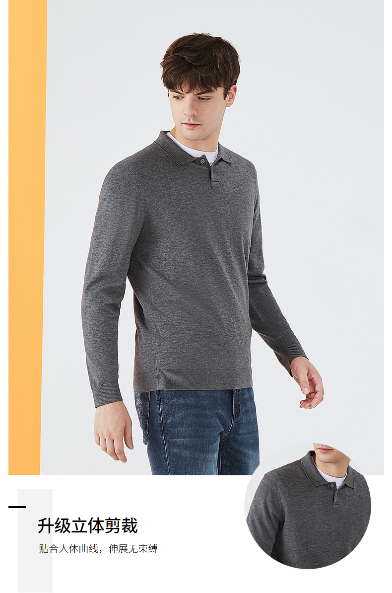 【限时秒杀】柒牌毛衣男时尚休闲百搭弹力翻领字母绣花含羊毛男士长袖针织毛衫123Y70310