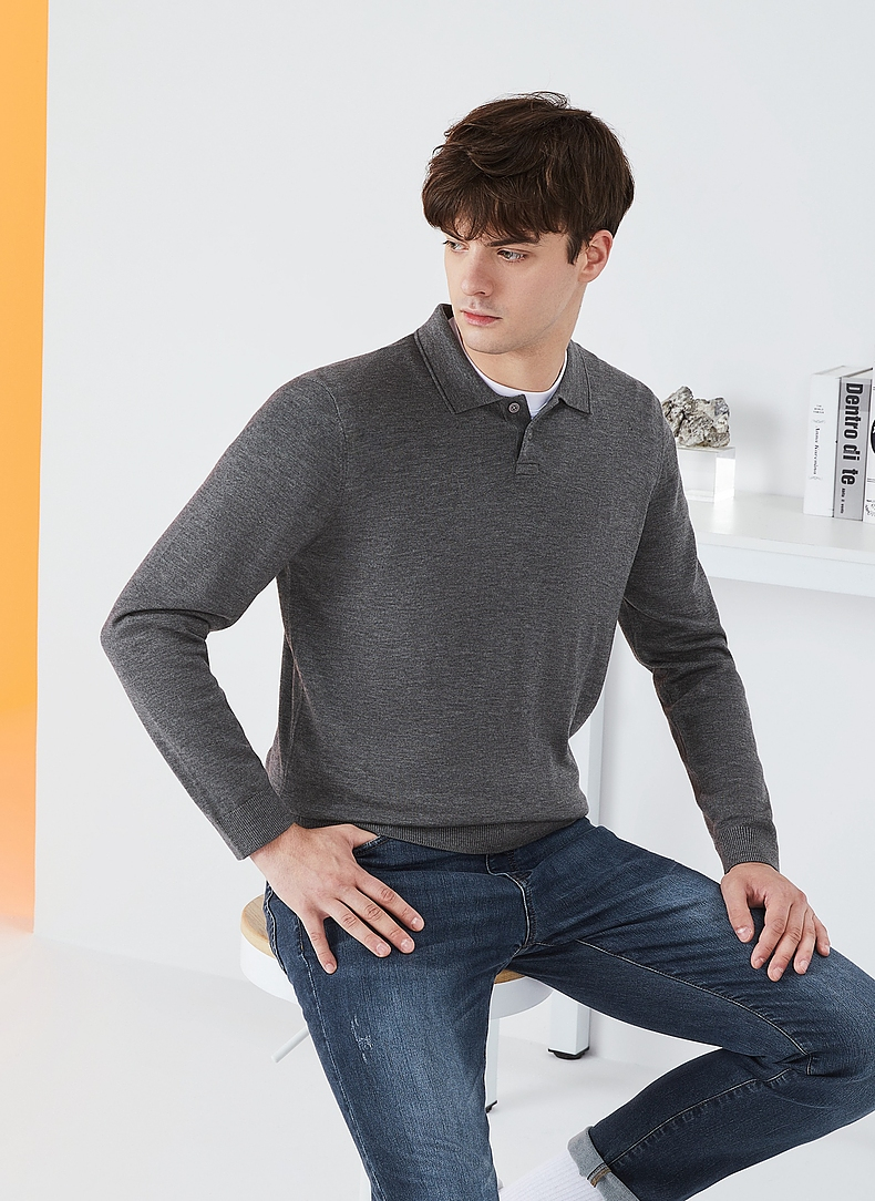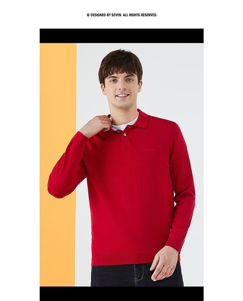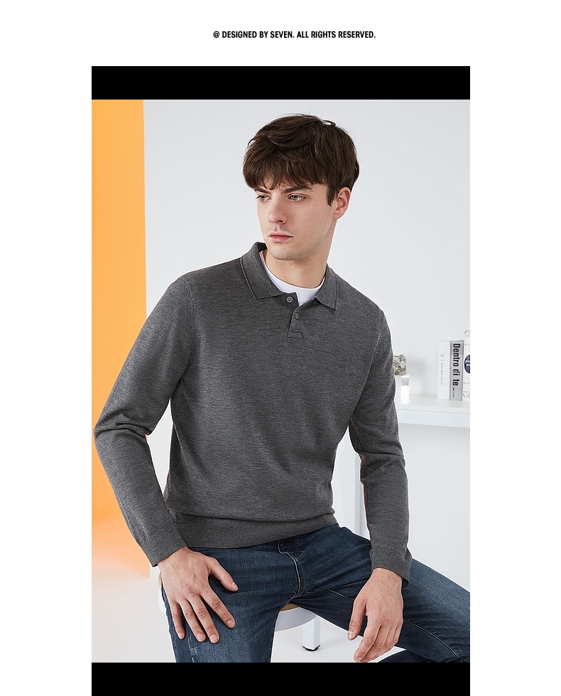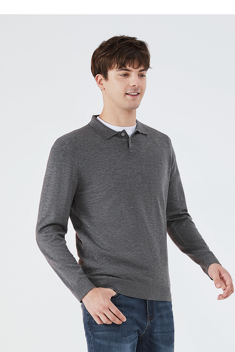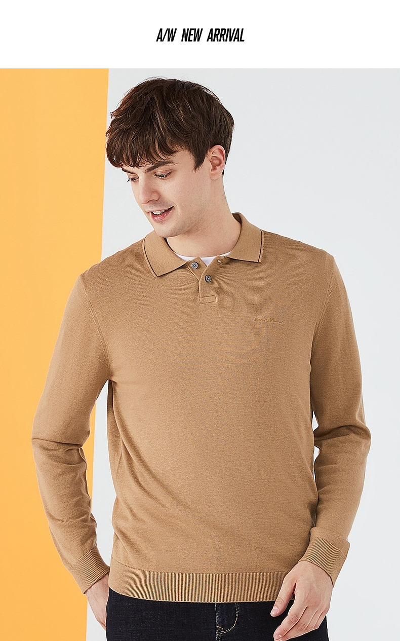 【限时秒杀】柒牌毛衣男时尚休闲百搭弹力翻领字母绣花含羊毛男士长袖针织毛衫123Y70310