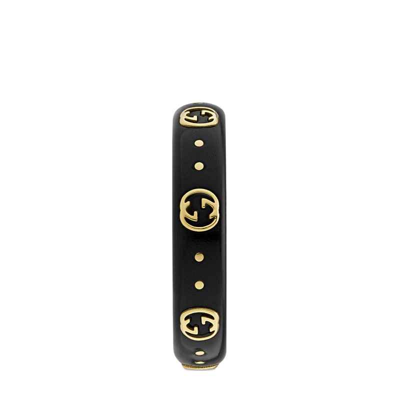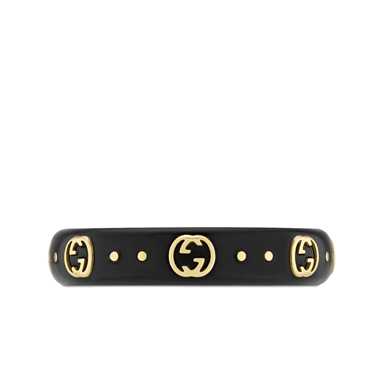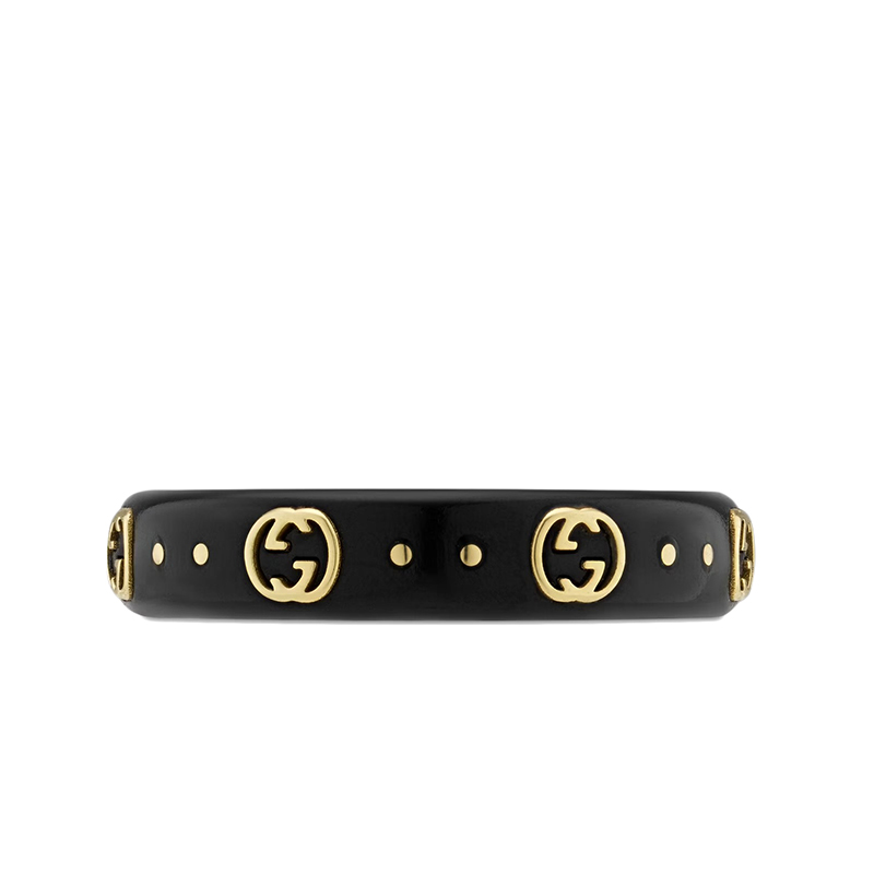 【包税】GUCCI/古驰 21新款Icon系列 男女通用18K金黄金双G黑色合成刚玉戒指指环679262I0H118029