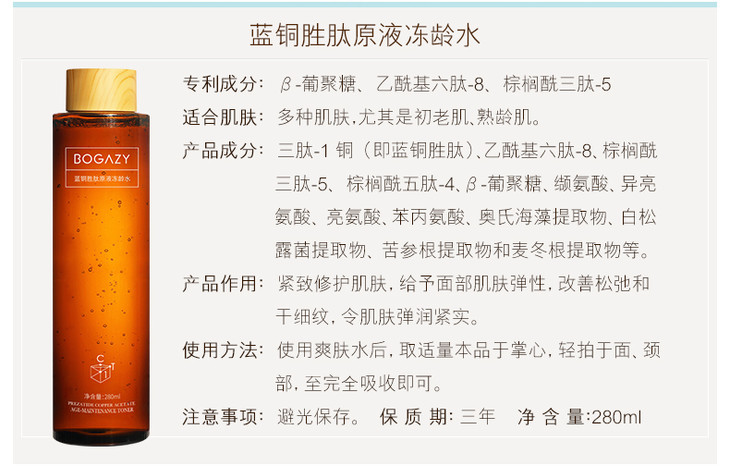 【一般贸易】柏卡姿 蓝铜胜肽原液冻龄水-280ml(2瓶)