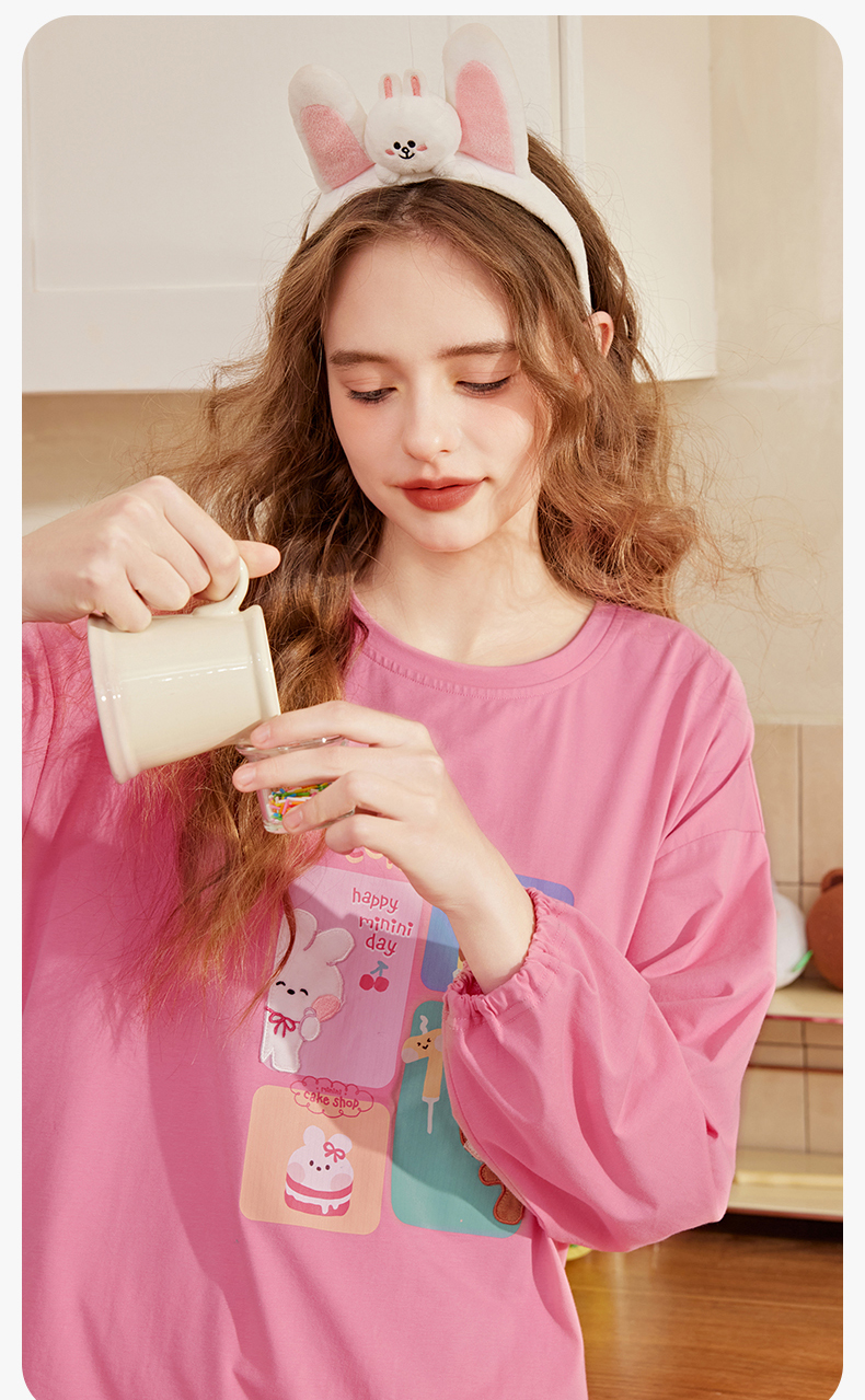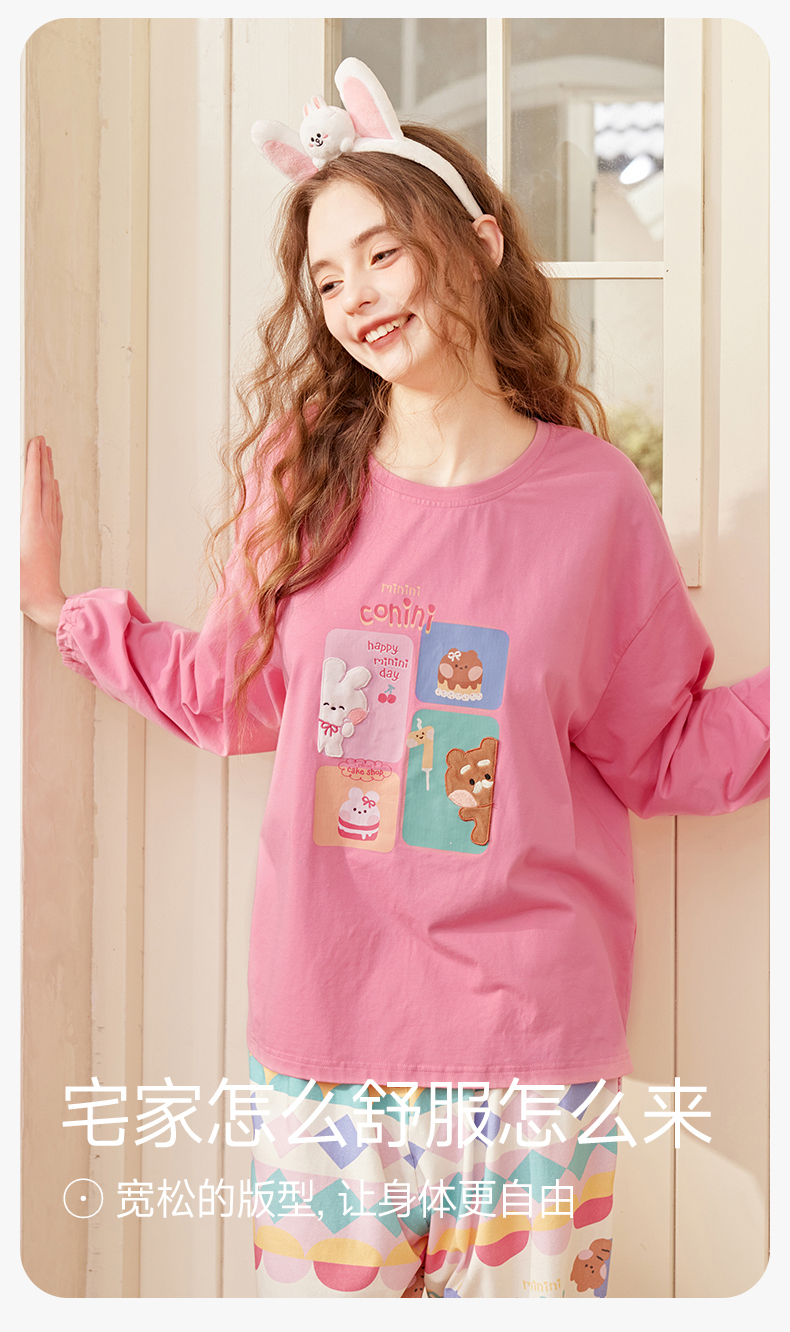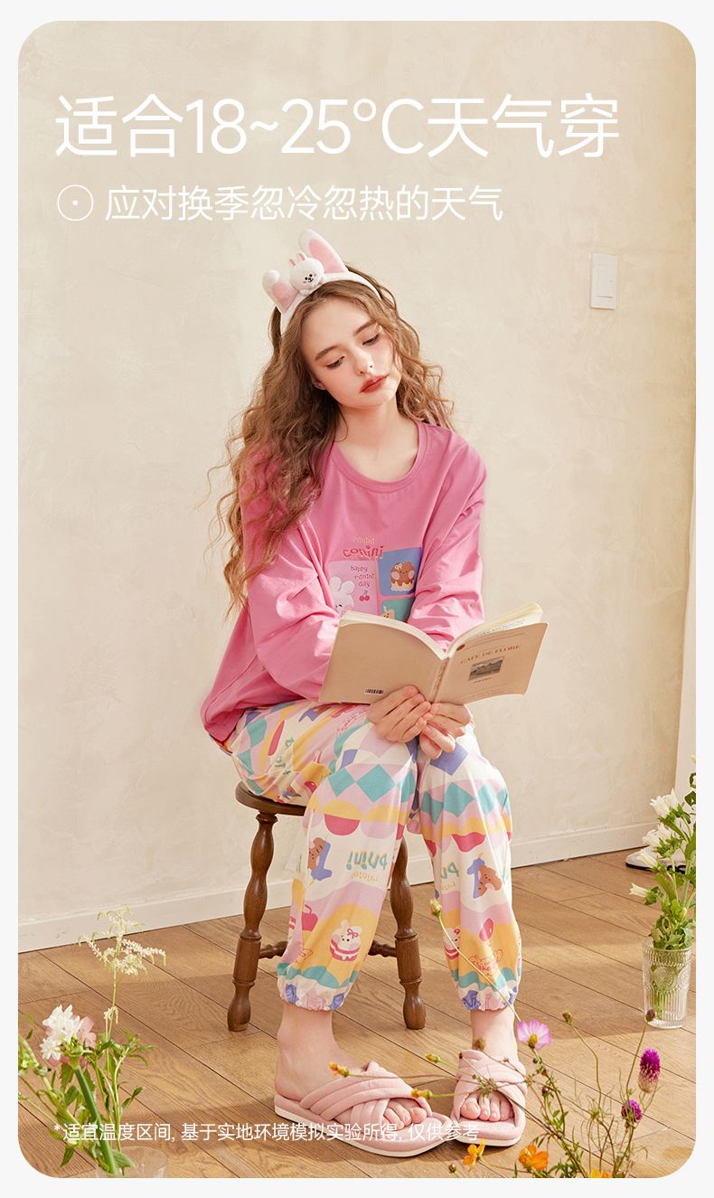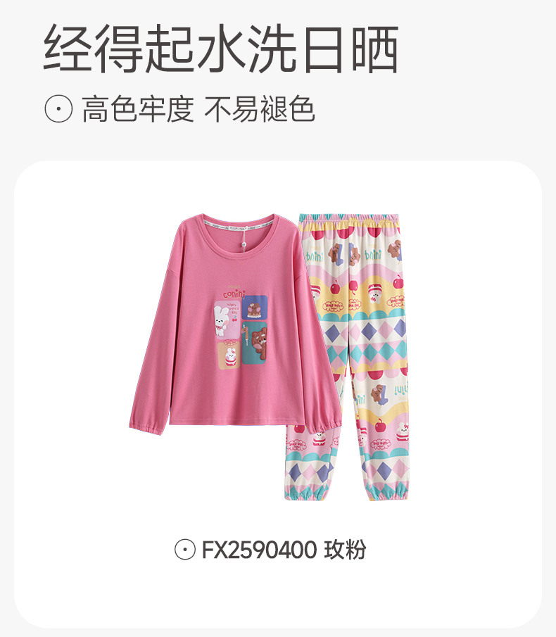 芬腾布朗熊睡衣女纯棉春秋季圆领套头长袖可爱卡通全棉家居服套装