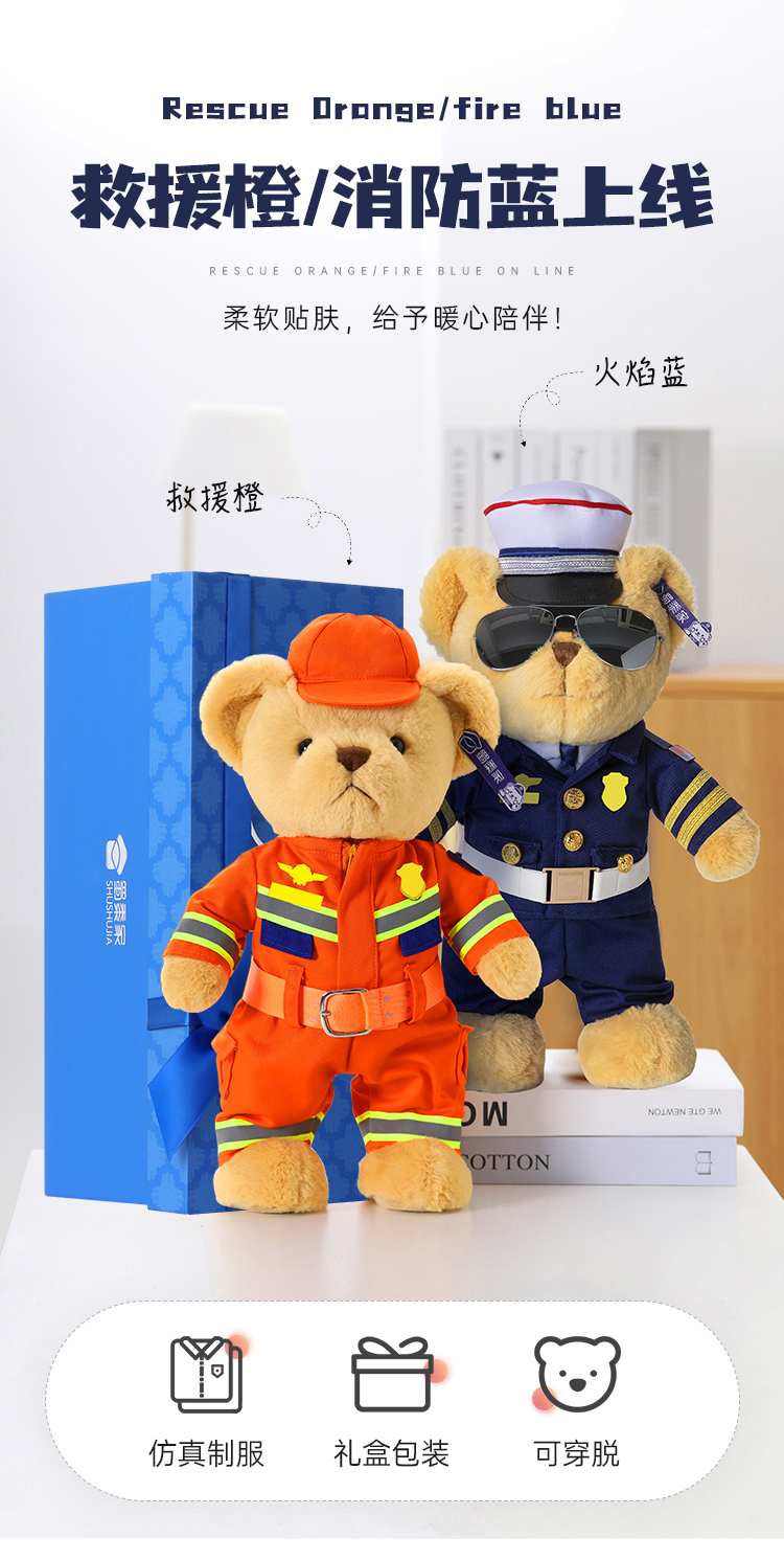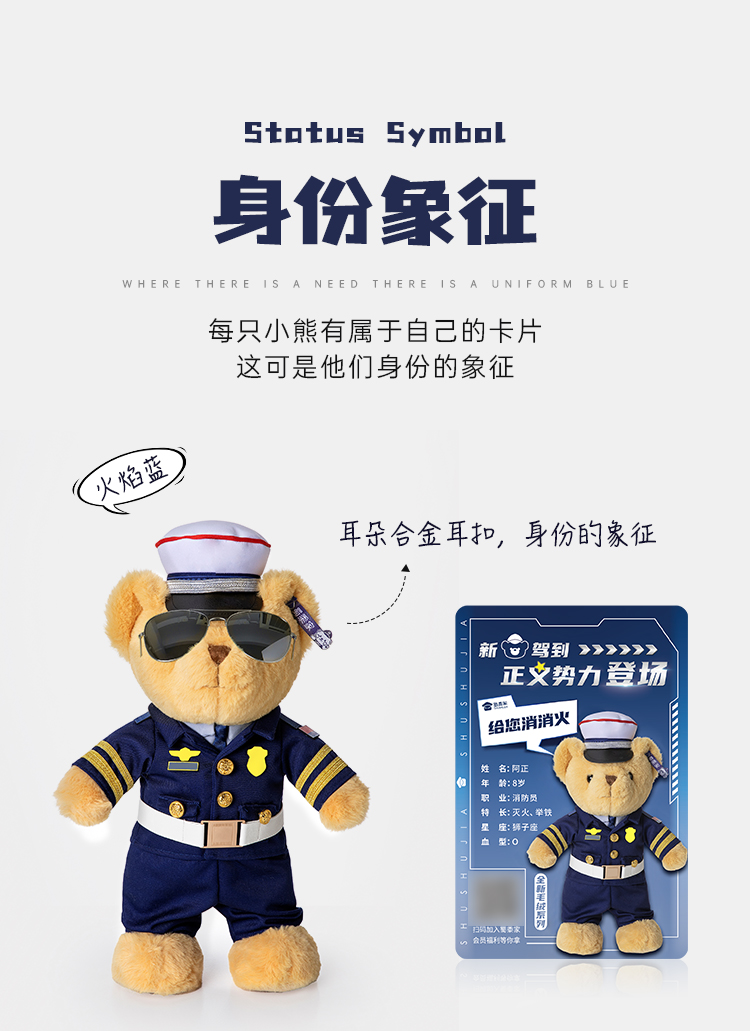【实付满199送钥匙扣】【站姿消防熊阿正】消防小熊玩偶儿童毛绒玩具公仔布娃娃送礼礼品礼物