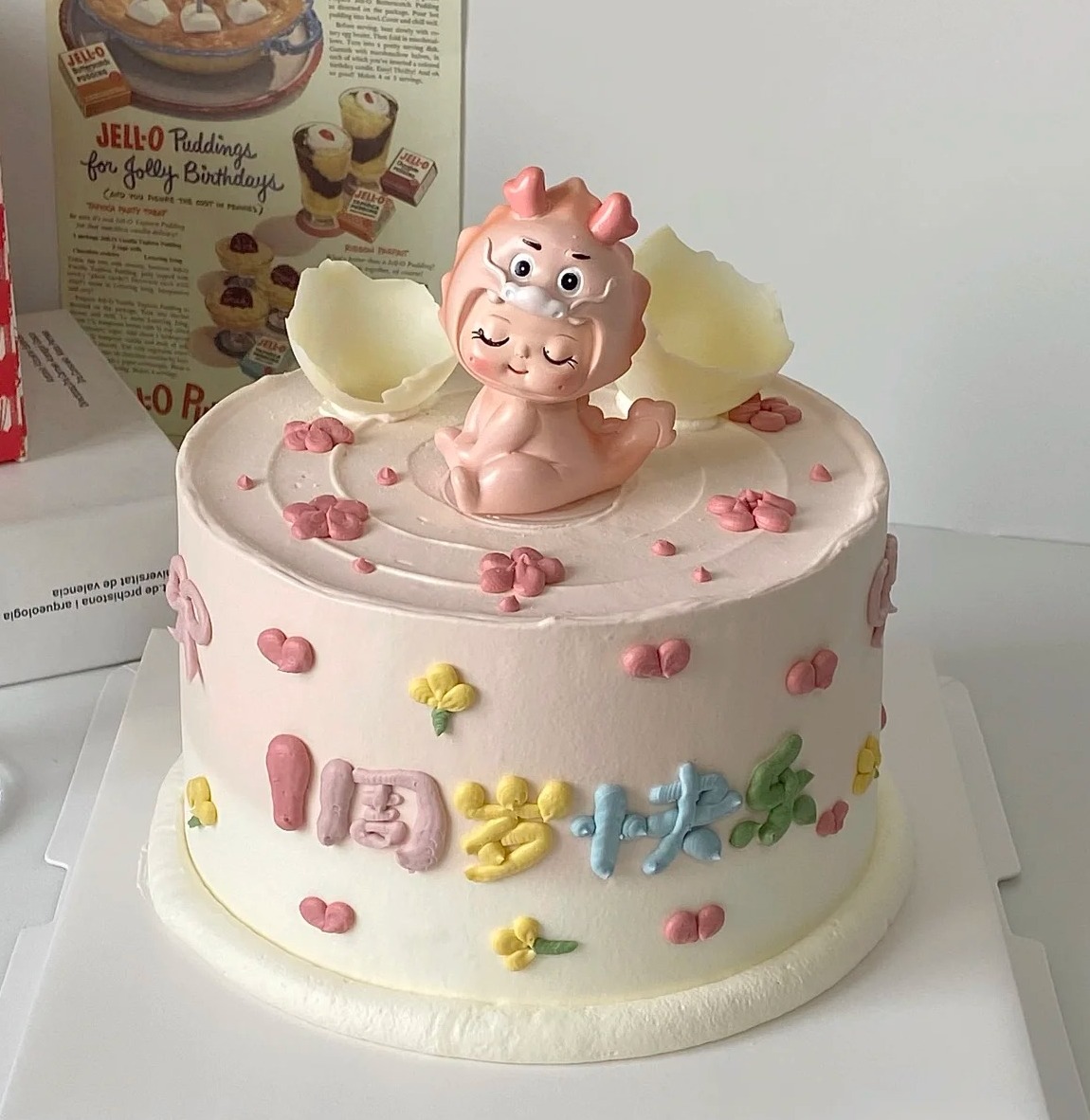 【优品系列】【破壳粉色龙龙】送女孩、周岁蛋糕