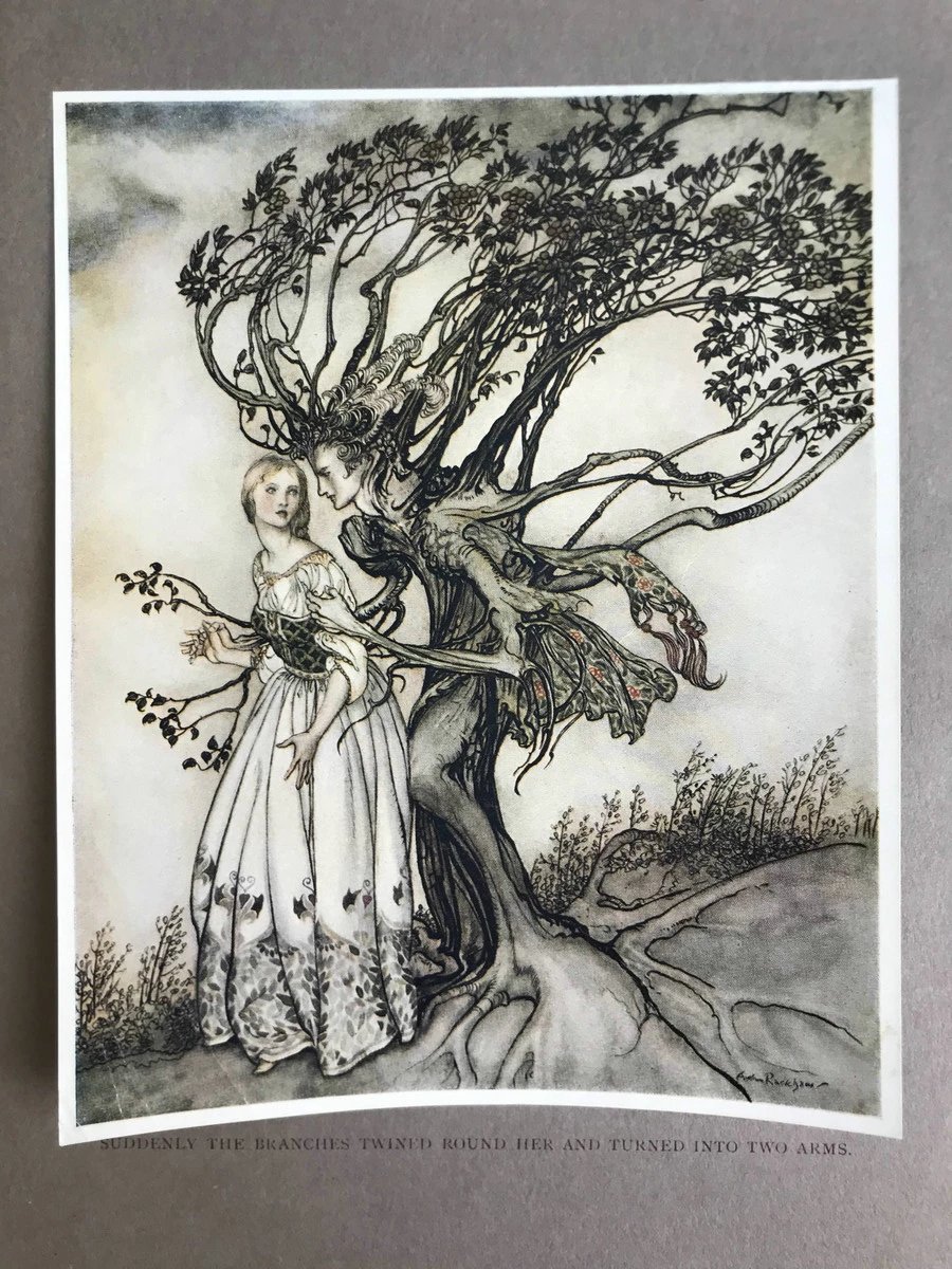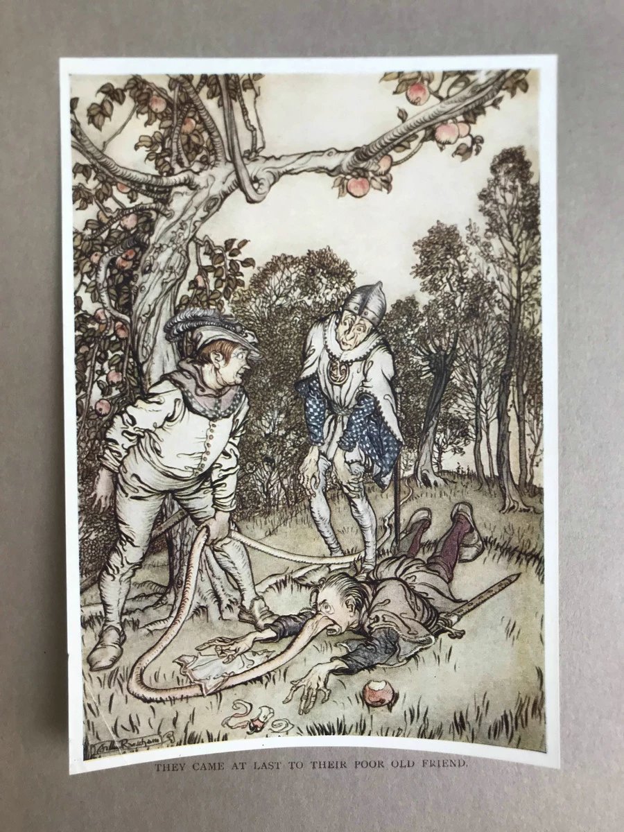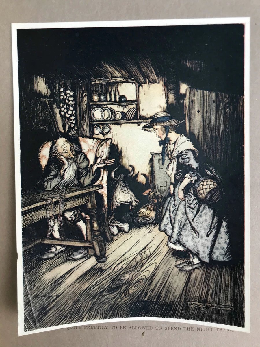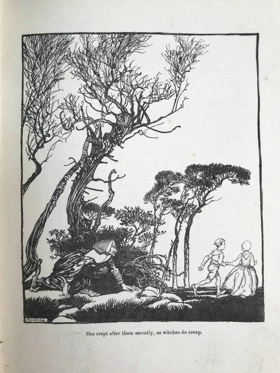 1917年 小弟弟和小姐姐及其他格林童话集 鬼才拉克姆13幅彩色手工贴图与大量黑白插图 布面精装16开
