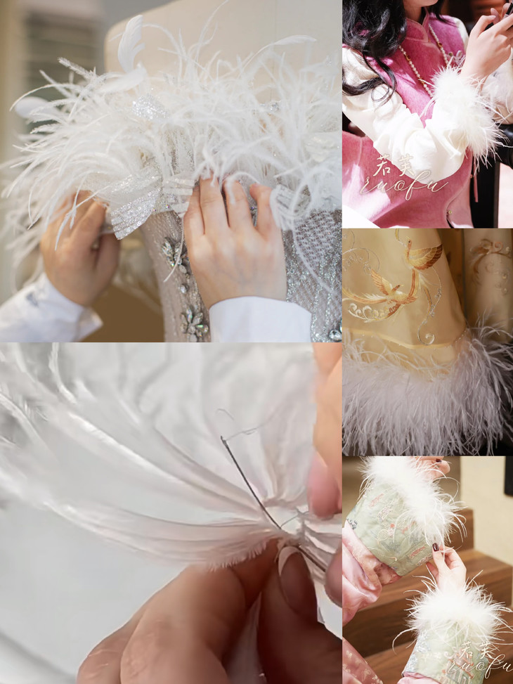 ✅毛毛装饰 领口,袖口,下摆,裙摆的毛毛 给人温暖的感受,华丽感十足,仙气飘飘 冬日,有哪个女生不喜欢毛茸茸的呢 全手工拼接毛毛,非常显贵💰但又不夸张 举手投足间,让人赏心悦目,仙气飘飘 大家闺秀无疑!!