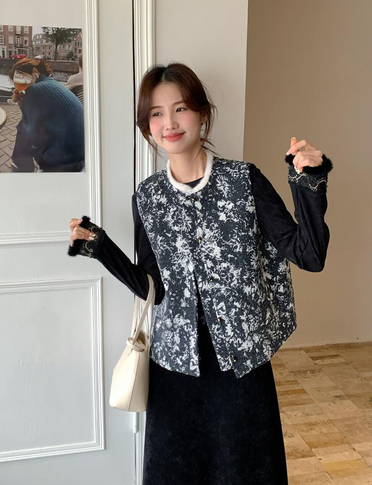 水墨画提花毛毛马甲AUC123004:图片色