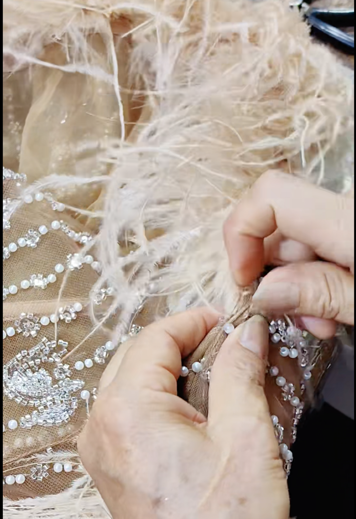马甲真的是重工制作啊❗️ 整个袖圈门襟下摆的镶边,就足足2米多 制作非常的耗时,面料全是定制的提花图案和布底 排期很久,数量极少❗️ 更何况还要手工盘扣,手工缝制毛条 每件衣服都耗时至少8小时的二次工艺时间,更不要说手工缝毛条,门襟镶边,全部是功夫活,没有上十年的老师傅也做不了这样的精品 光是毛条都足足两米二的用量,还需要精挑细选长度/蓬松度合适的毛毛用棉线捻成毛条,再进行手工整理缝制,有一段不符合的都要整条报废,非常耗费毛料❗️ 每一款都有独特的手工工艺,每款的盘扣都是精心设计和制作 有的需要手工钉珠来装点,无论是手工的精美程度还是配色设计都很有考究