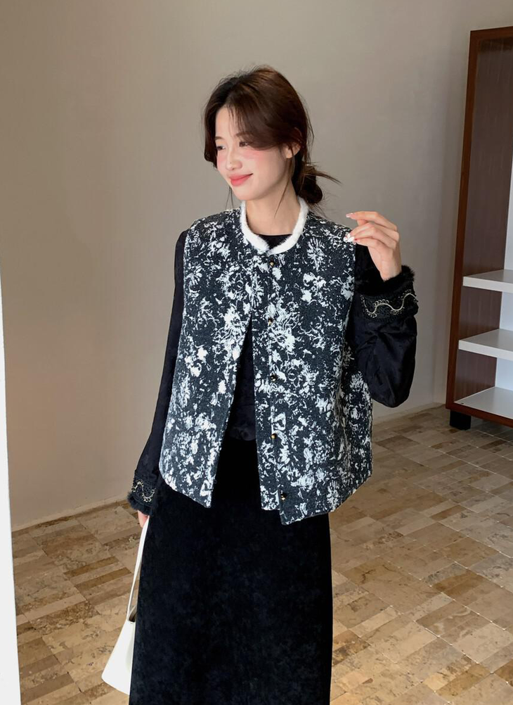 水墨画提花毛毛马甲AUC123004,