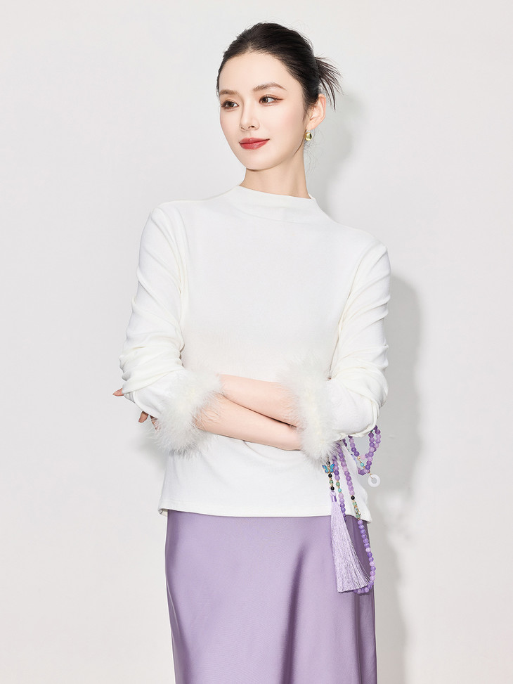 新中式国风高领毛毛袖打底衫ACU091303,