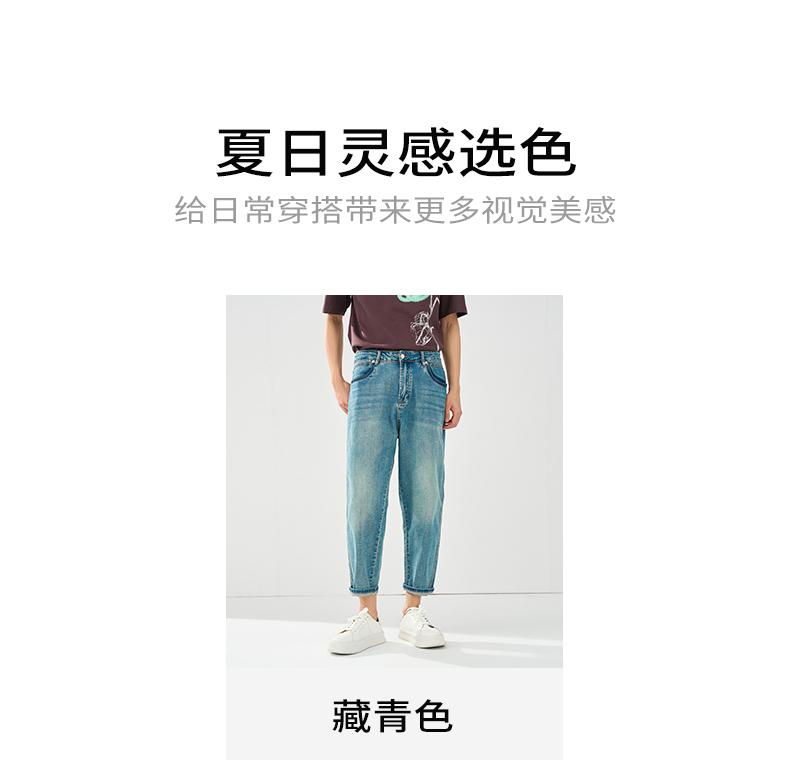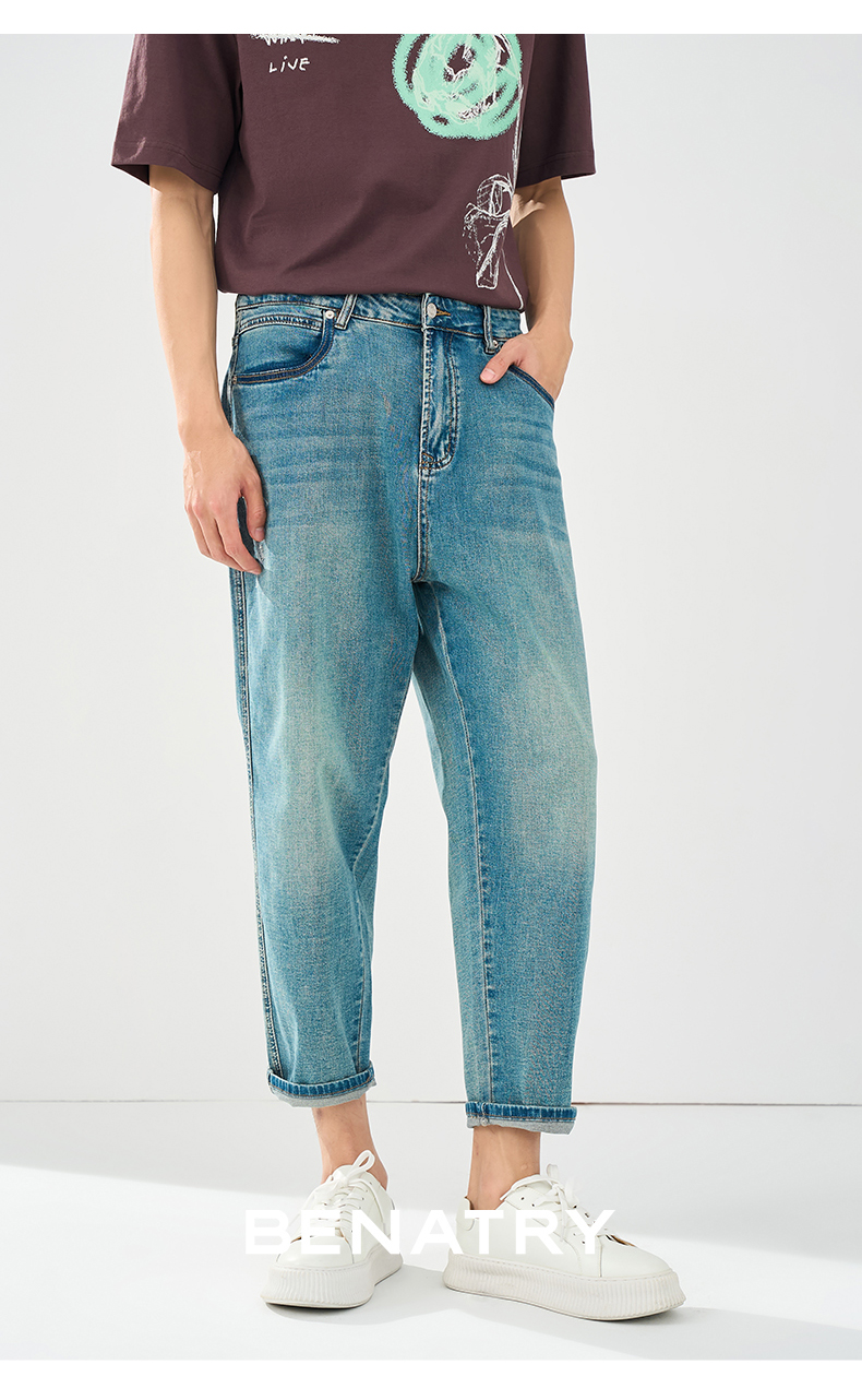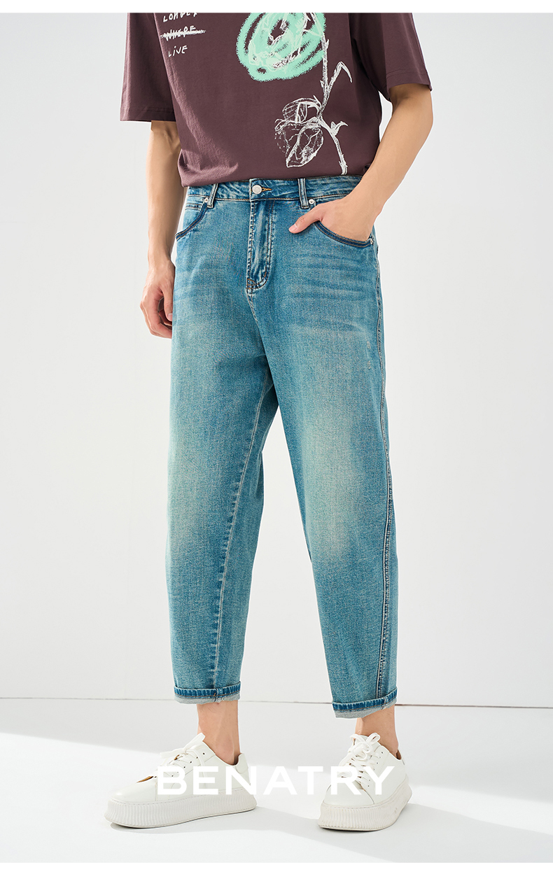 贝纳川春夏季锥形蓝色牛仔裤ECT230003776