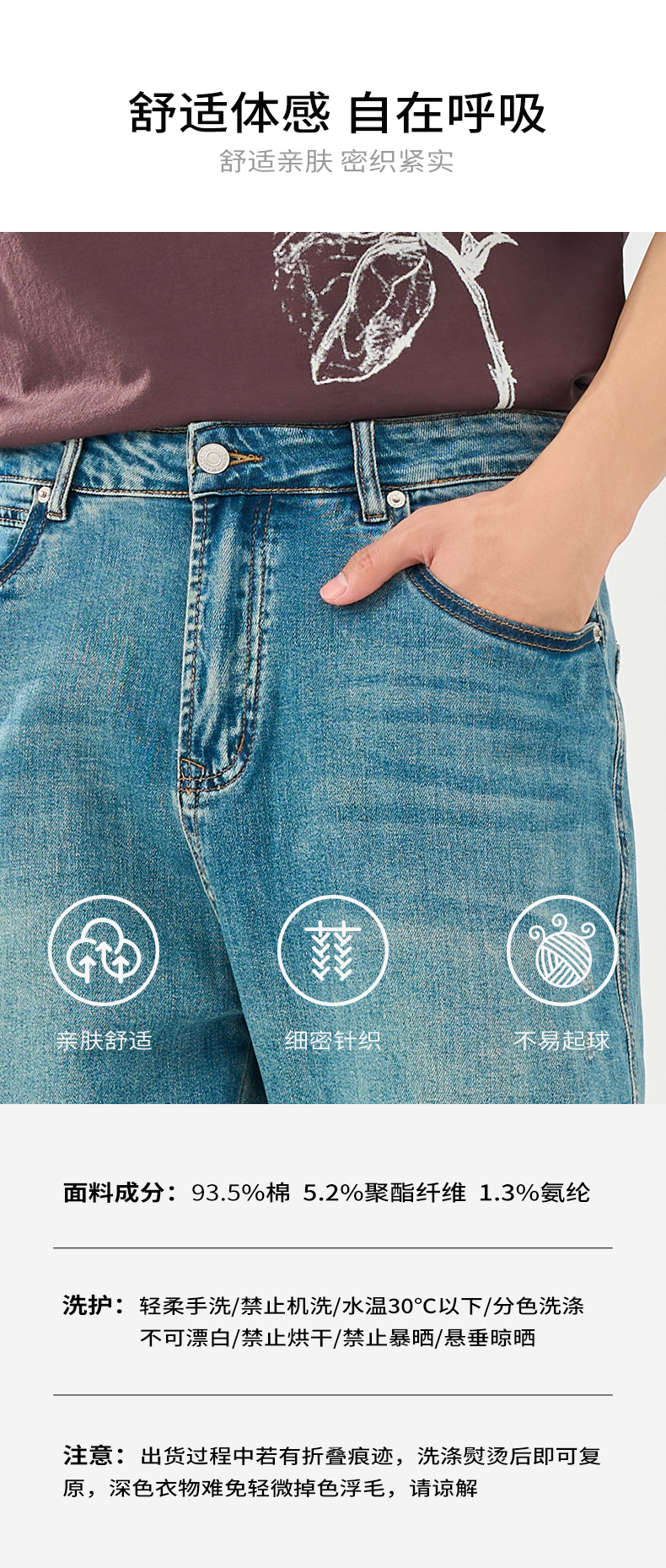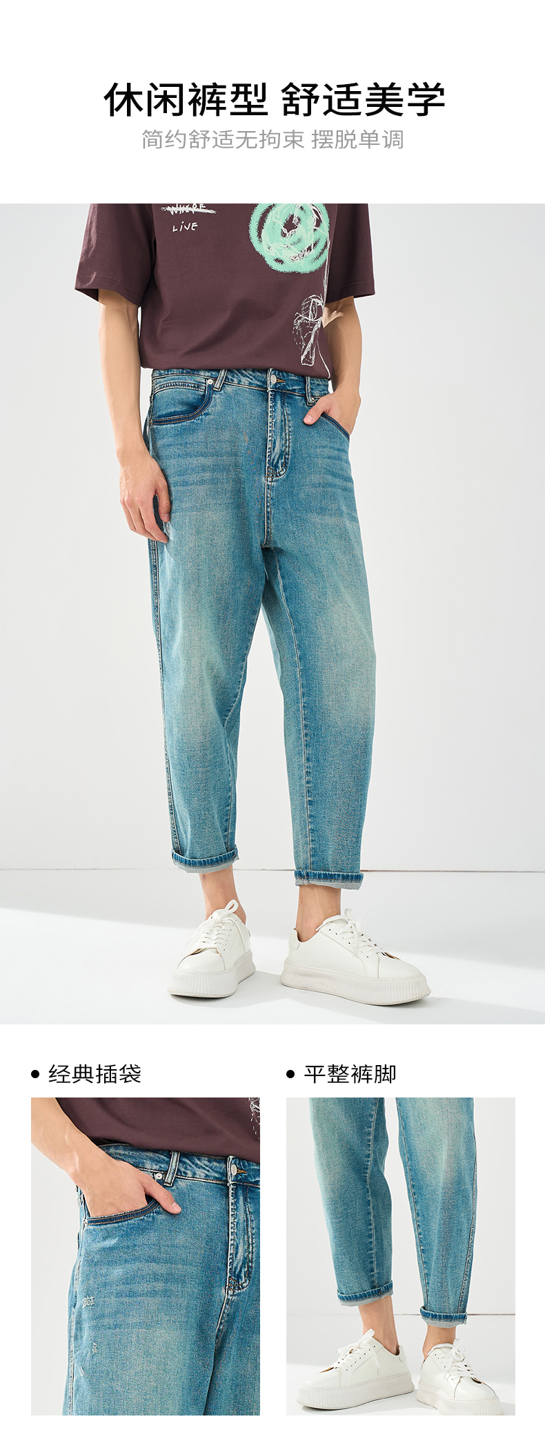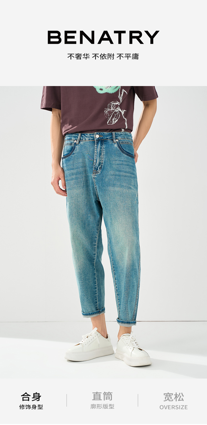 贝纳川春夏季锥形蓝色牛仔裤ECT230003776