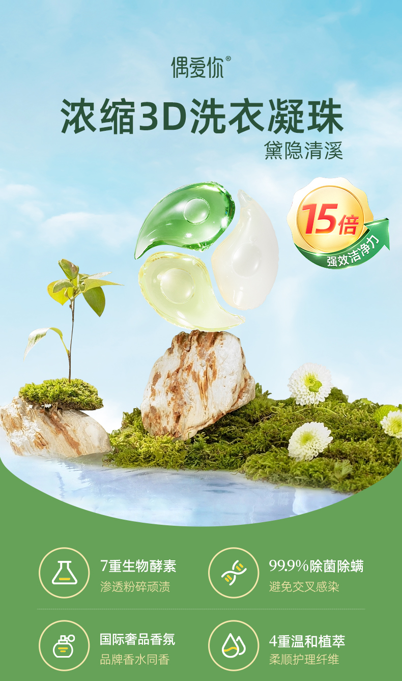 【供货】偶爱你量贩装洗衣凝珠黛隐清溪15倍洁净力/留香珠1.5kg柔顺18周持久留香