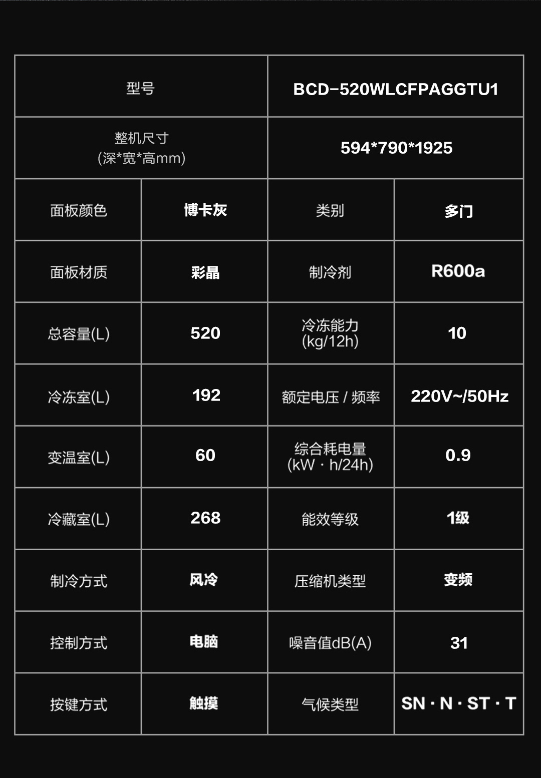 卡萨帝(Casarte)冰箱 BCD-520WLCFPAGGTU1