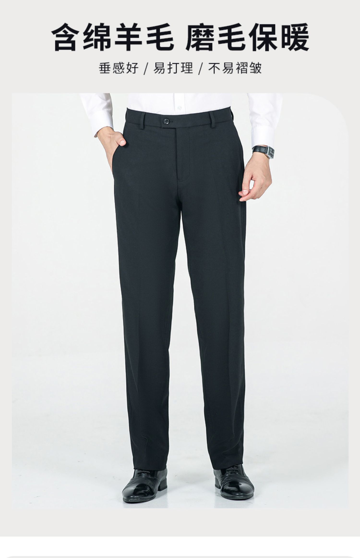 圣得西男士含绵羊毛商务西裤新款磨毛保暖加厚弹力长裤2312911008