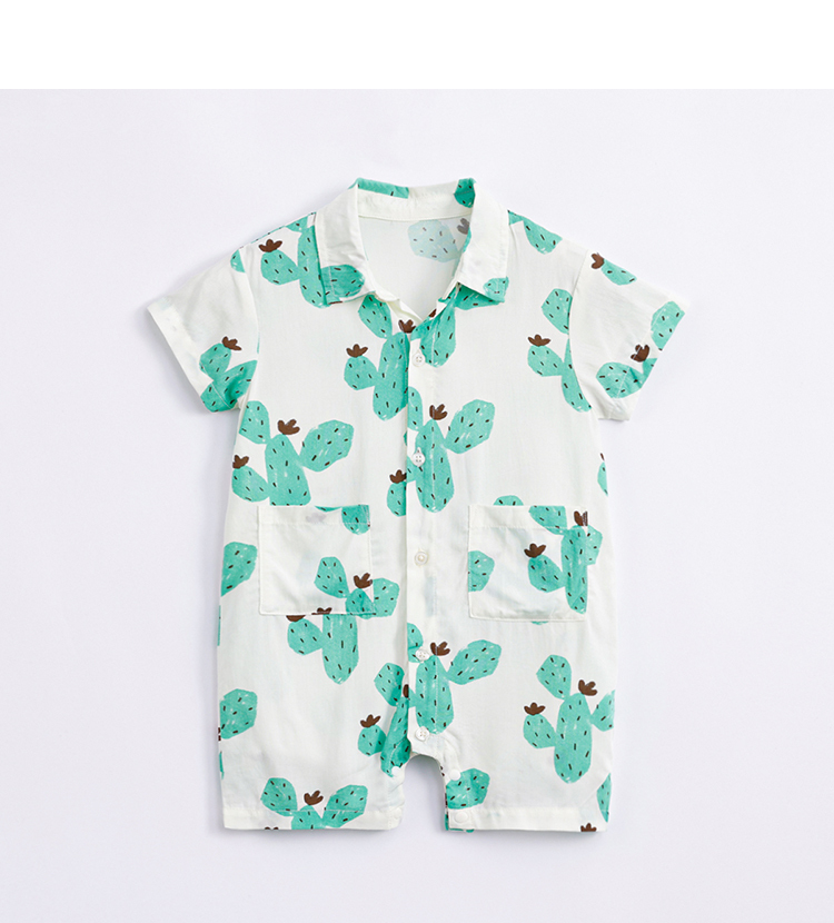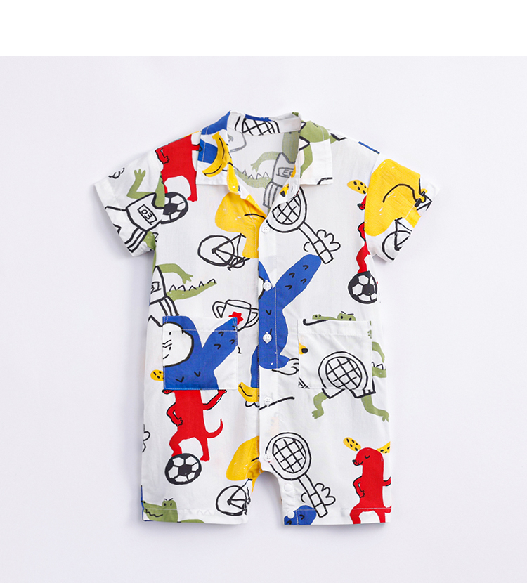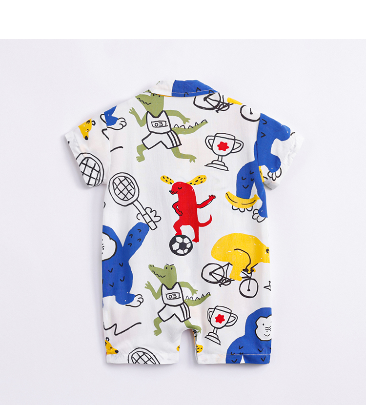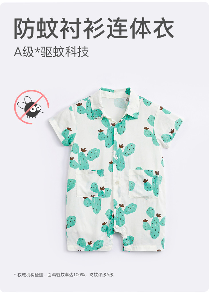 【防蚊】马克珍妮夏装新款 男宝宝满印短袖连体衣 婴儿爬服230627
