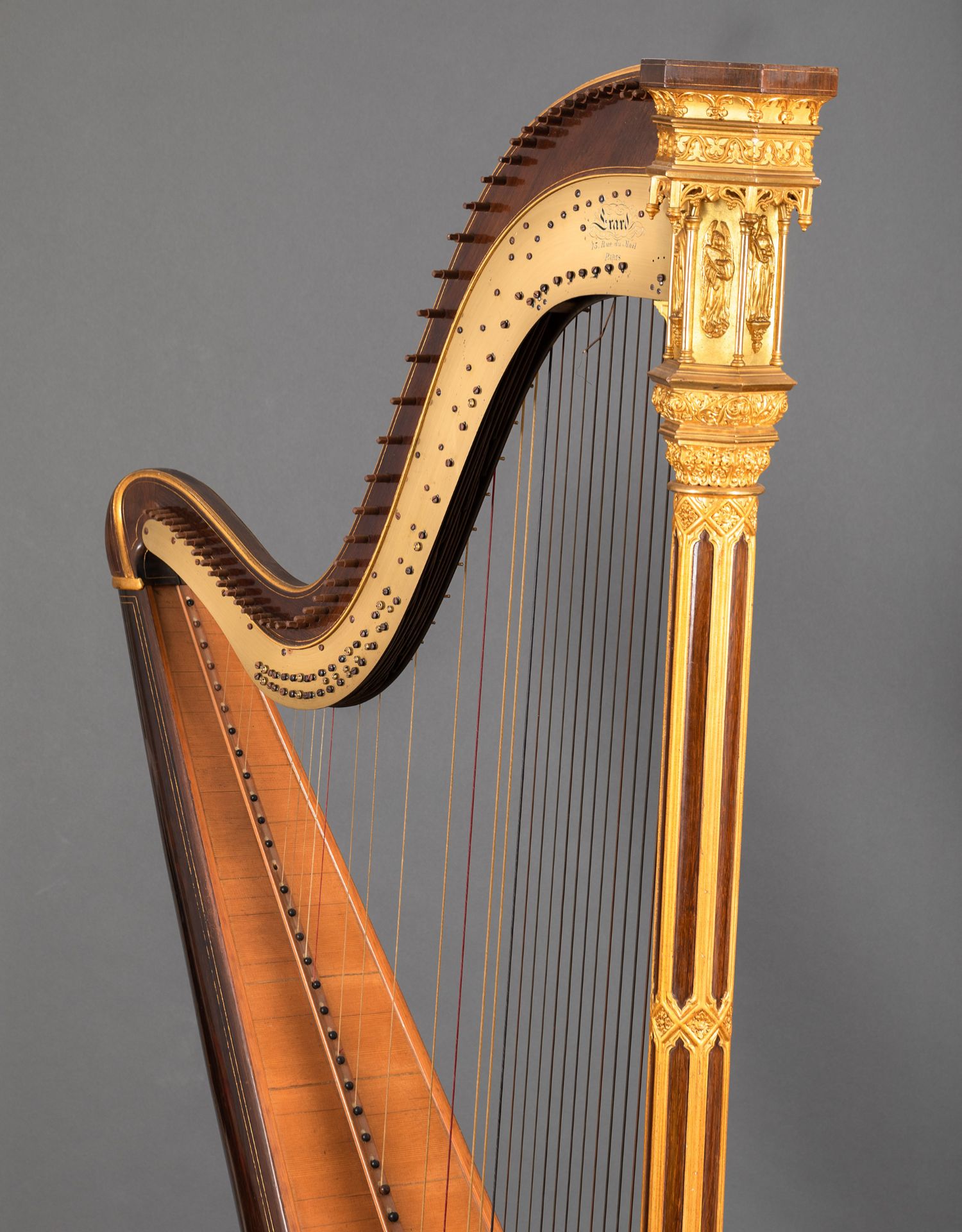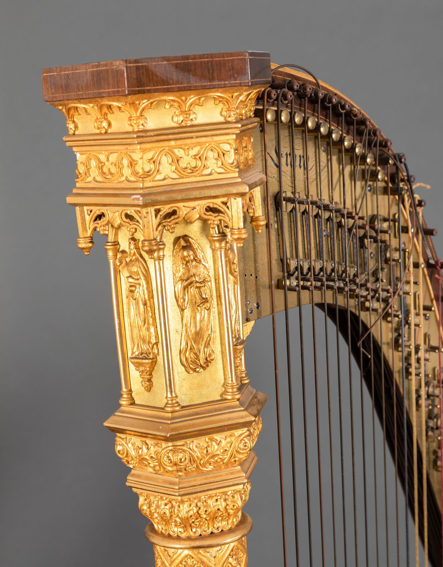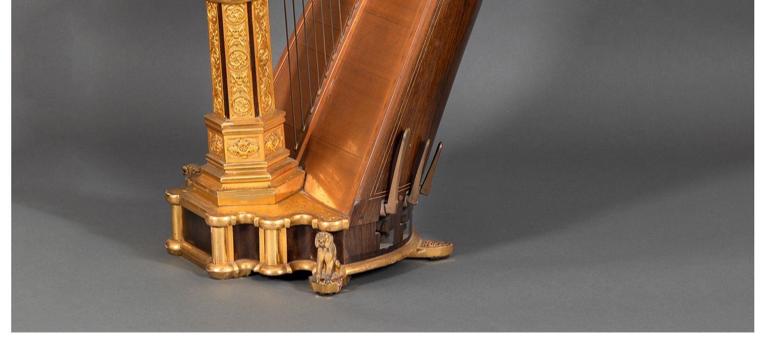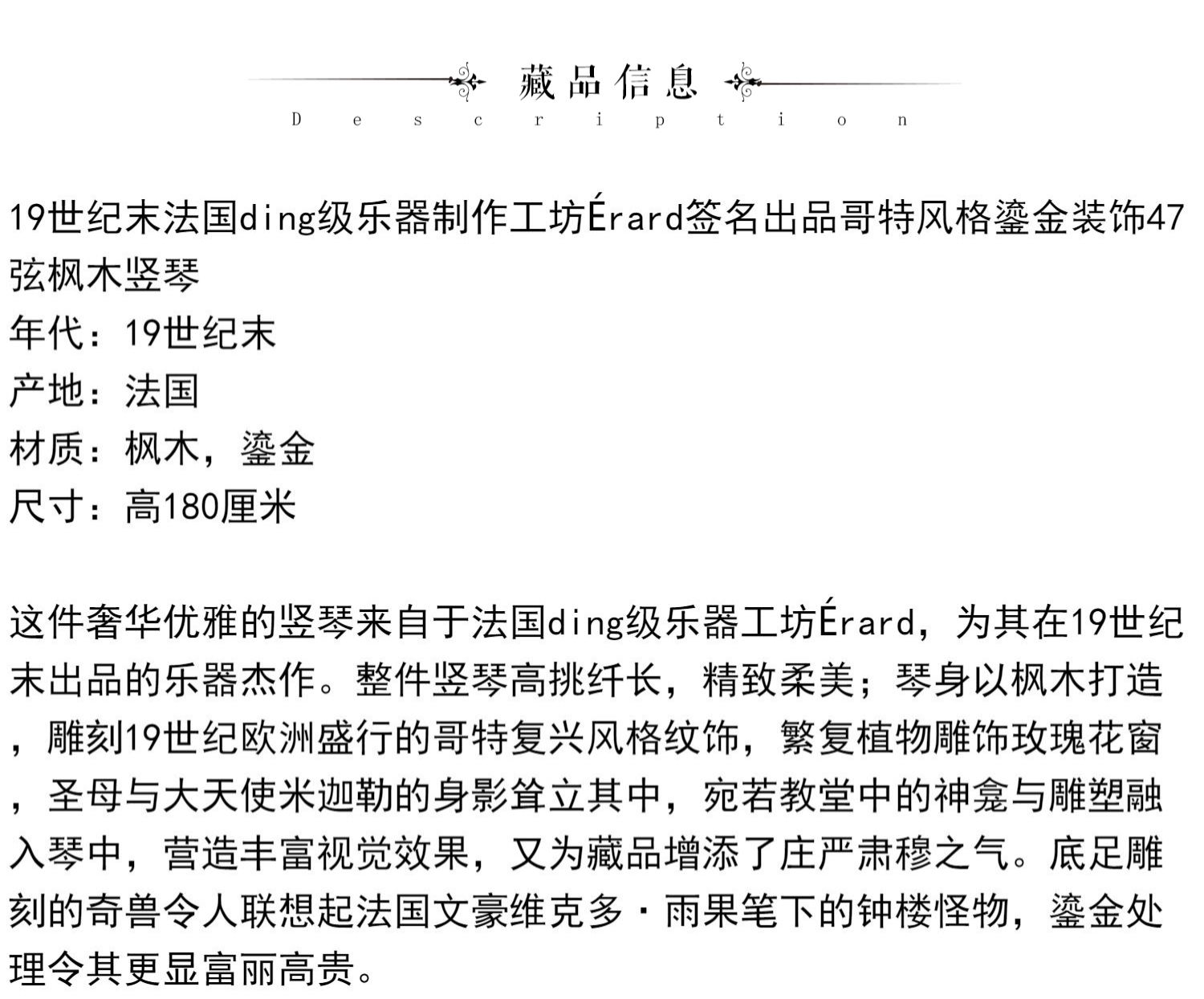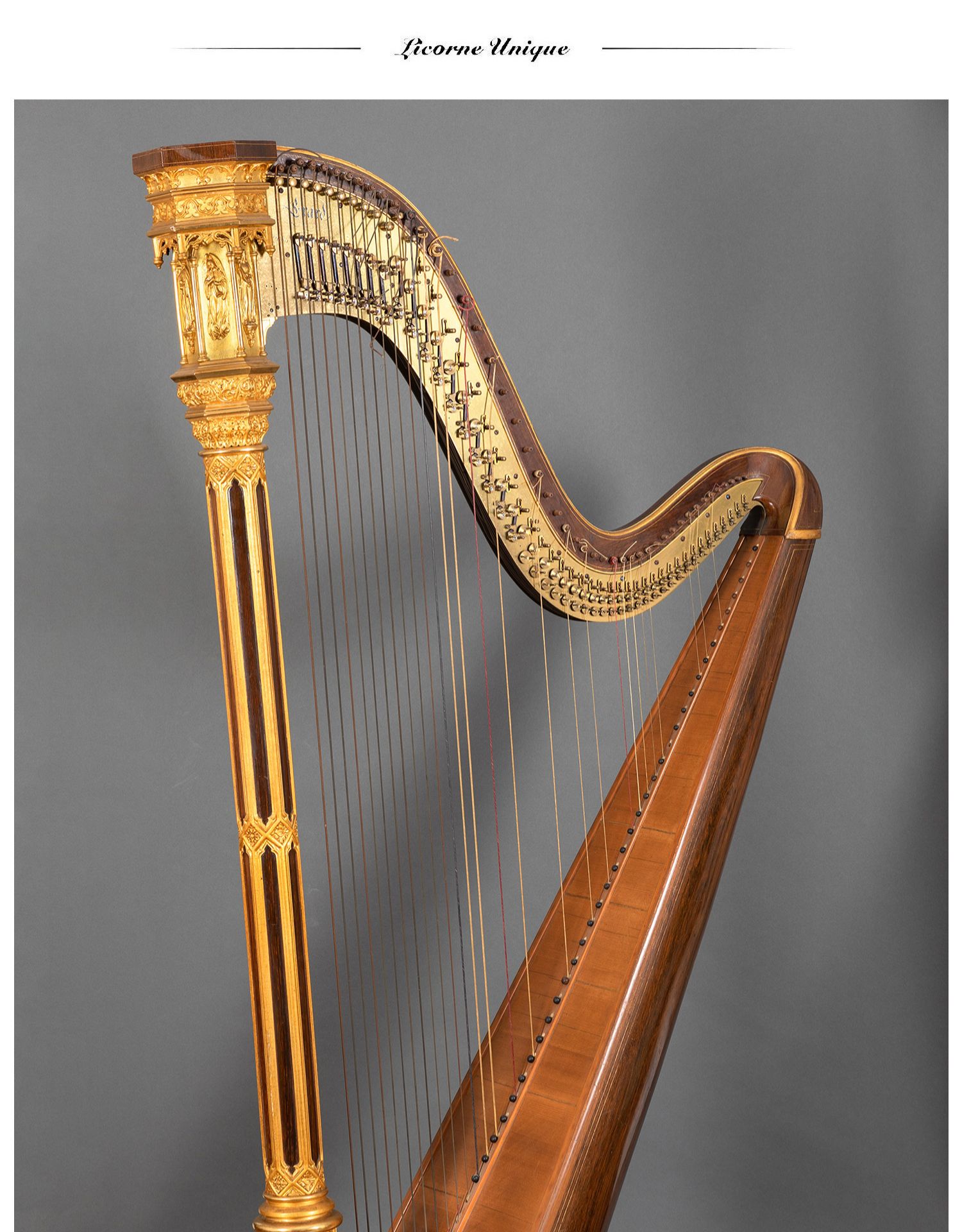 独角鹿西洋古董法国乐器工坊Érard签名哥特风格鎏金47弦枫木竖琴